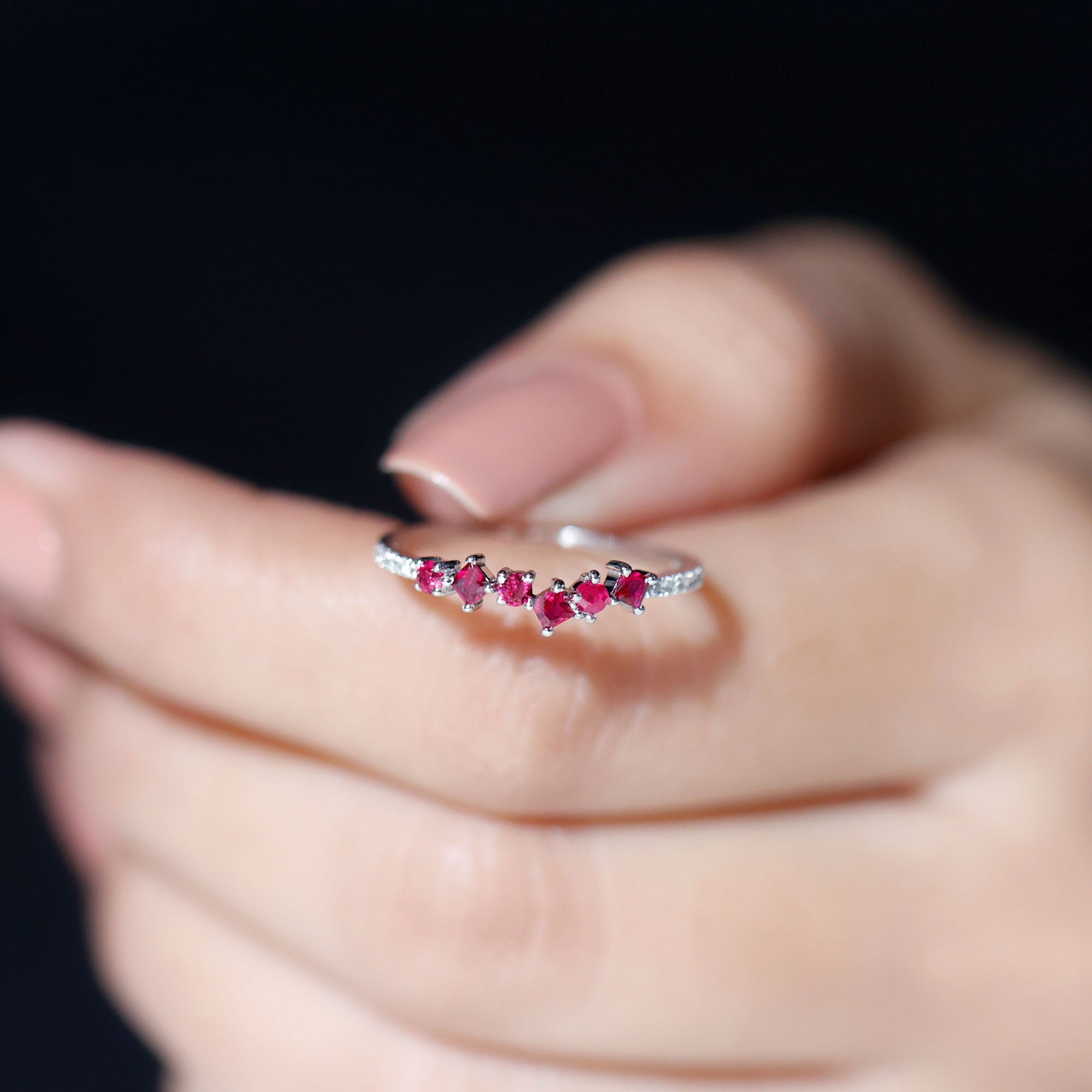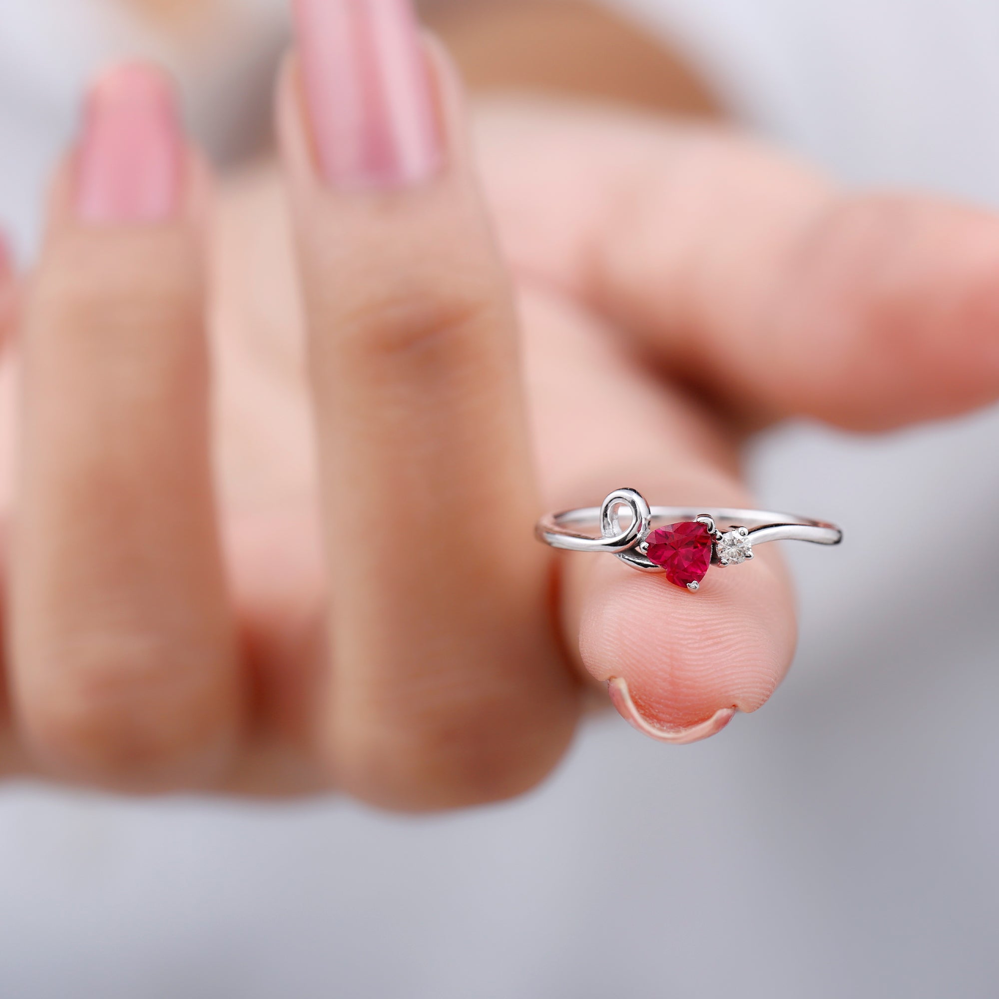 Heart Rings: Romantic lab-grown ruby rings shaped into heart designs. When you want to take your relationship to the next level consider a heart shape lab grown ruby ring