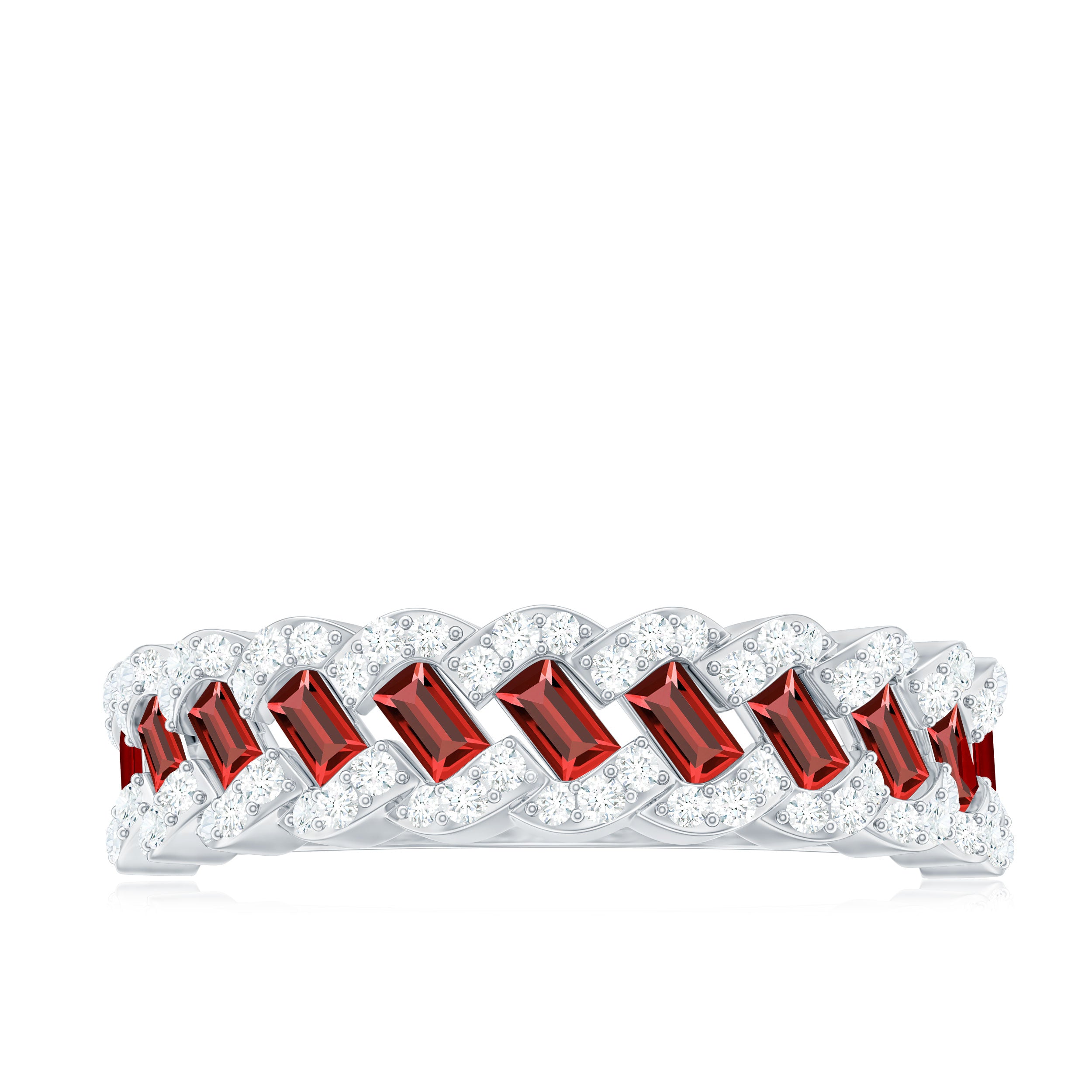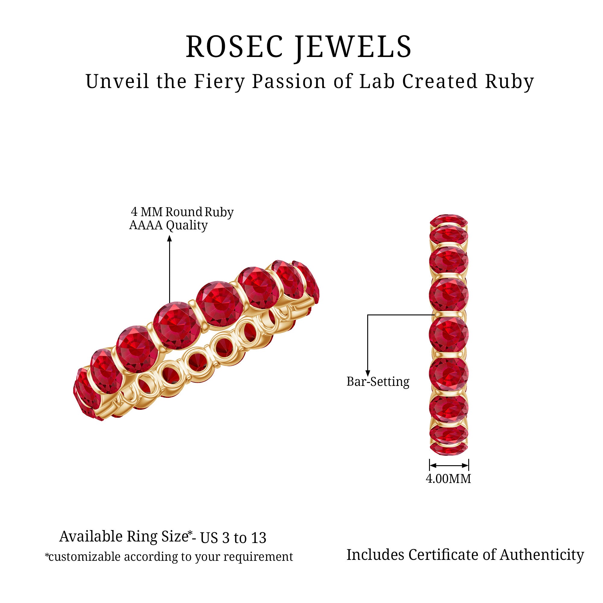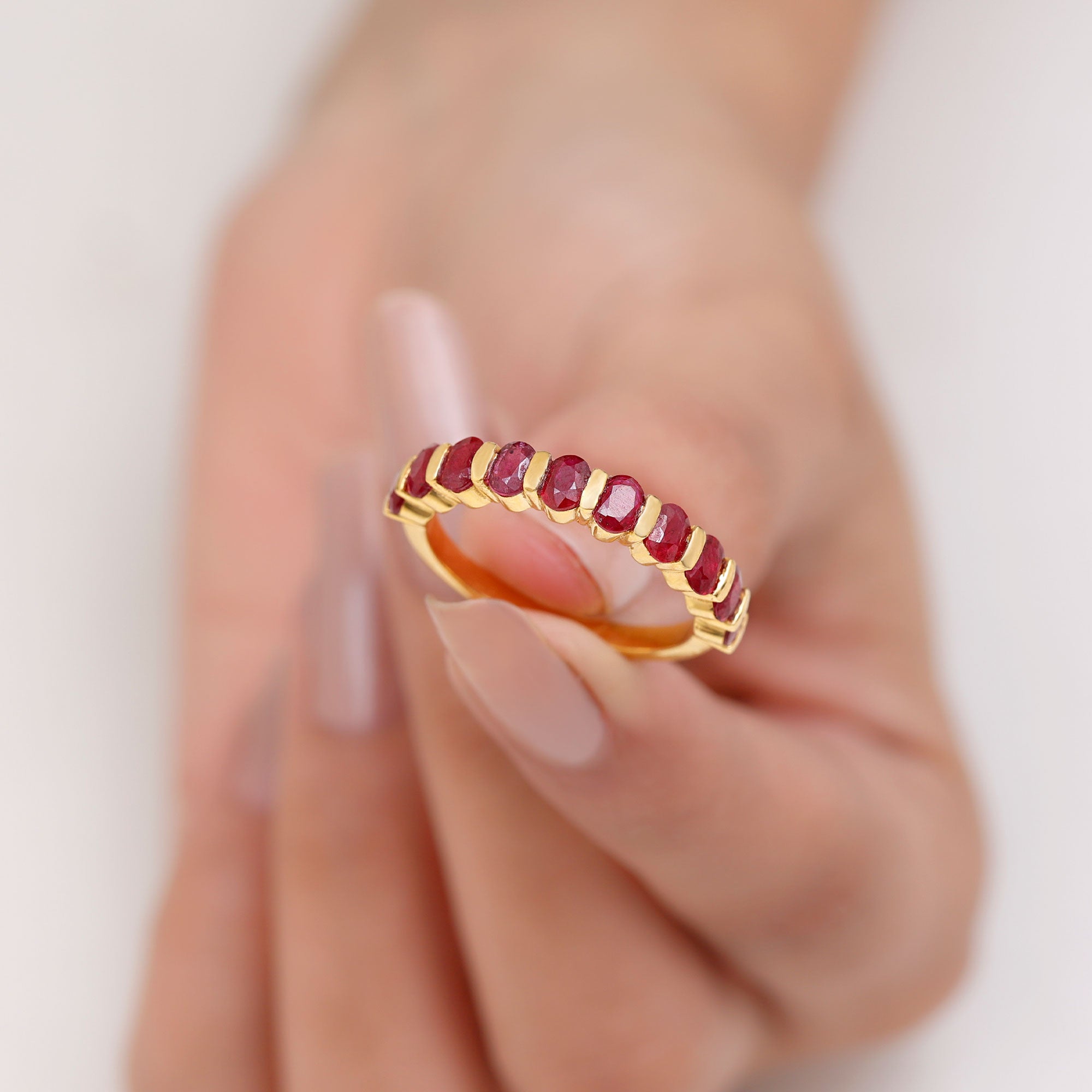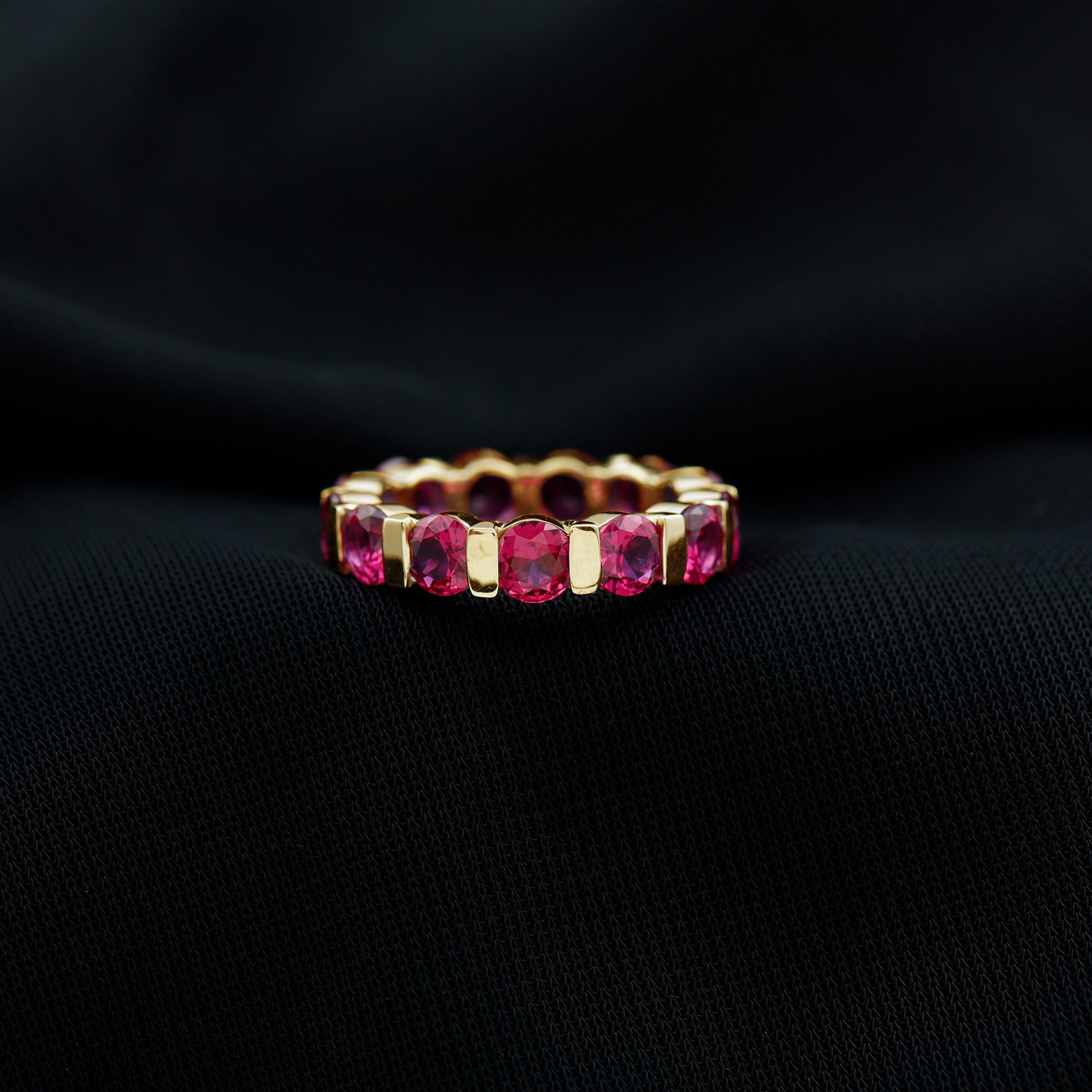 Eternity Rings: Eternity rings are complete circles of precious metals and lab-grown rubies without any endpoints. Eternity rings are popular choices for major milestones like anniversaries and weddings. the presence of lab-grown ruby all the way round to synthetic ruby ring with identical shape looks appealing.