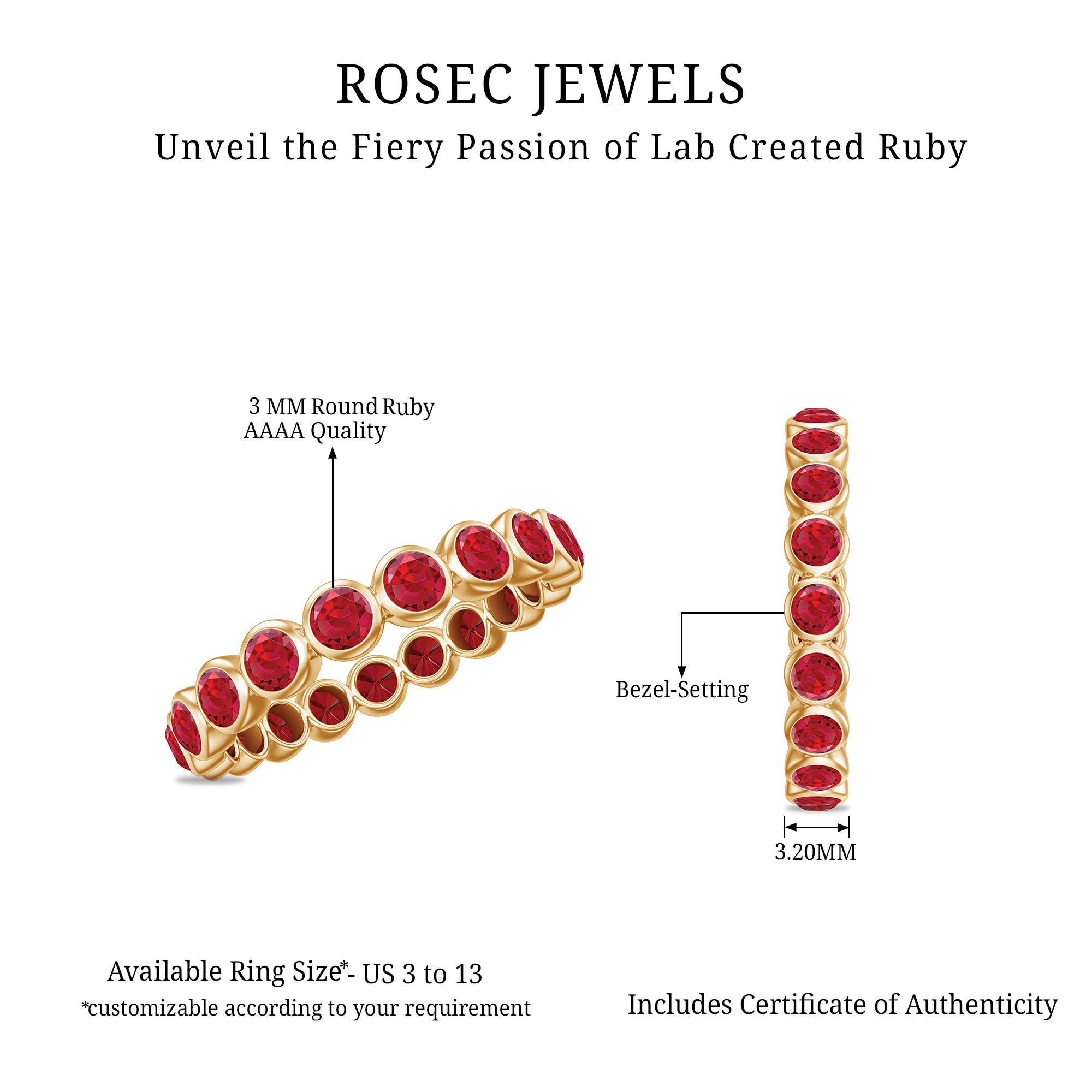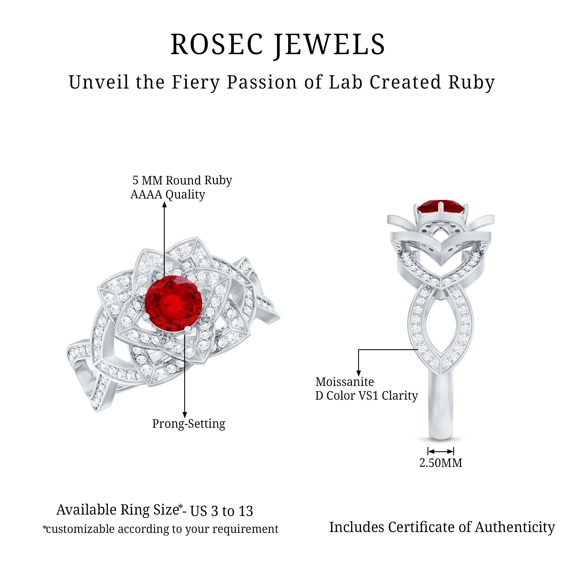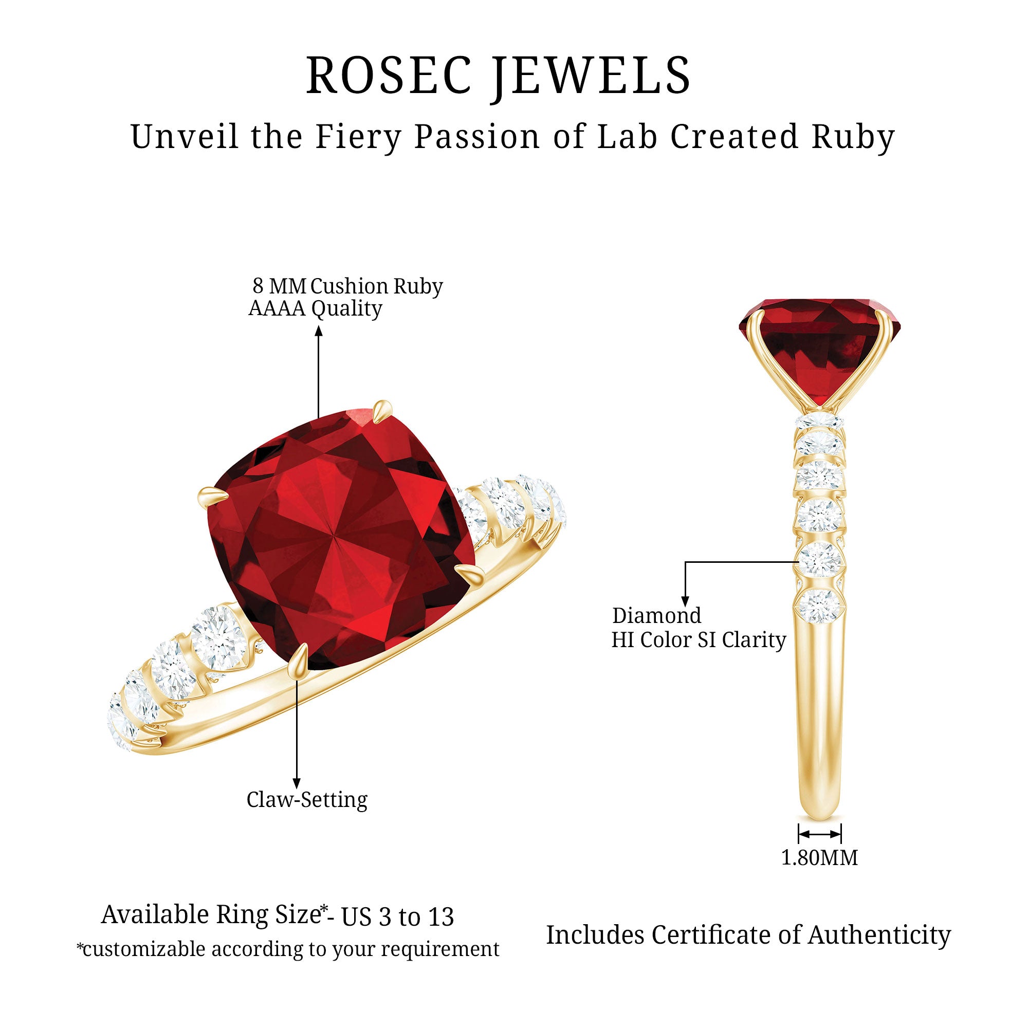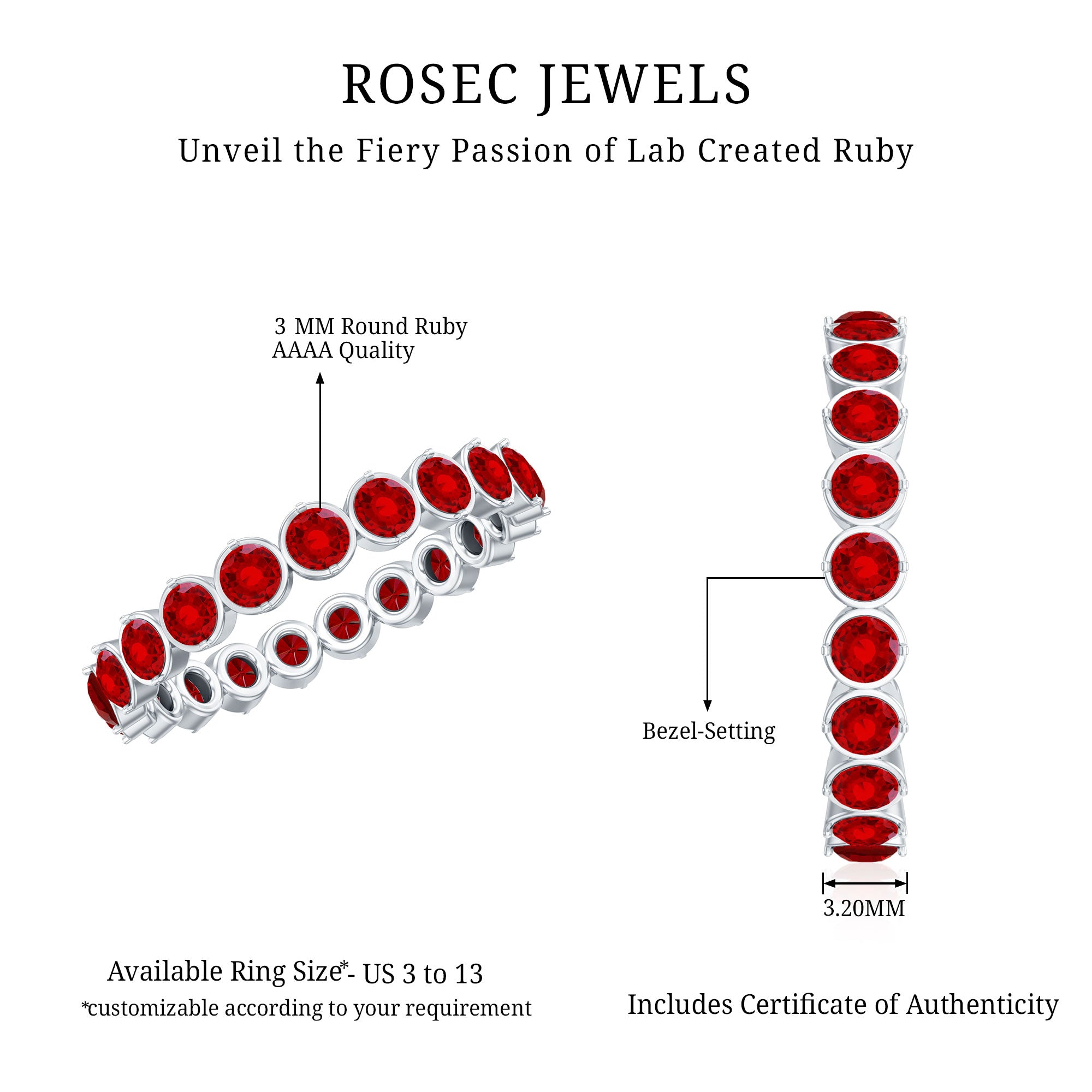 - Daily-wear durability: Ruby ranks 9 on the Mohs hardness scale.