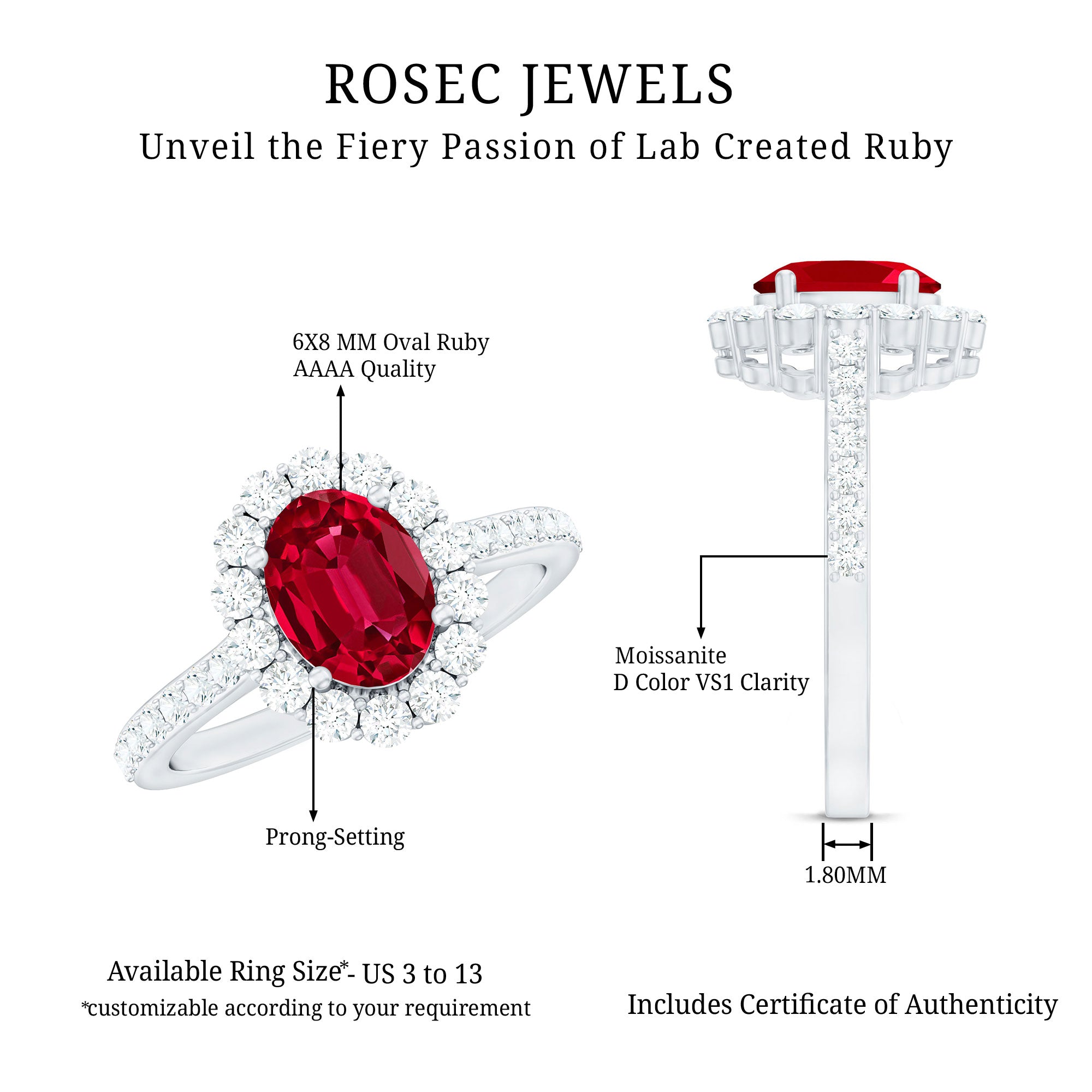 • Daily-wear durability: Ruby ranks 9 on the Mohs hardness scale.