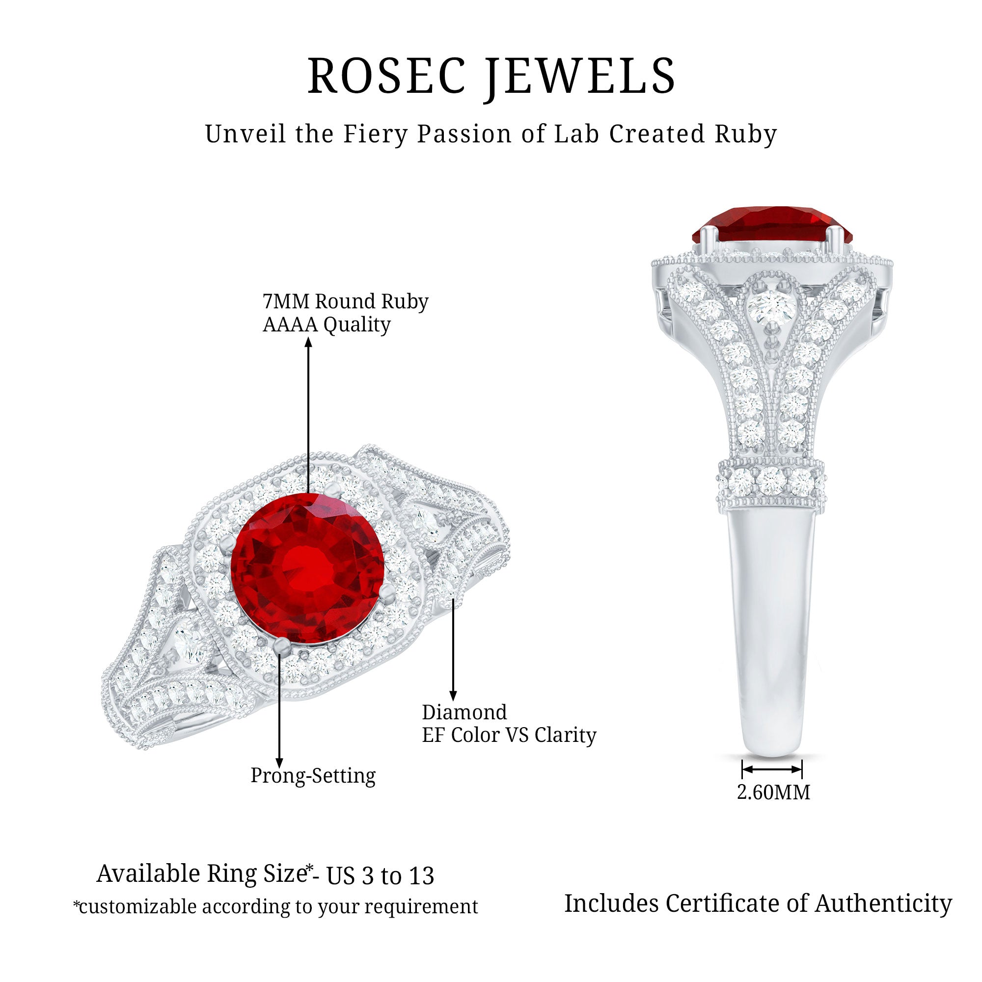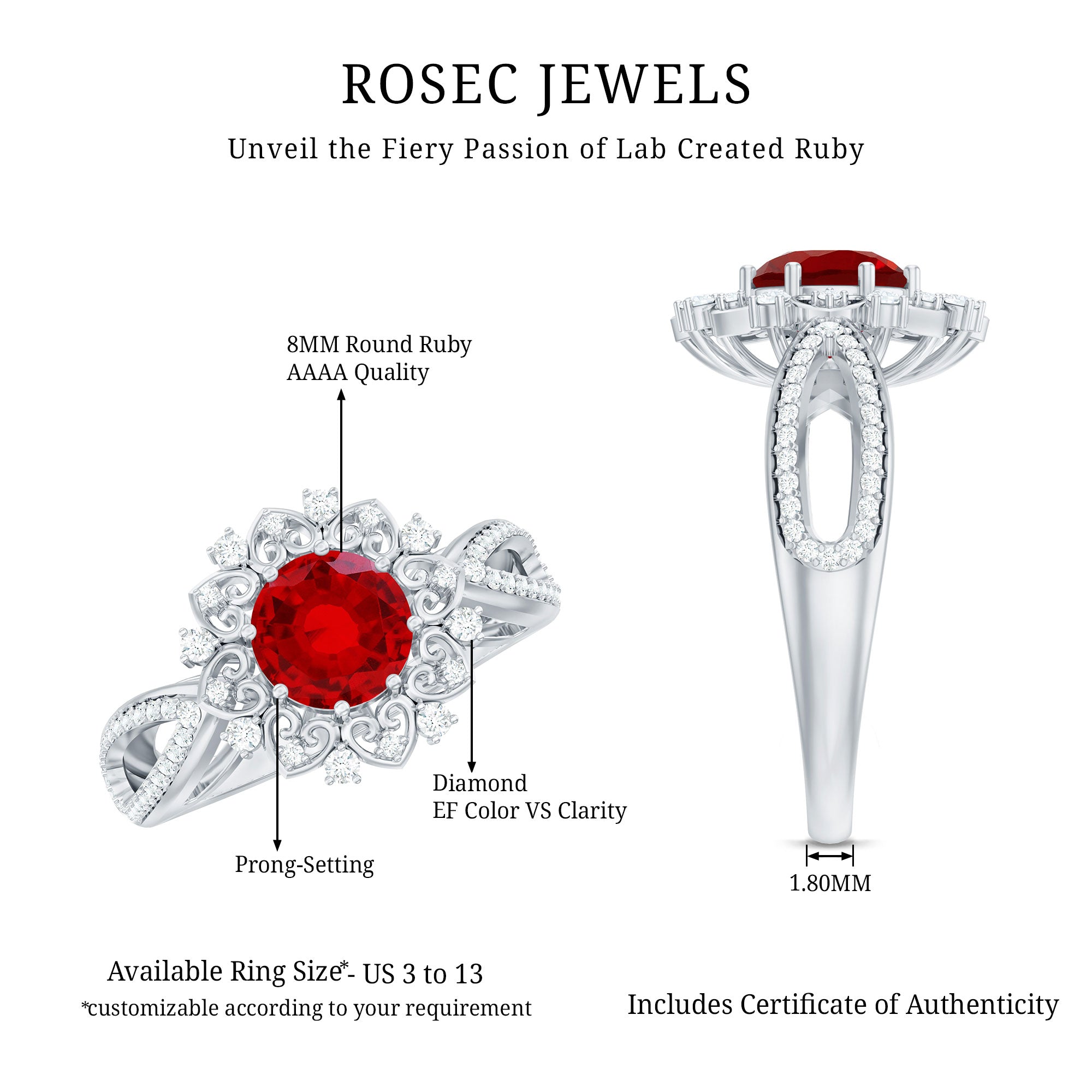 Vintage Inspired Rings: Capture the romance of bygone eras with intricate designs featuring lab-grown rubies. In the selection of vintage-style rings, you will find designs with milgrain detailing and filigree. These often include ancient flower motifs and geometric patterns. These features enhance the beauty of lab-grown rubies.