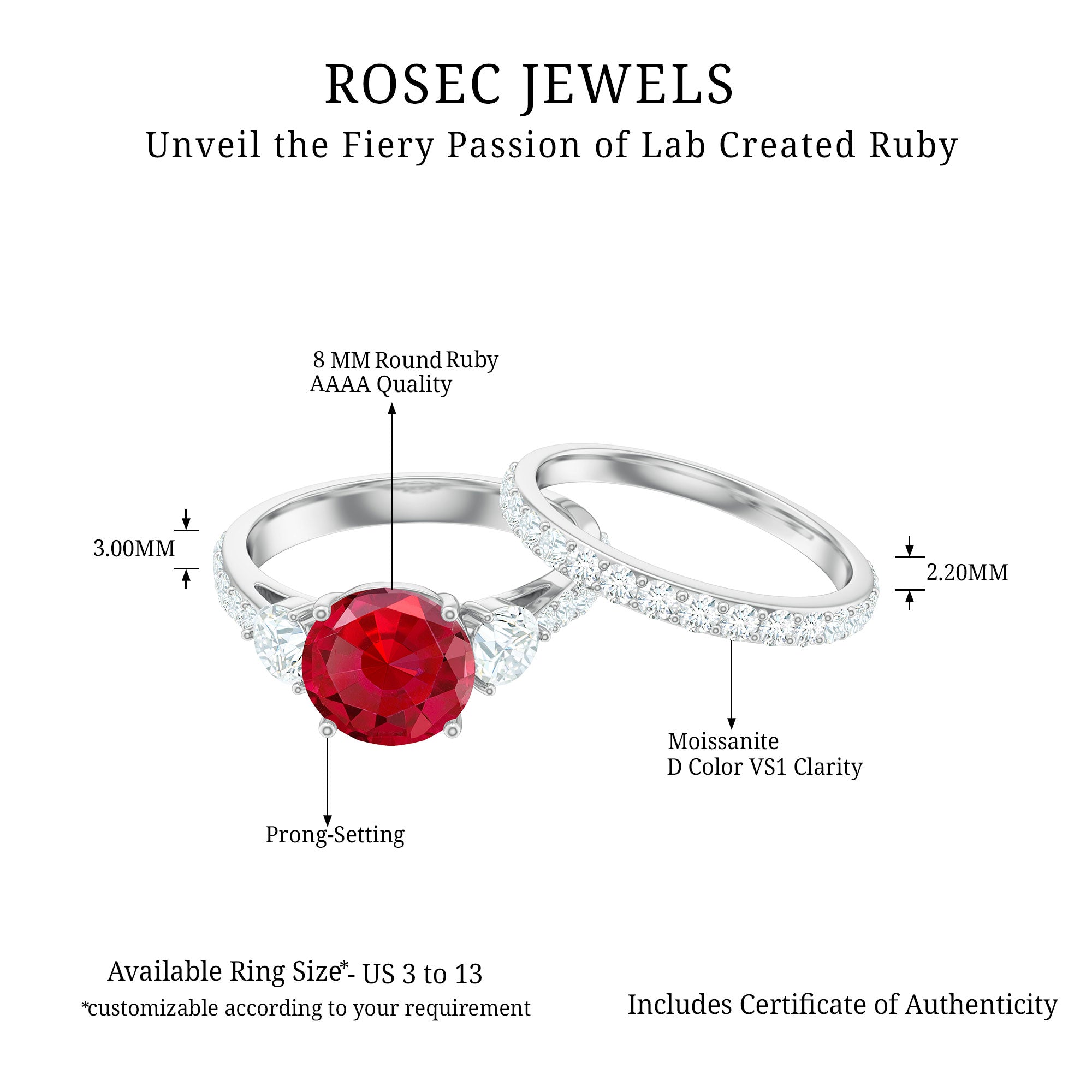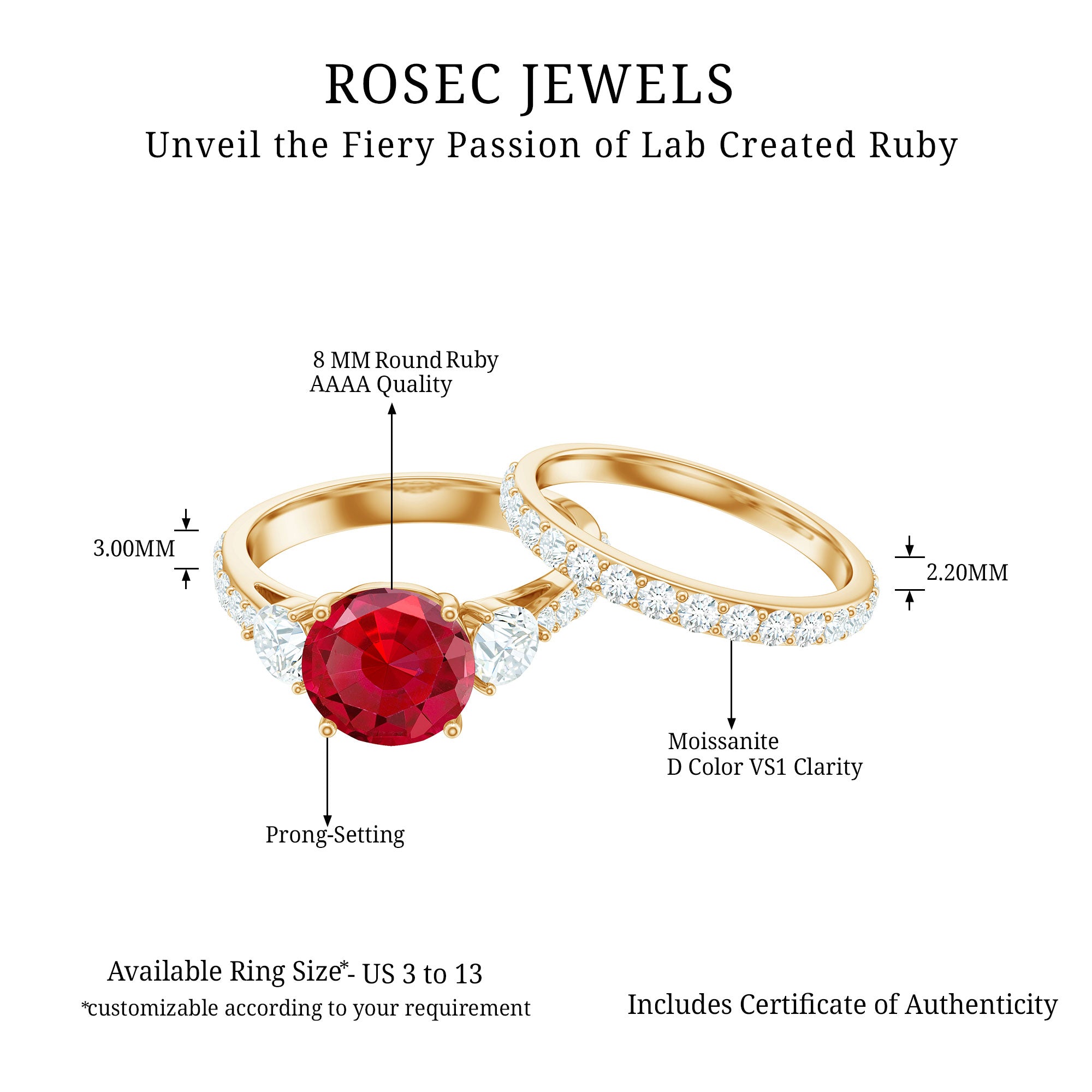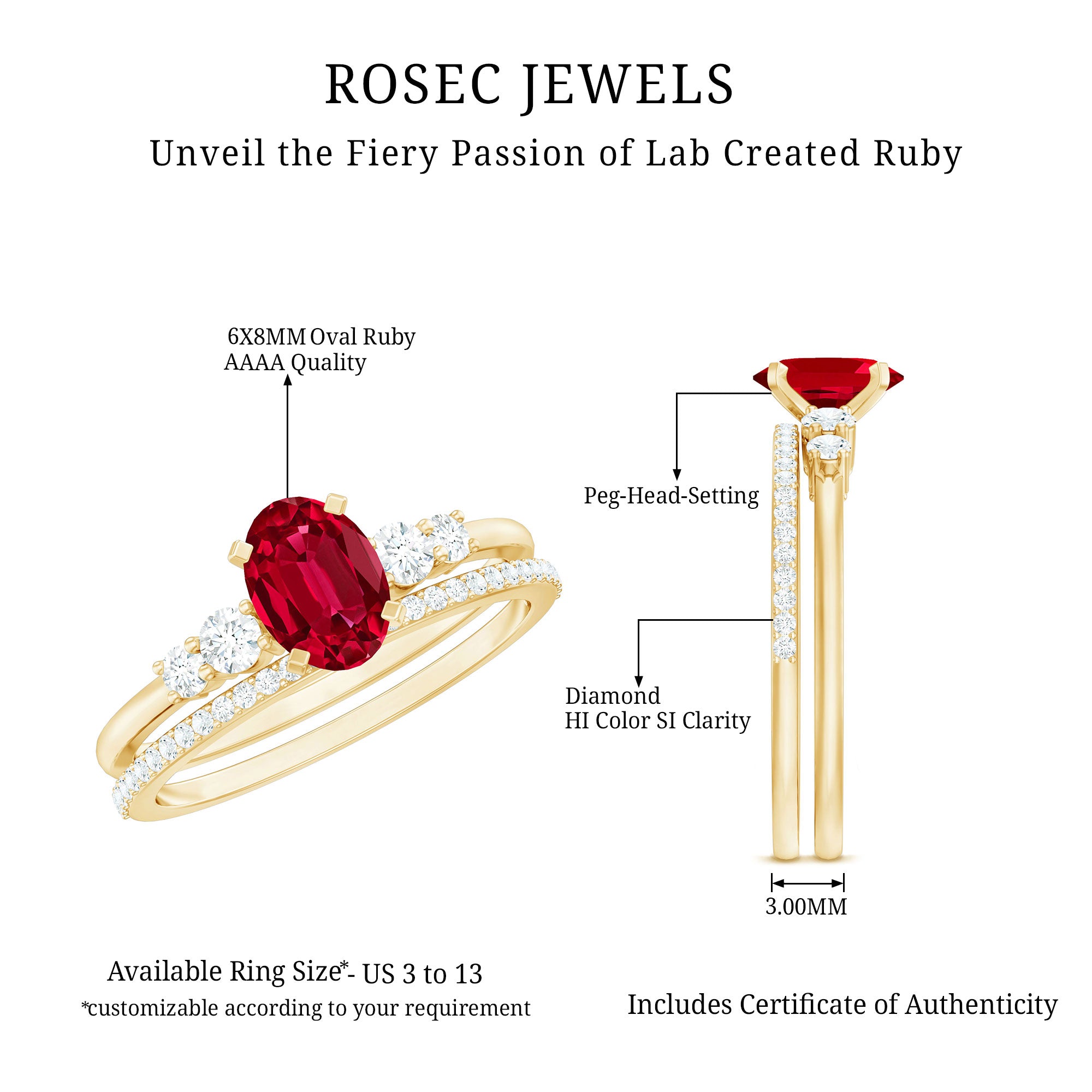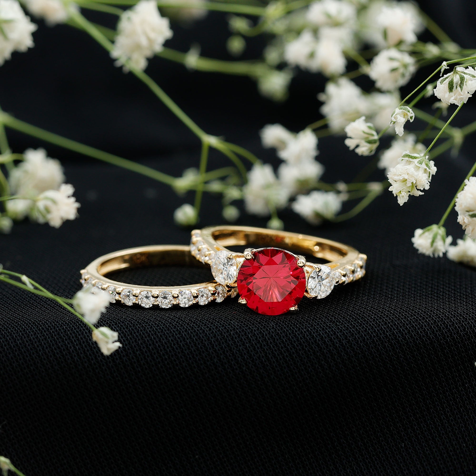Bridal Set: Complete your wedding jewelry with matching lab ruby and diamond rings for engagement and wedding bands. Our lab ruby wedding ring sets are the perfect combination of engagement rings and wedding bands. They look like one ring and are crafted perfectly to create stacks of solitaire rings with bands.
