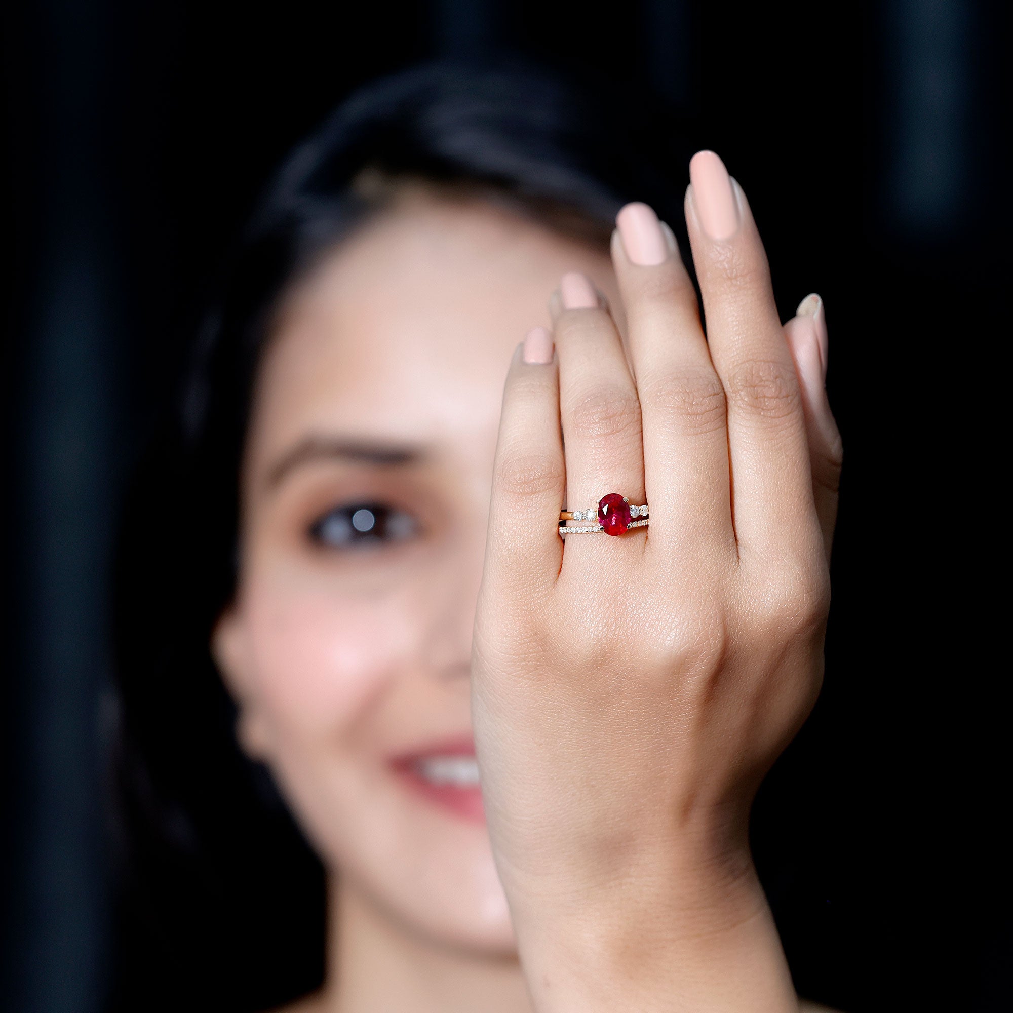 Stackable Rings: Mix and match lab-grown ruby rings to create a personalized and versatile look. The best way to make your ring stack on your own is by adding a touch of color with gemstone stacking rings. Available in vibrant hues of red, a lot of personality to any ring stack. Well, who doesn’t love the stacked wedding ring with romantic rubies over it?