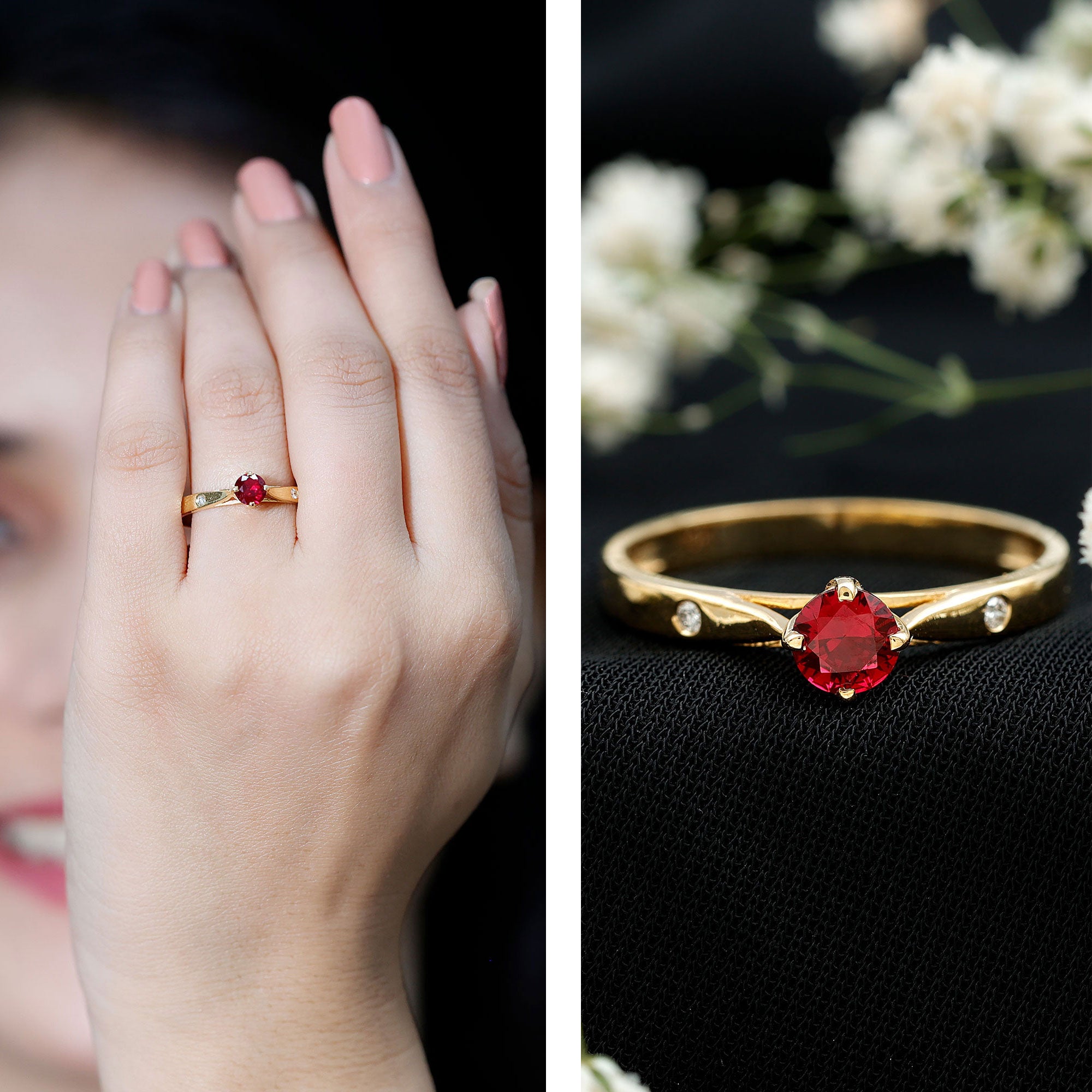 Lab-grown ruby rings available online at Rosec Jewels are high quality and come with a certificate. Explore the unique designs of simulated ruby rings online at Rosec Jewels. Our lab-grown ruby prices are affordable with premium metals like white gold, yellow gold, and sterling silver. Read more about designs in below sections: