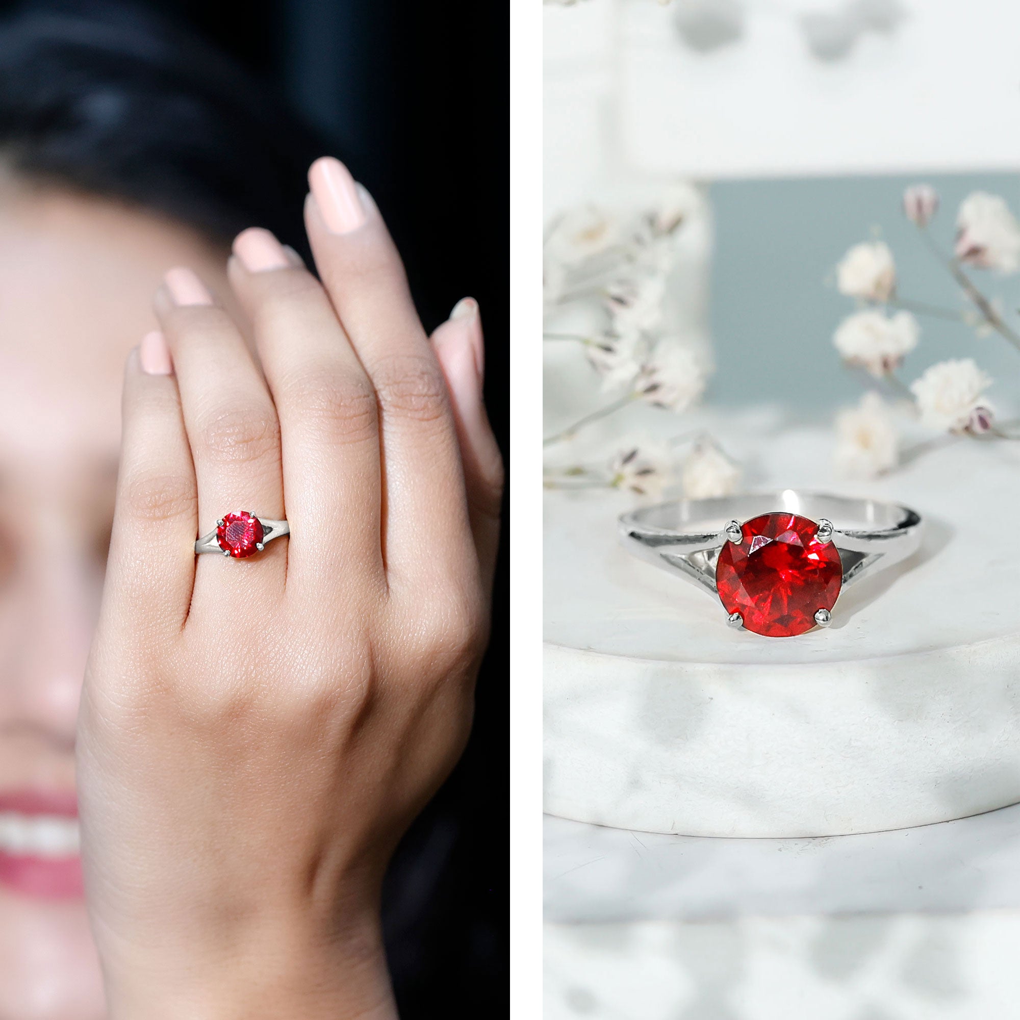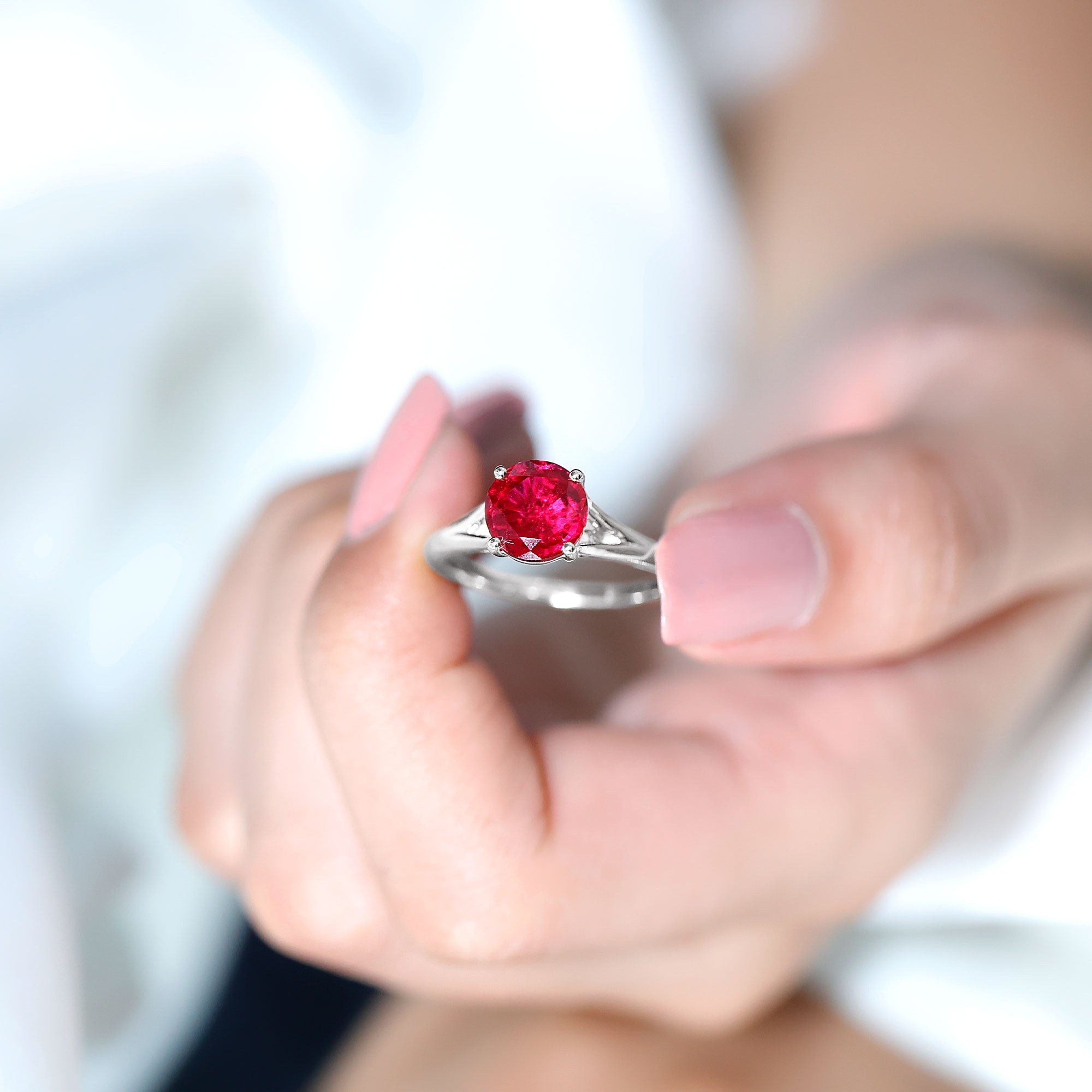 Solitaire Rings: Classic and timeless, lab-created ruby solitaire rings showcase a single, brilliant synthetic ruby. While it is a timeless and classic symbol of love for any bride-to-be, it also shows great style. A round, pear, marquise, or princess cut lab-grown ruby looks so pretty and fascinating. Emerald-cut ruby rings are also one the best pieces of jewelry with appealing red hue.