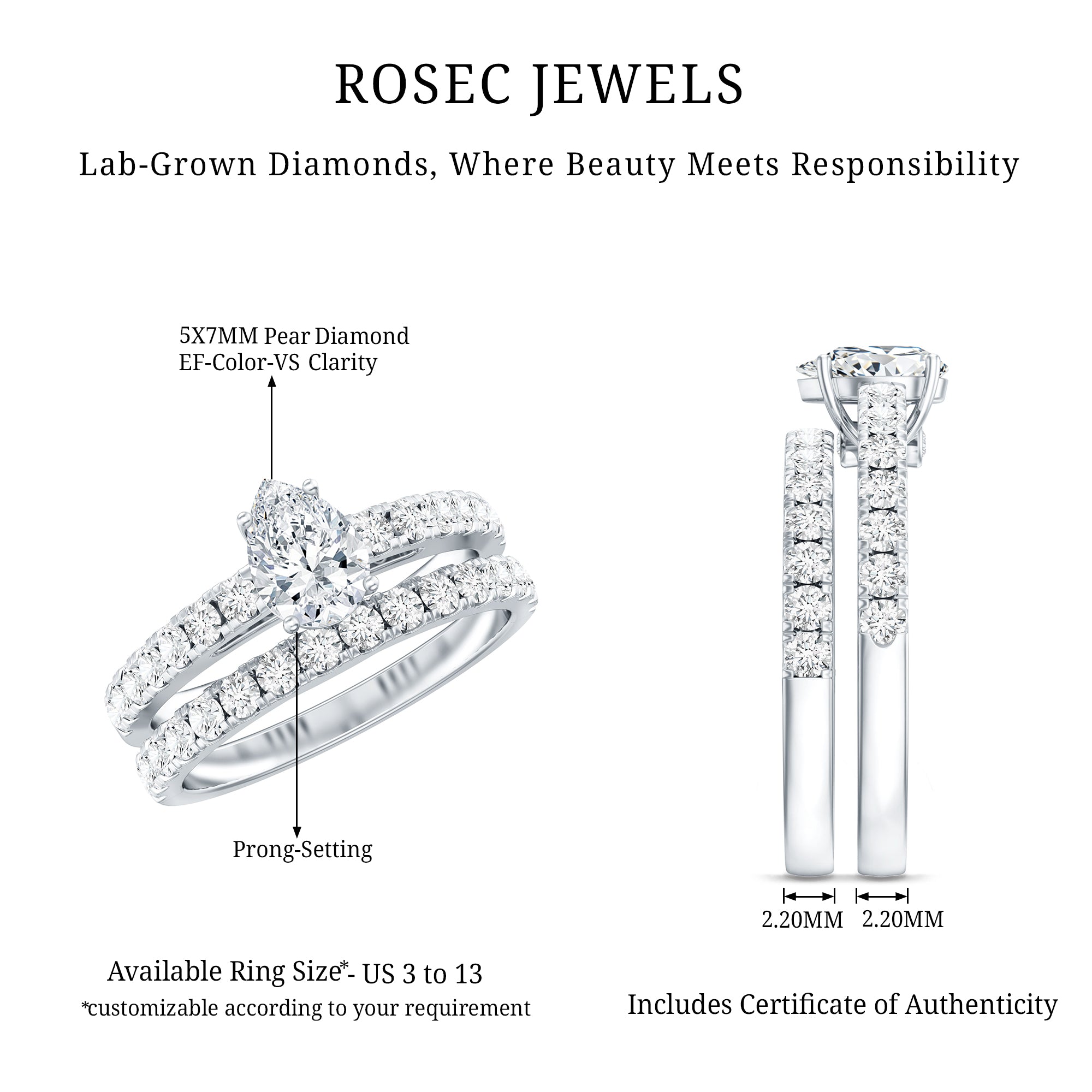 - What a bridal set is: an engagement ring + a matching wedding band (made to pair).