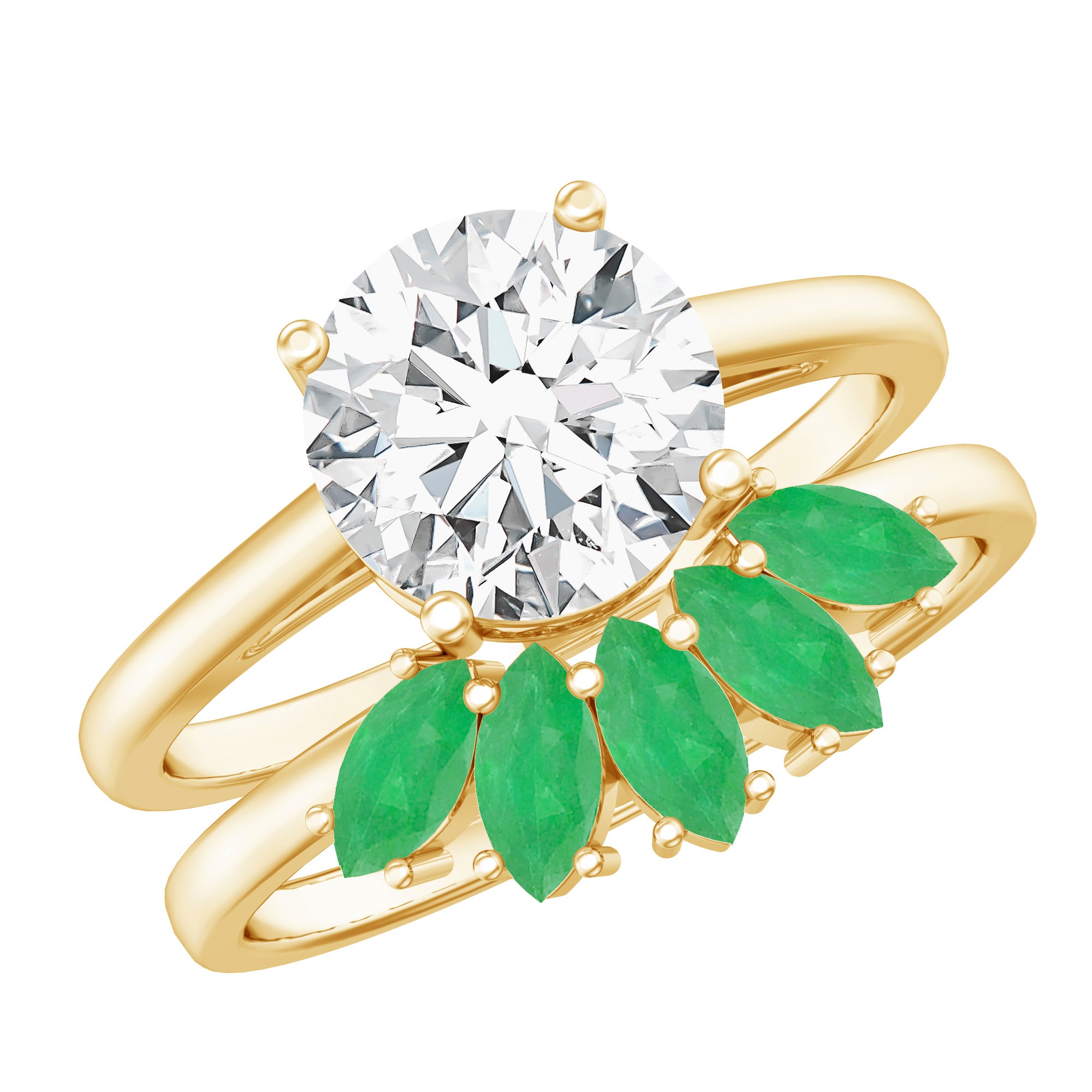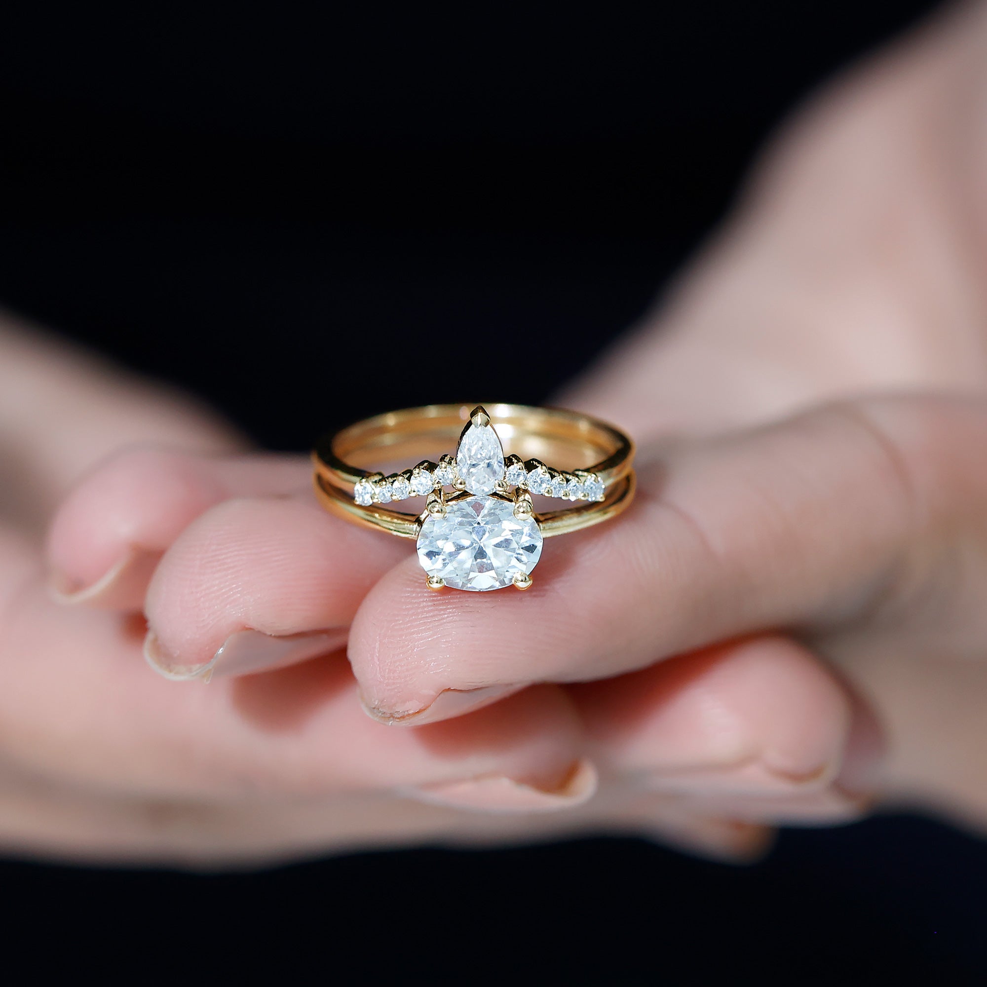 Three-Stone Set – Representing your past, present, and future together through three similar or different lab-grown diamonds, accompanied by curved enhancer band.