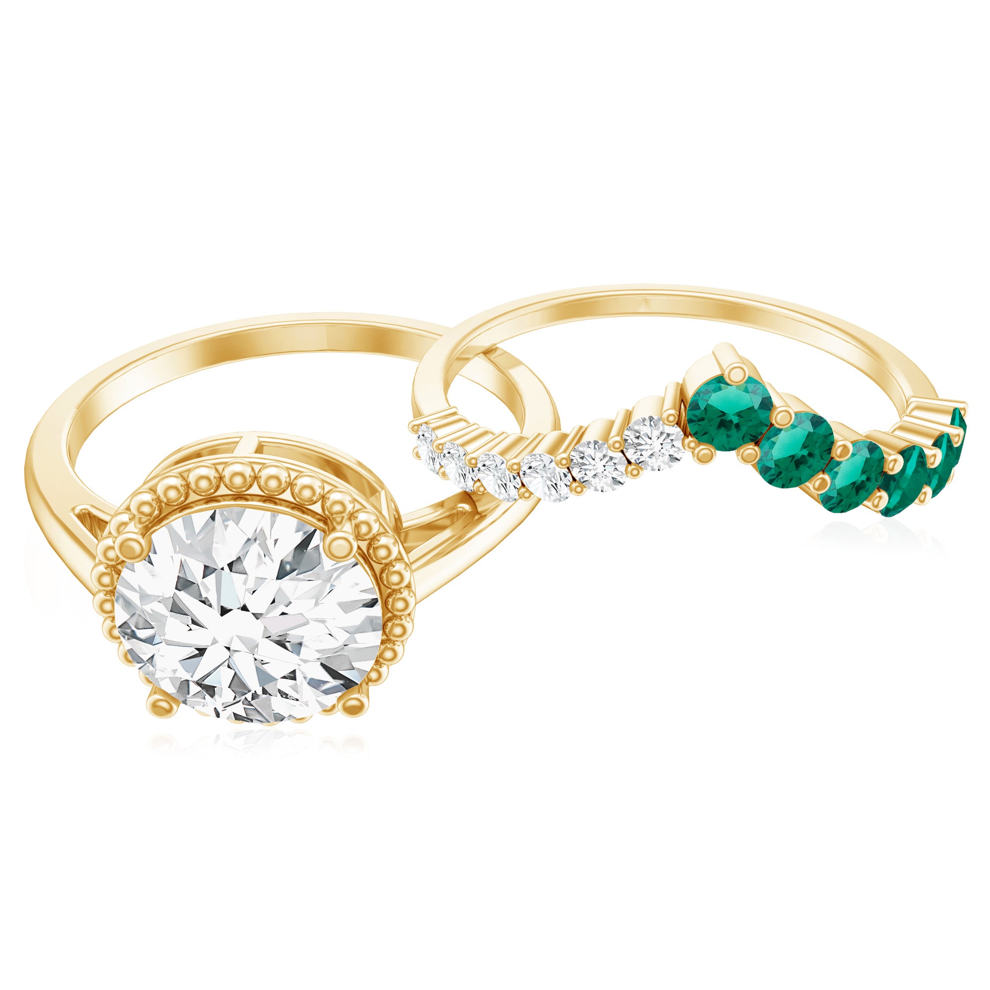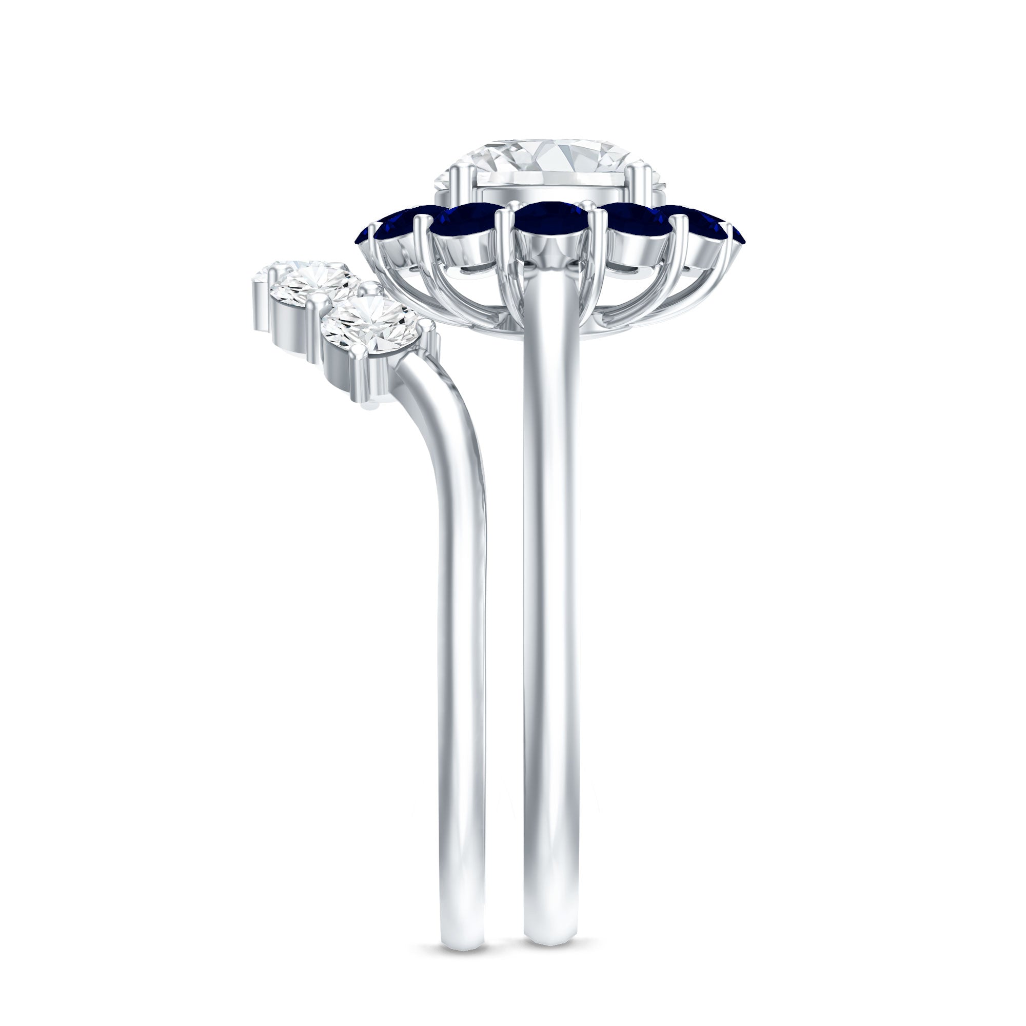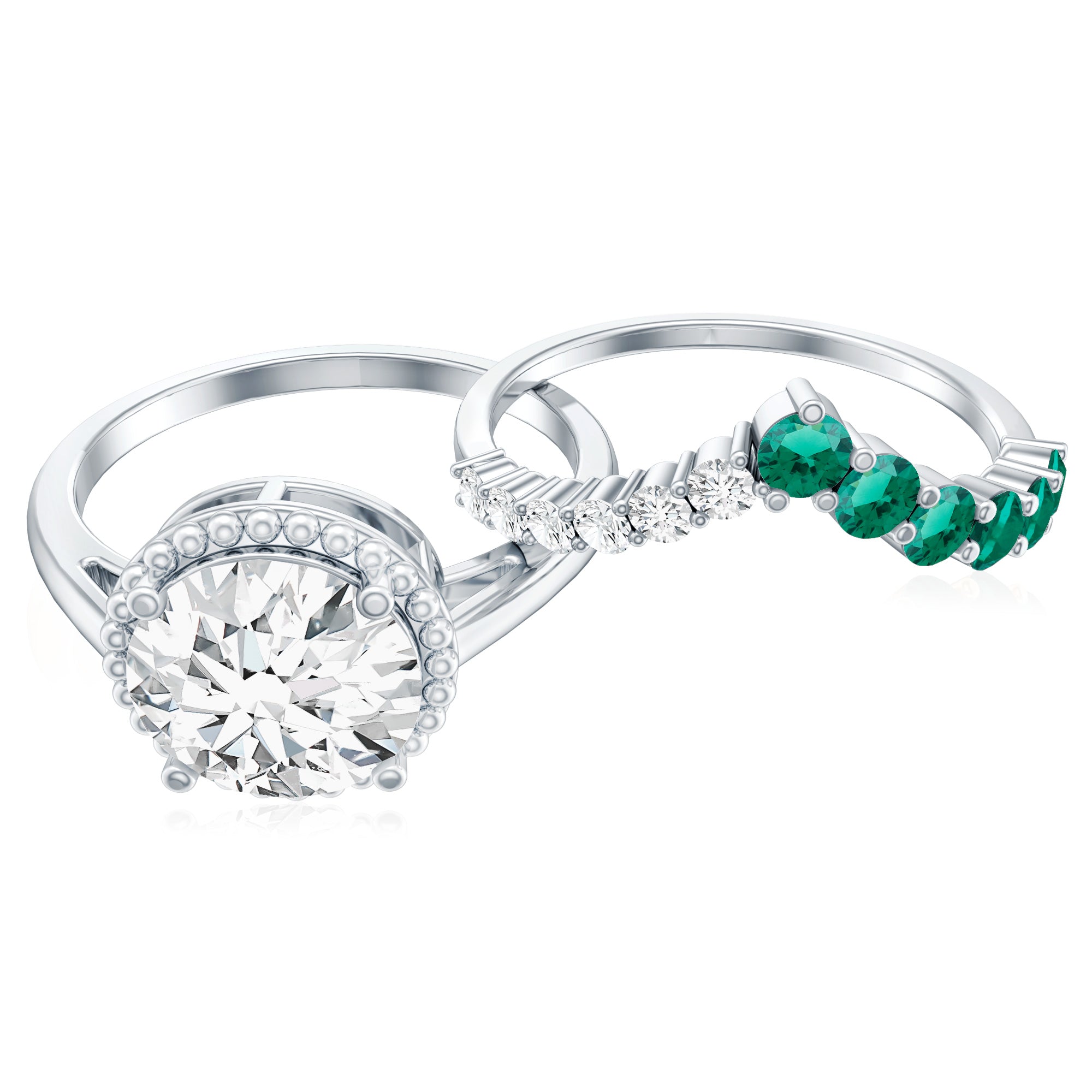 Halo Bridal Set – Extra sparkle with a lab-grown diamond halo in one ring complemented with other band with smaller gemstones.