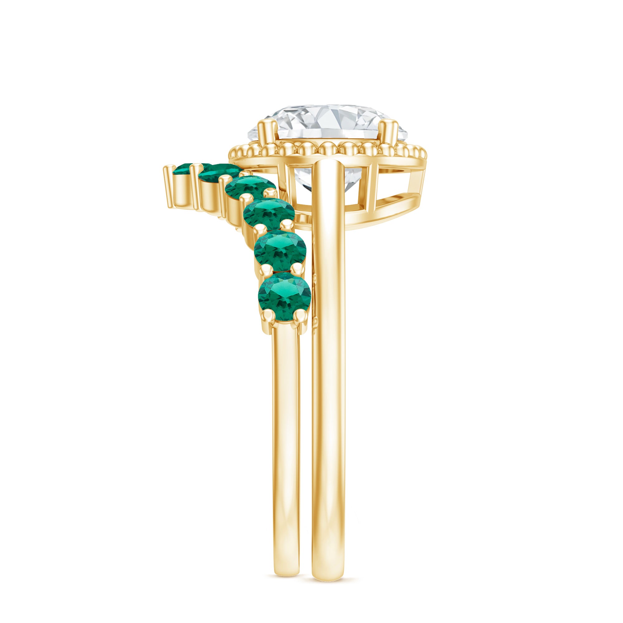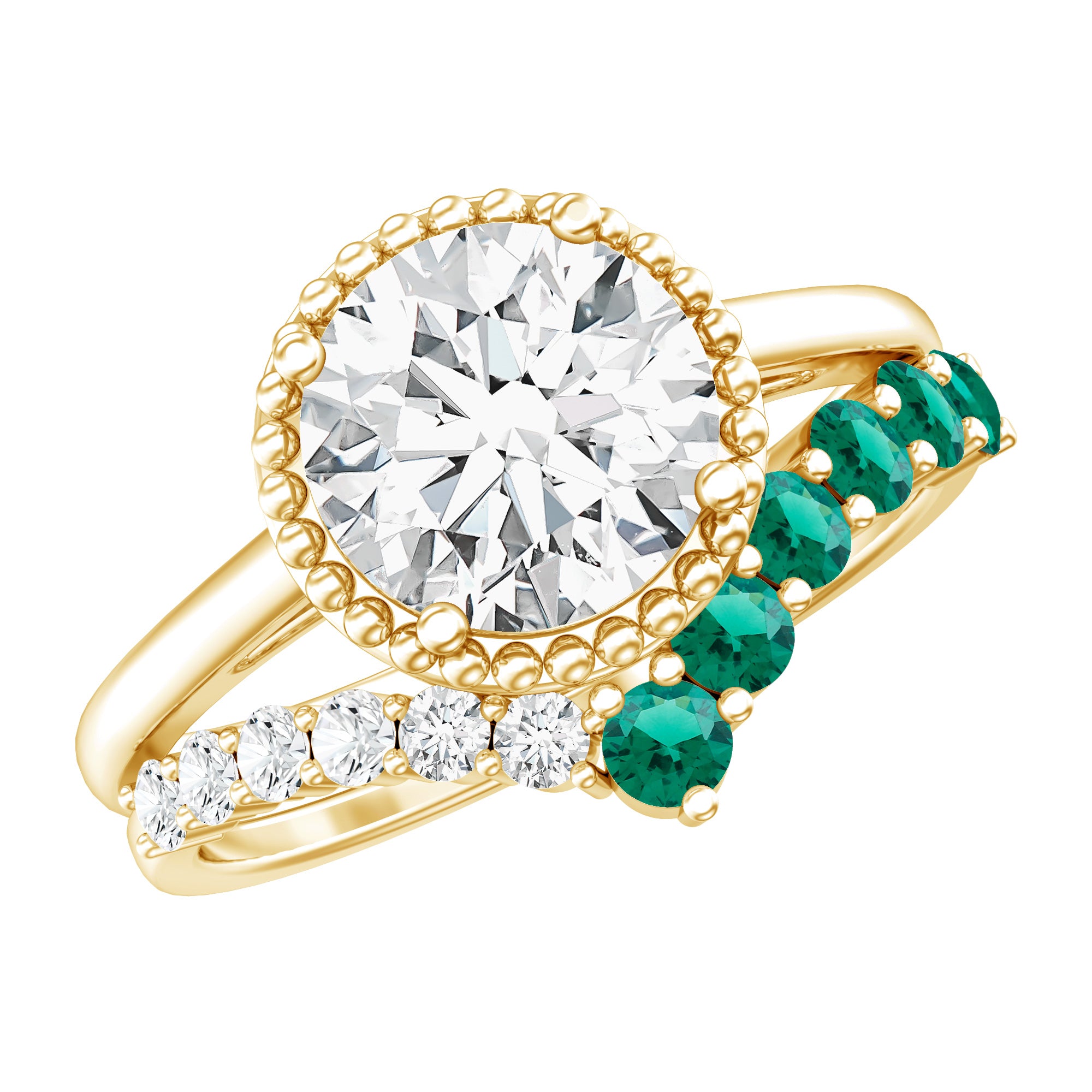 Halo Bridal Set – Extra sparkle with a lab-grown diamond halo in one ring complemented with other band with smaller gemstones.