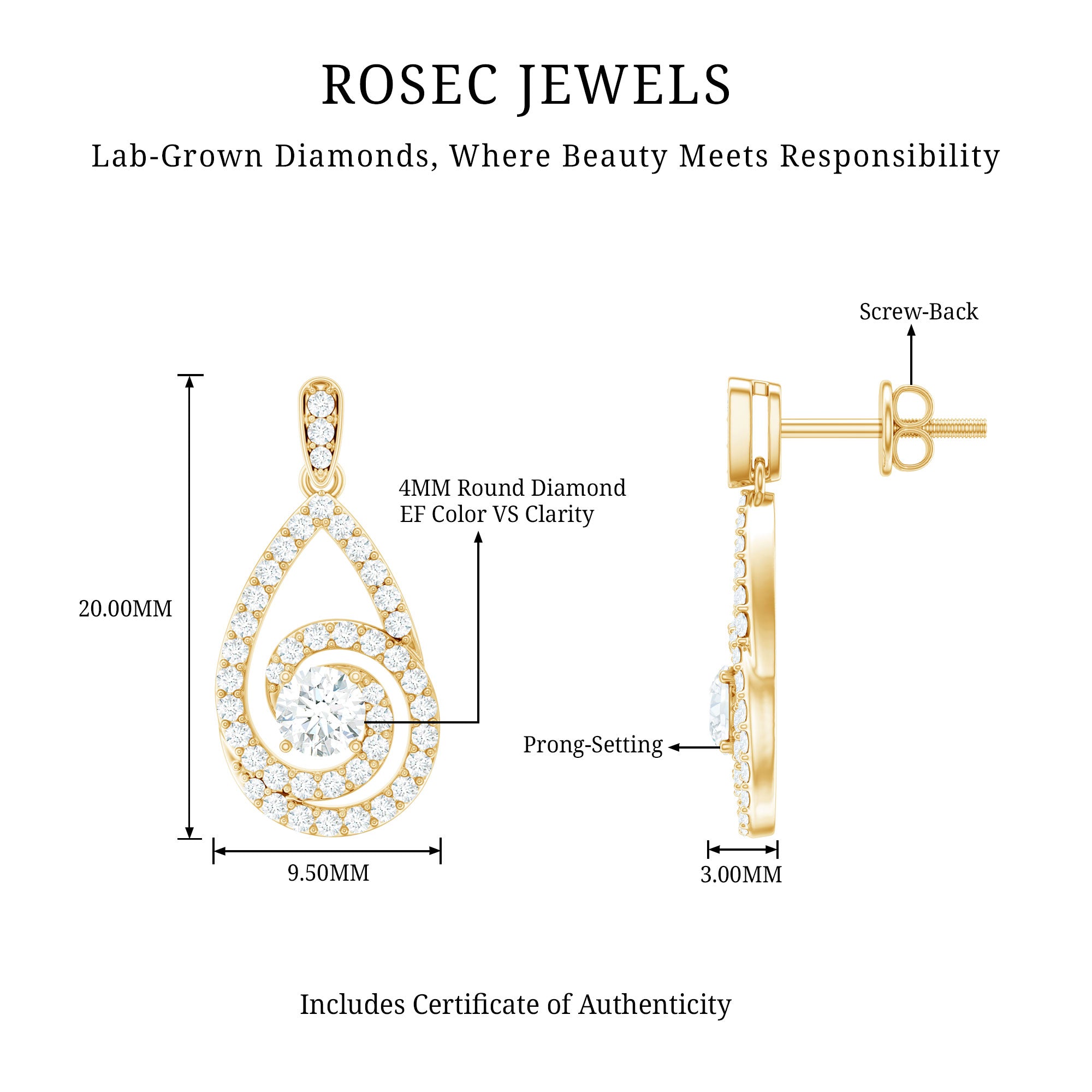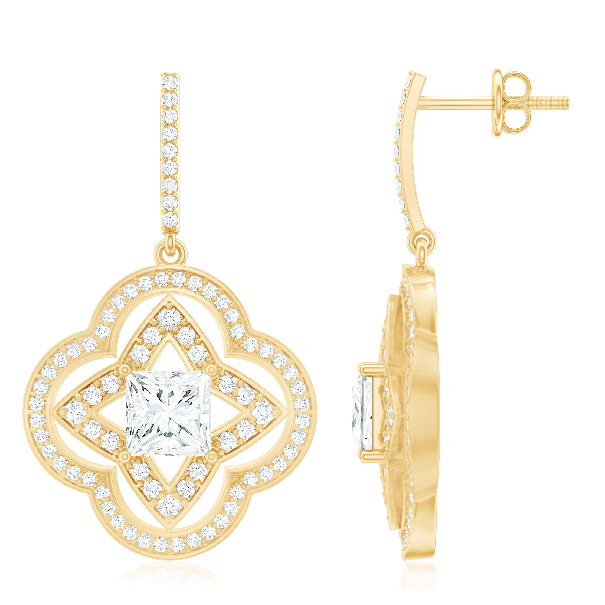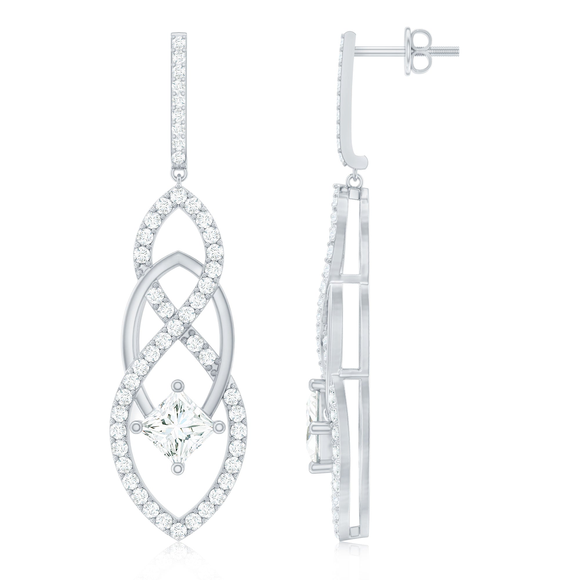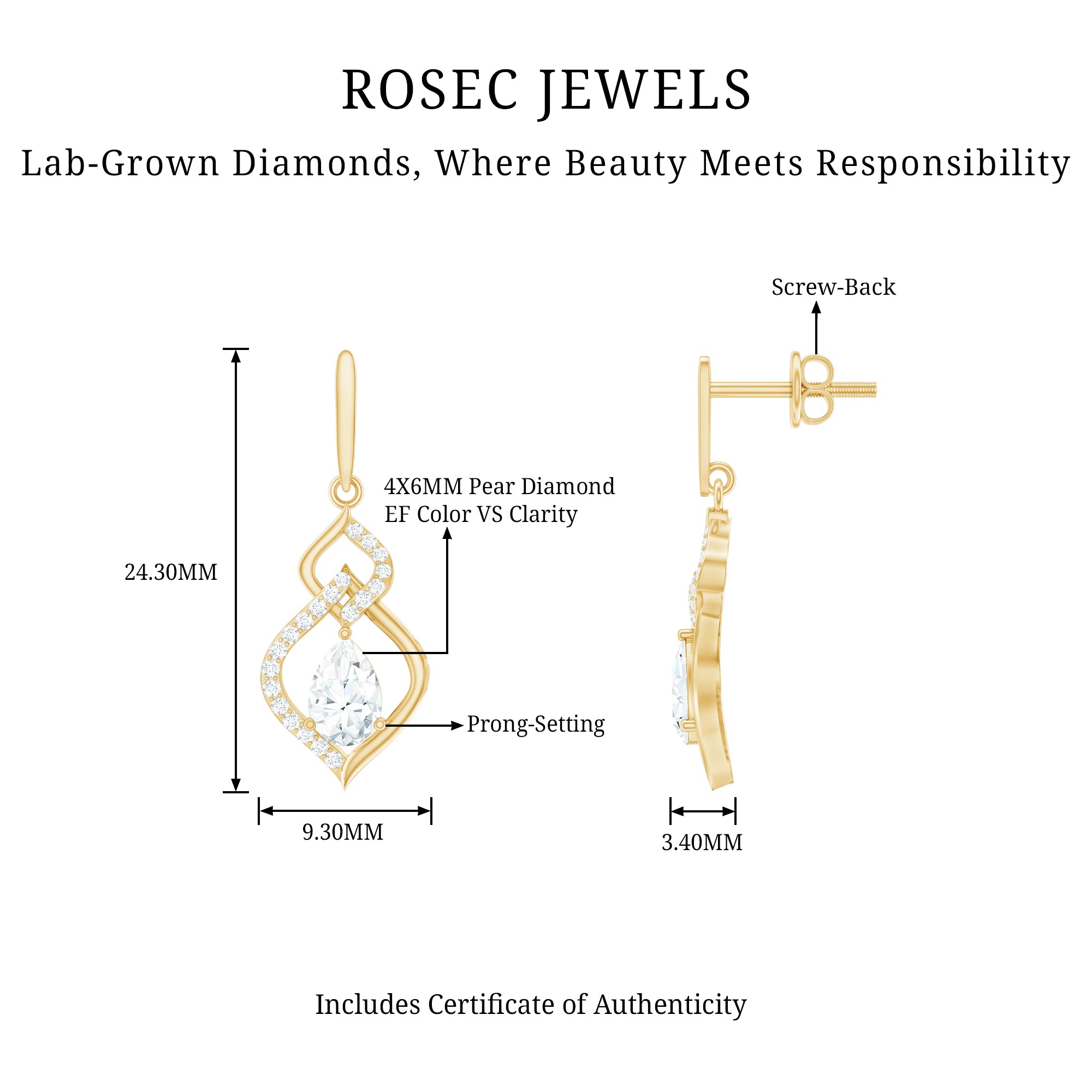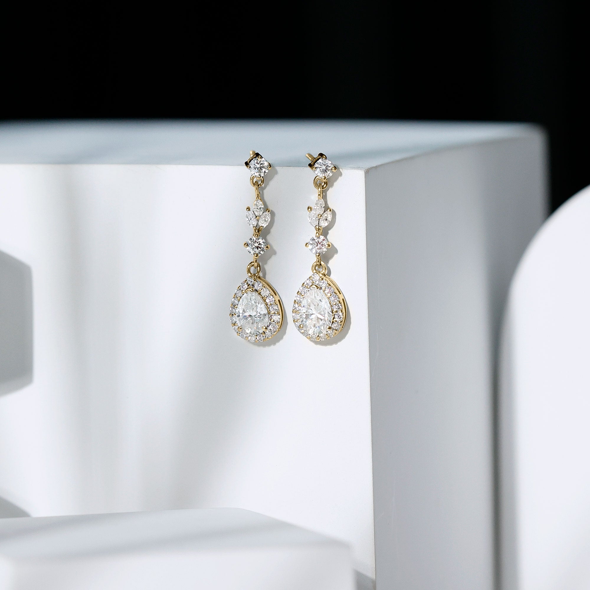 Lab grown diamond dangle earrings differentiate from drop earrings in their length and level of movement. Dangle earrings hang lower than drop earrings and swing more with every move.