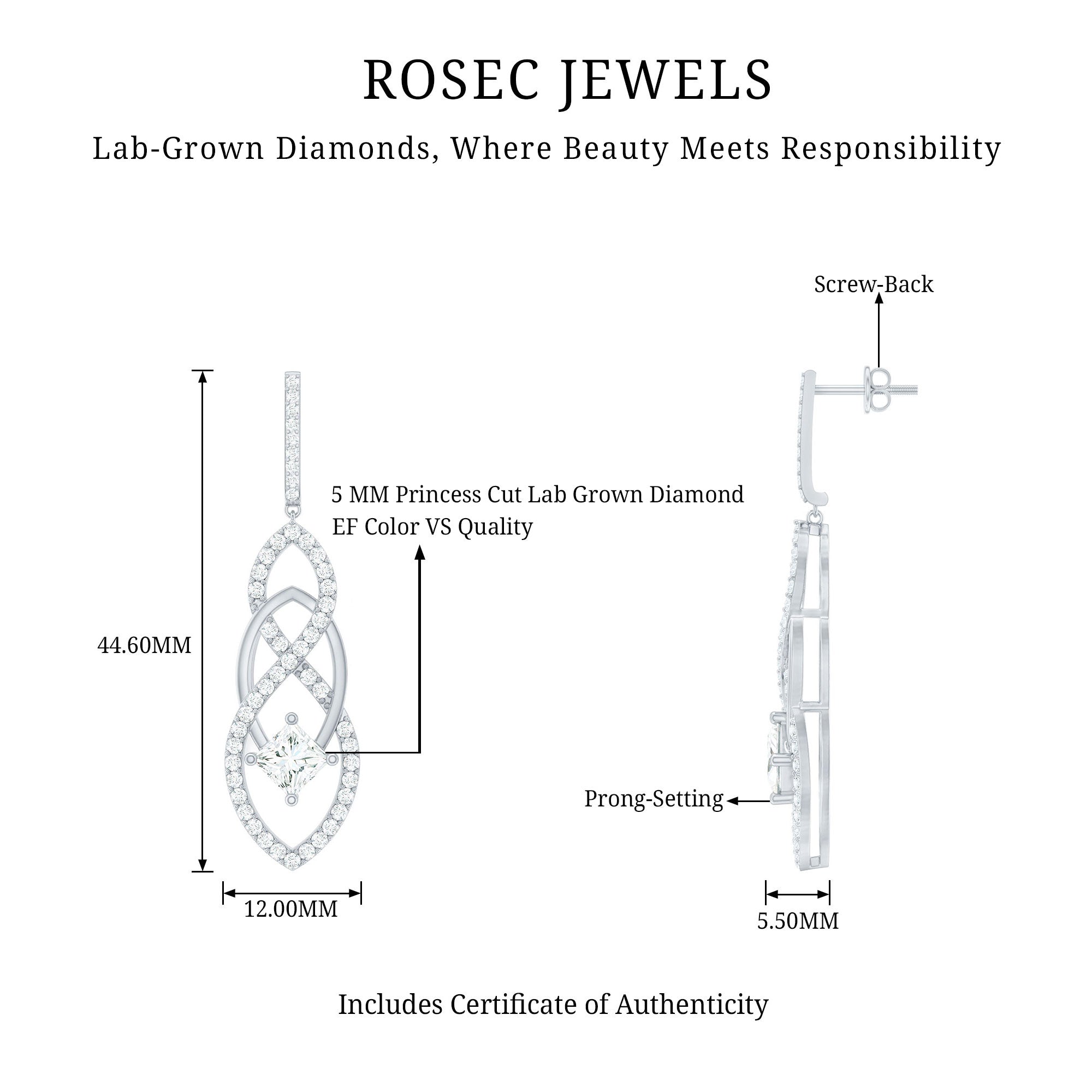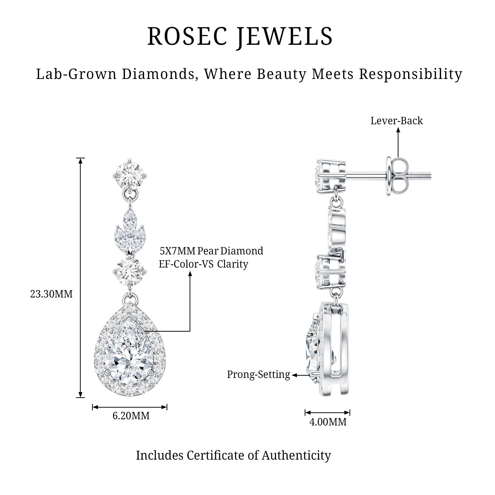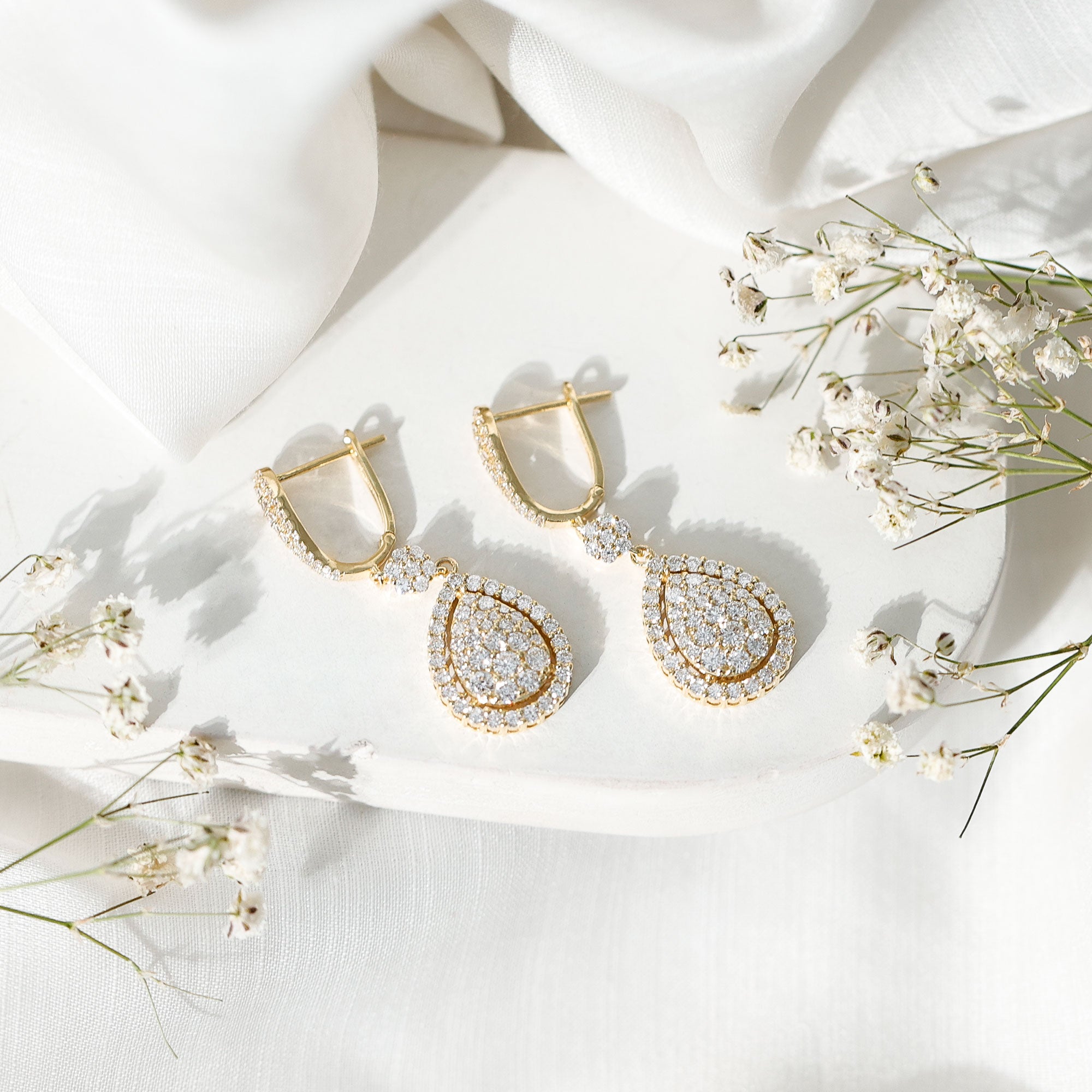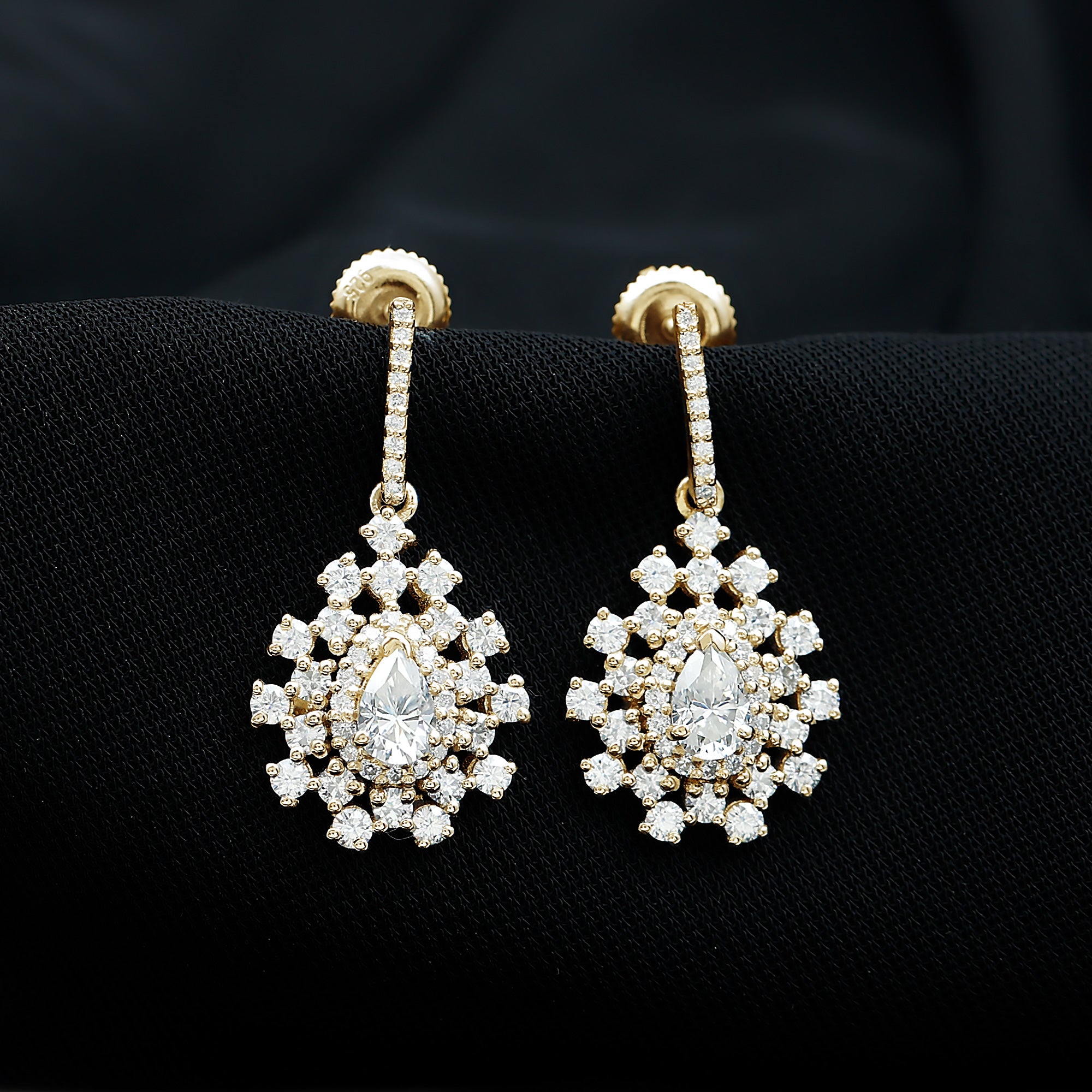 Lab grown diamond dangle earrings differentiate from drop earrings in their length and level of movement. Dangle earrings hang lower than drop earrings and swing more with every move.