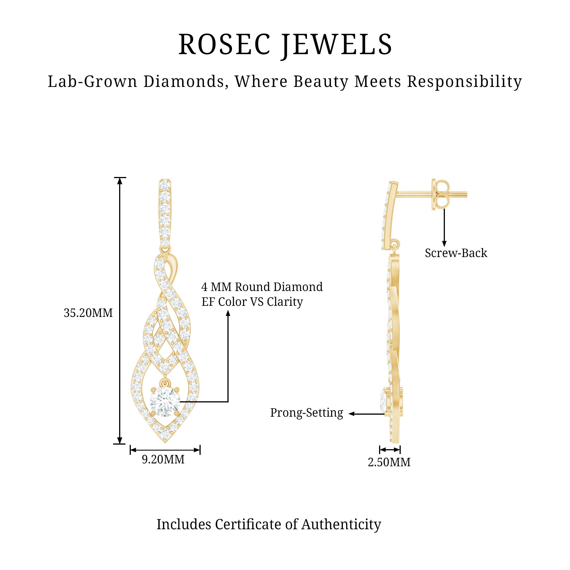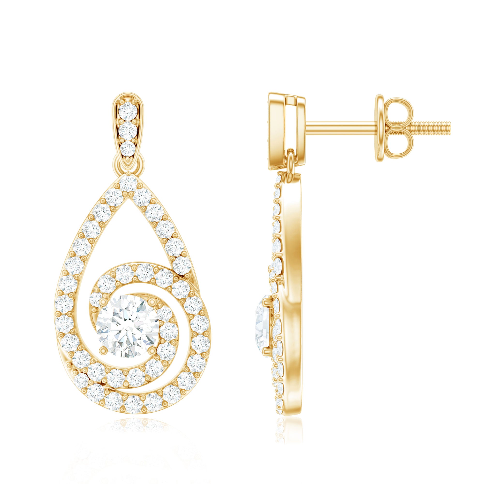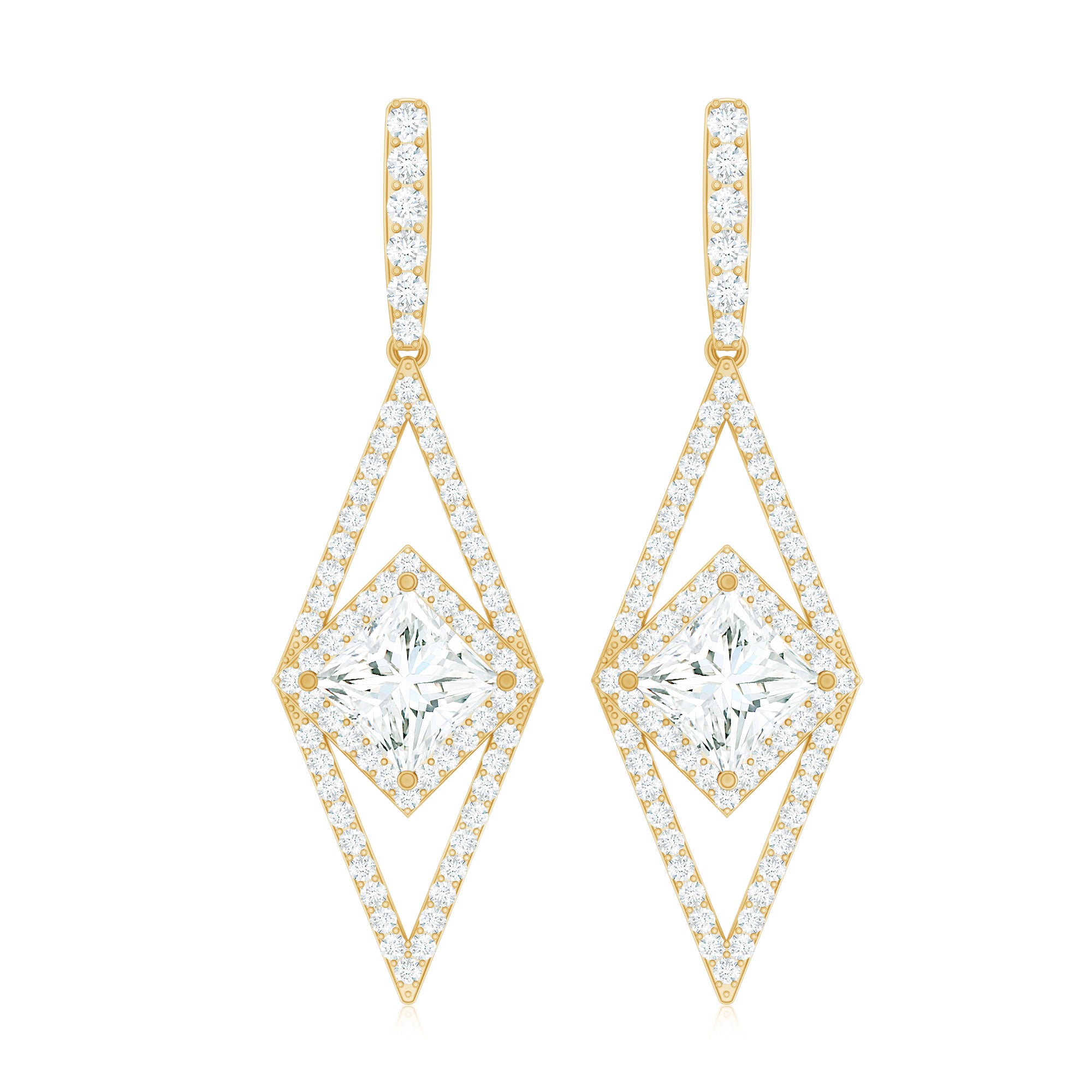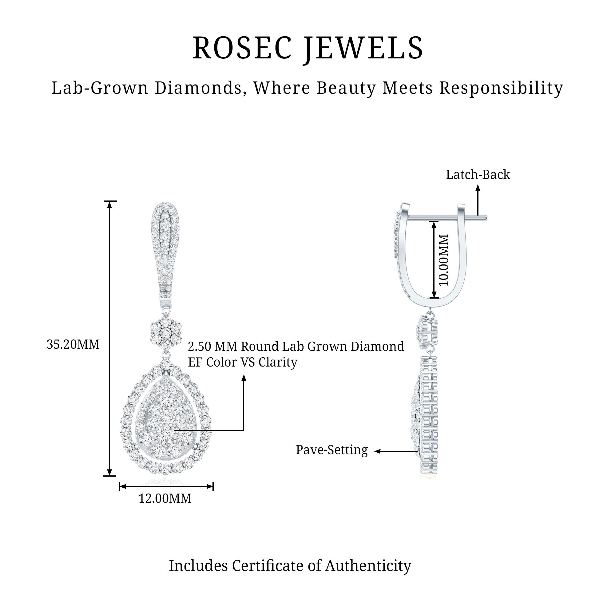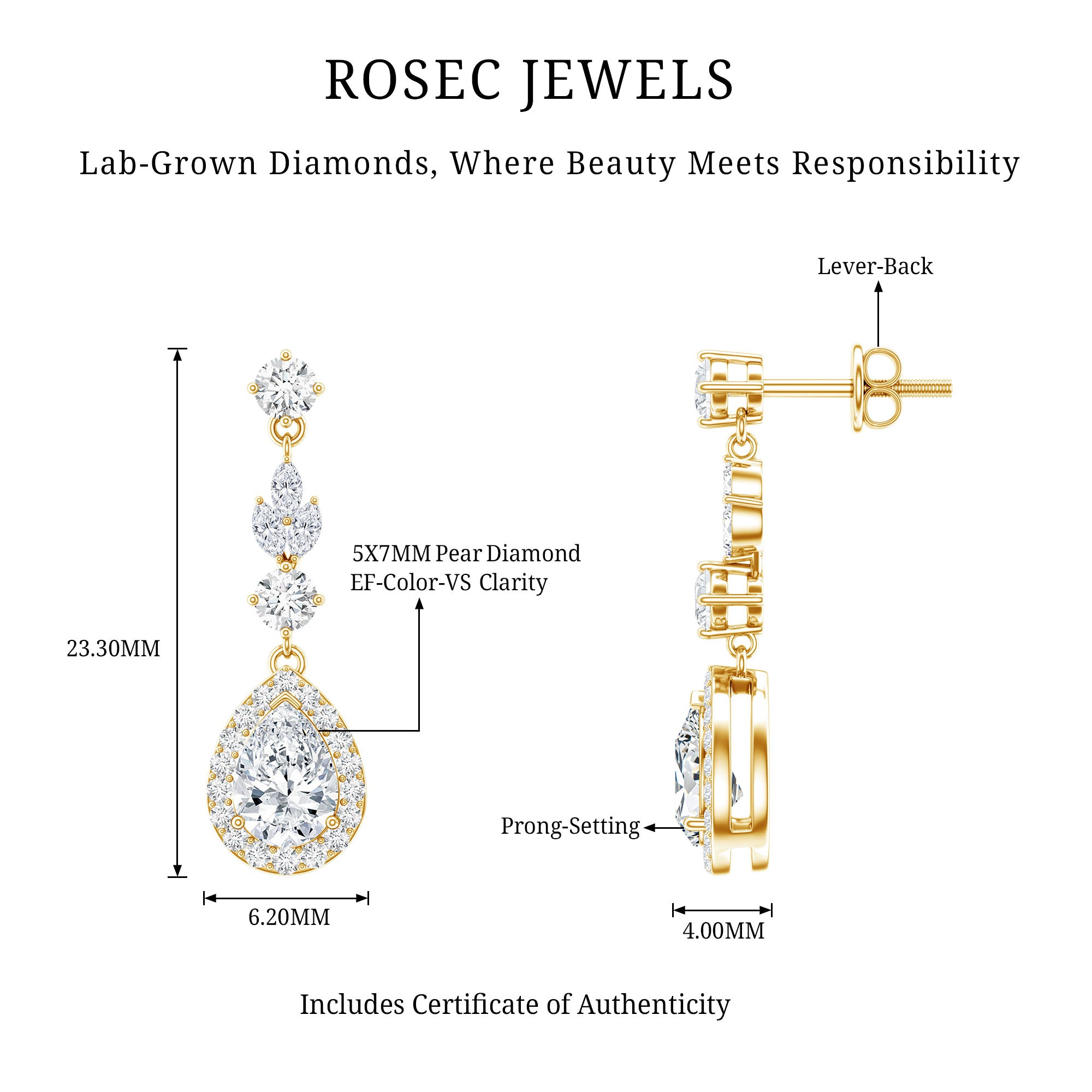 Lab grown diamond dangle earrings differentiate from drop earrings in their length and level of movement. Dangle earrings hang lower than drop earrings and swing more with every move.