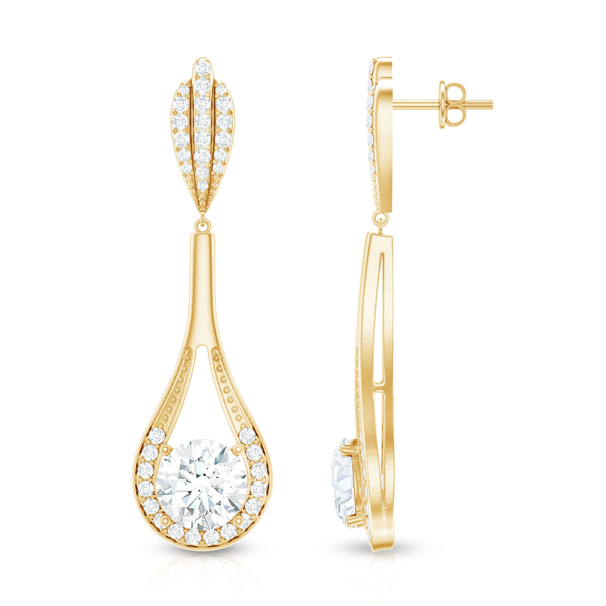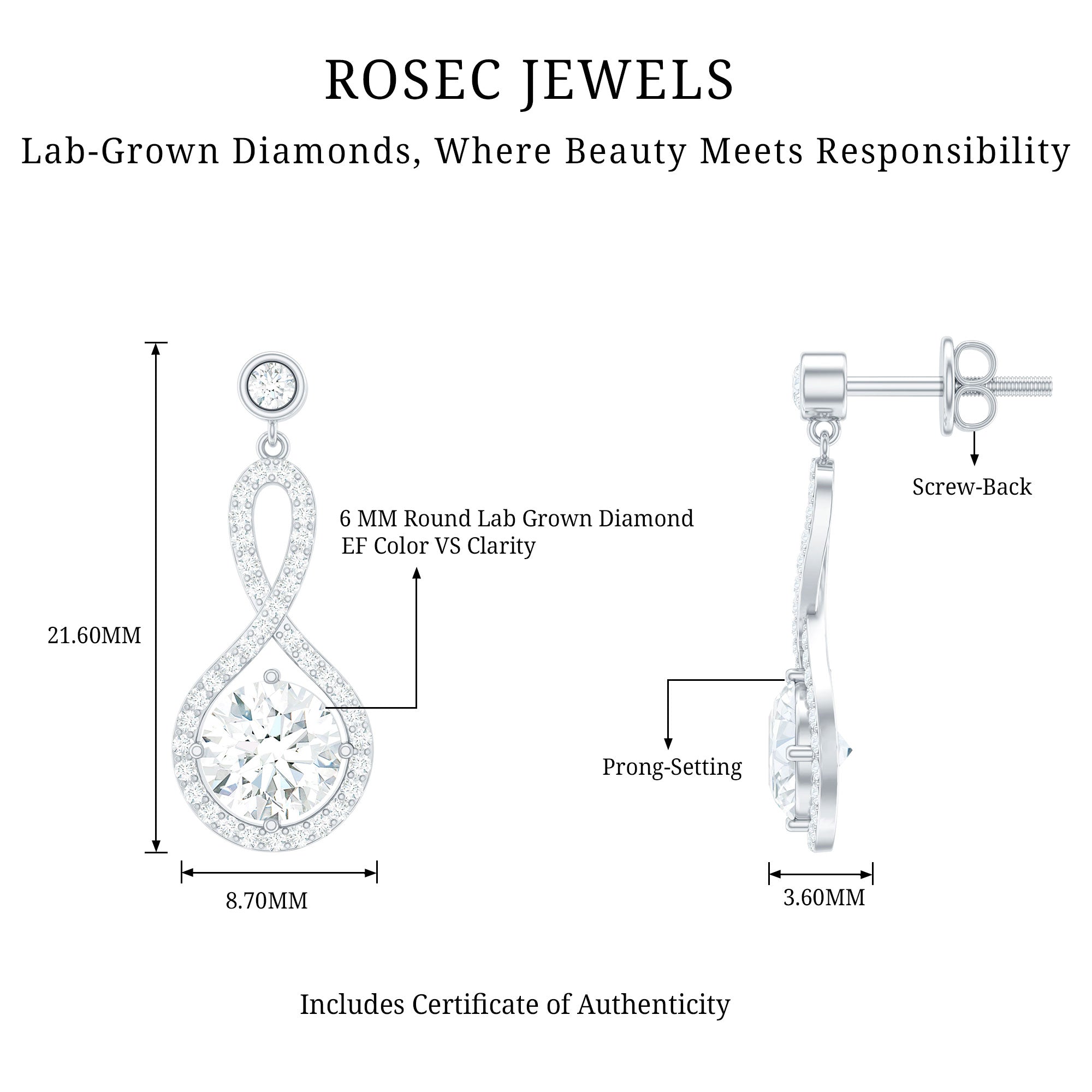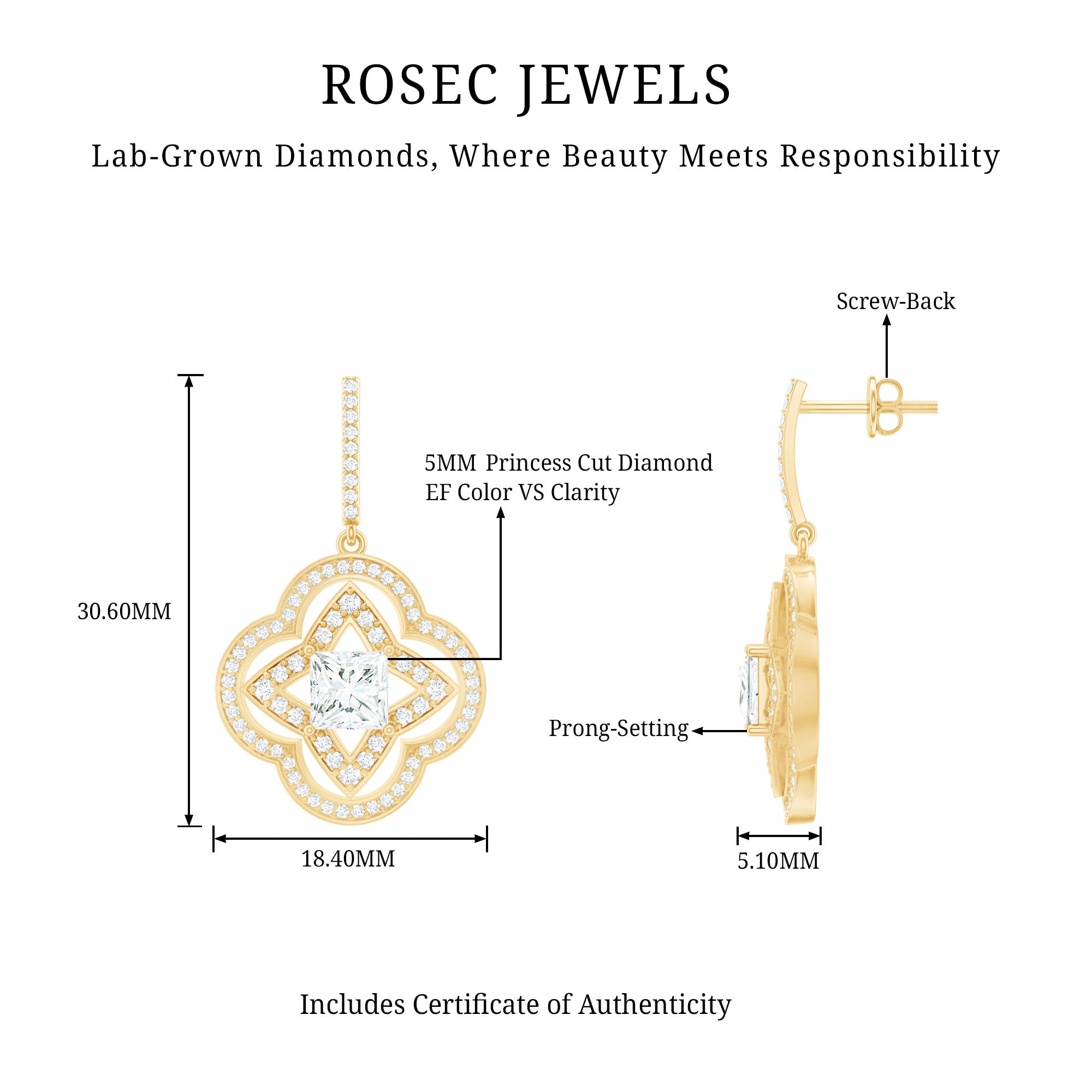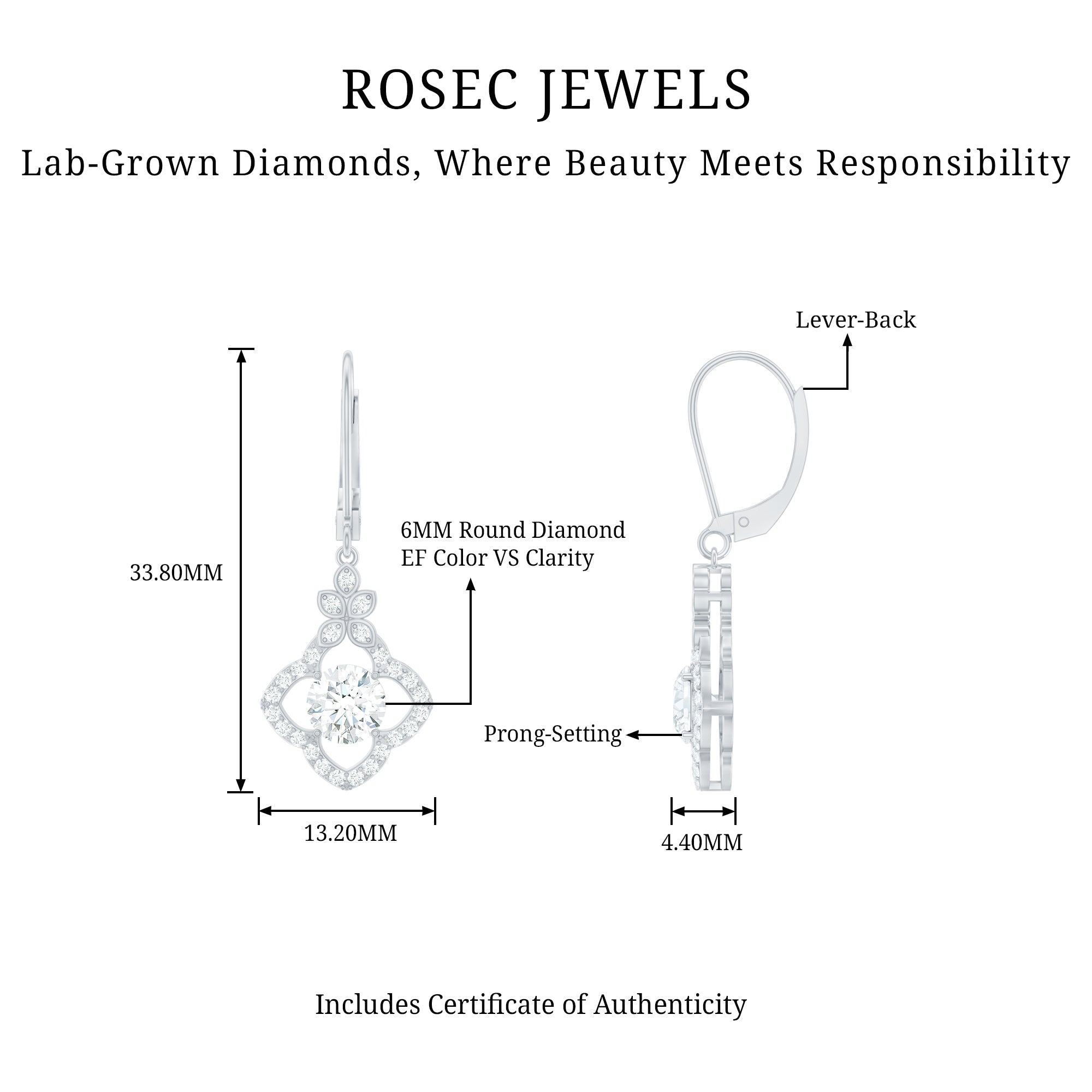Lab grown diamond dangle earrings differentiate from drop earrings in their length and level of movement. Dangle earrings hang lower than drop earrings and swing more with every move.