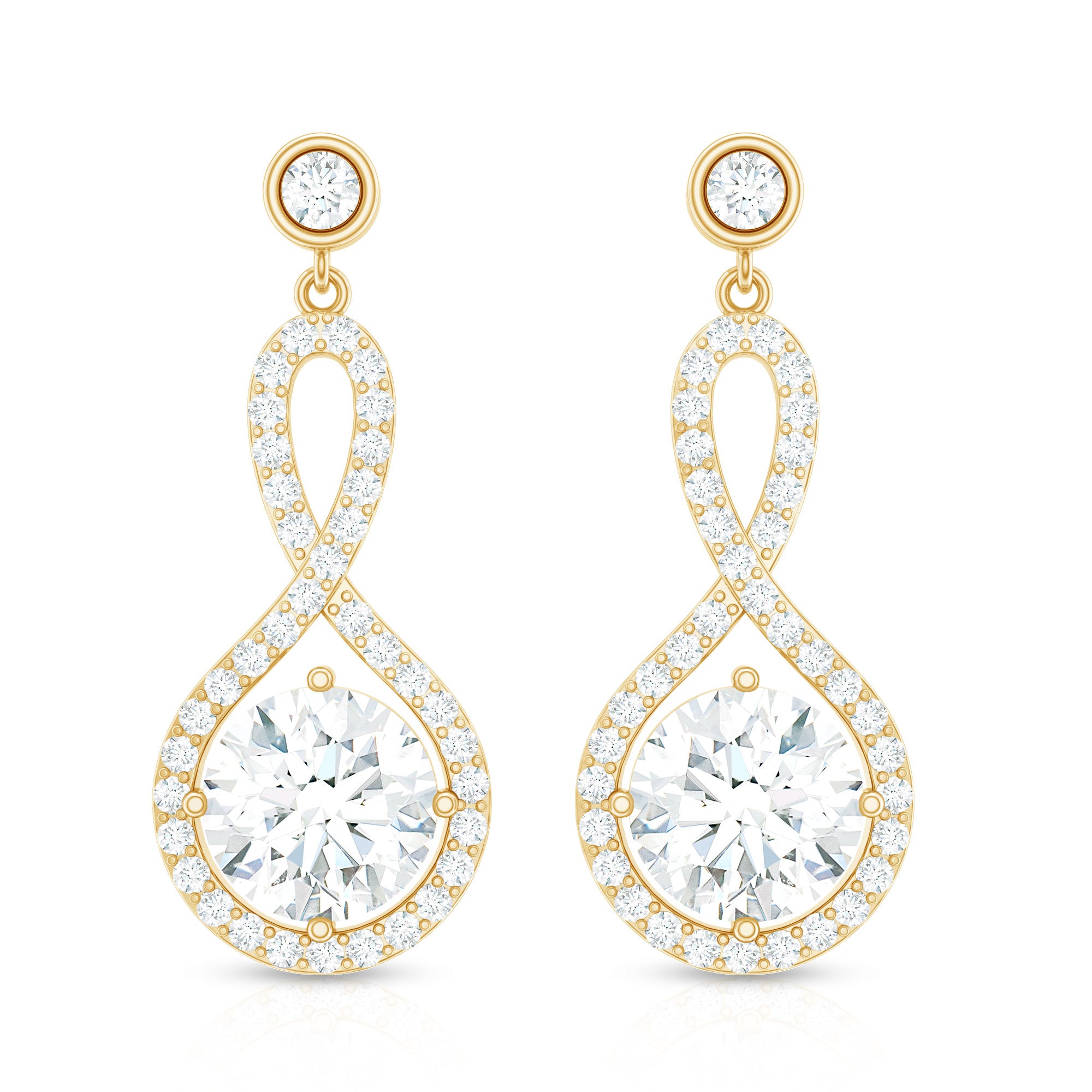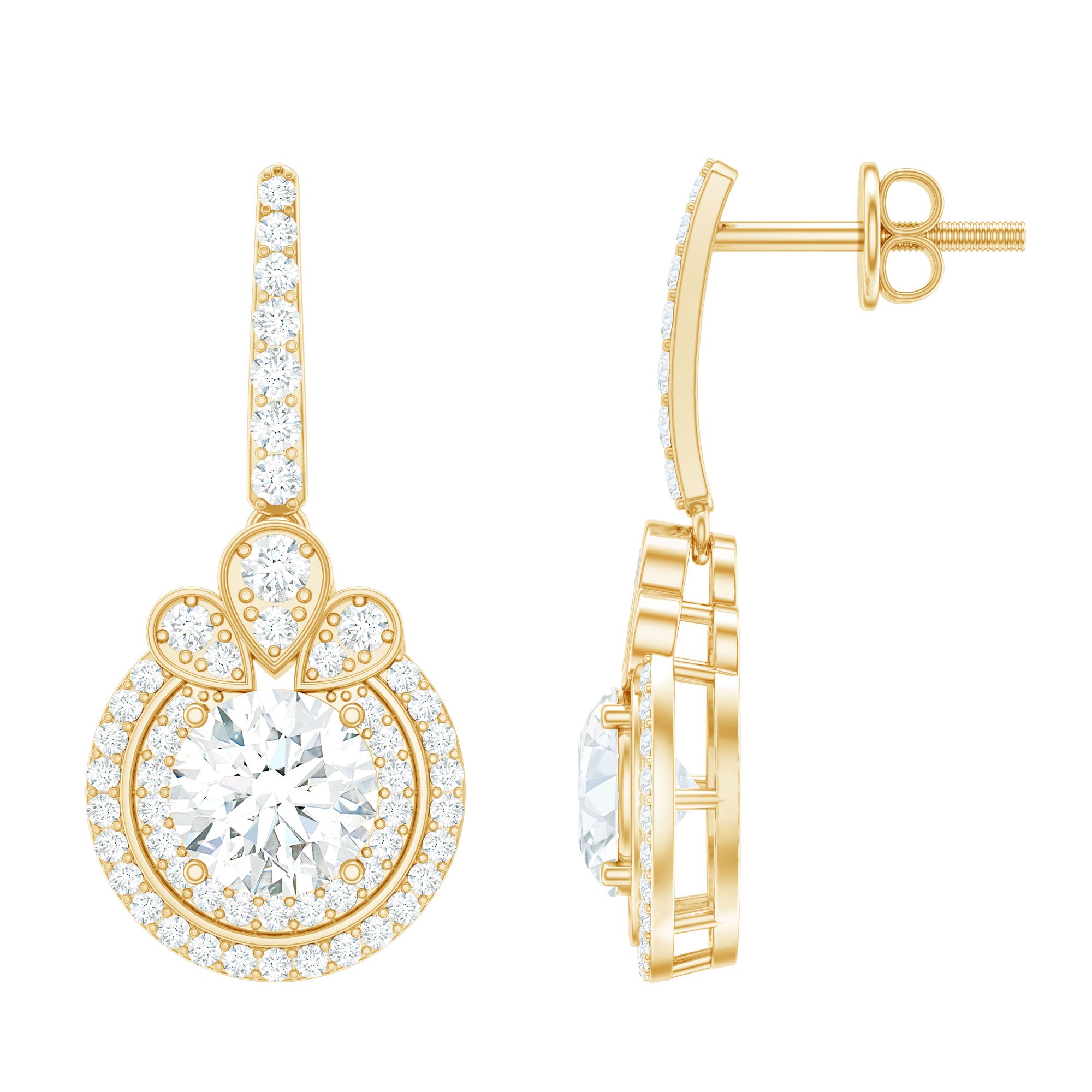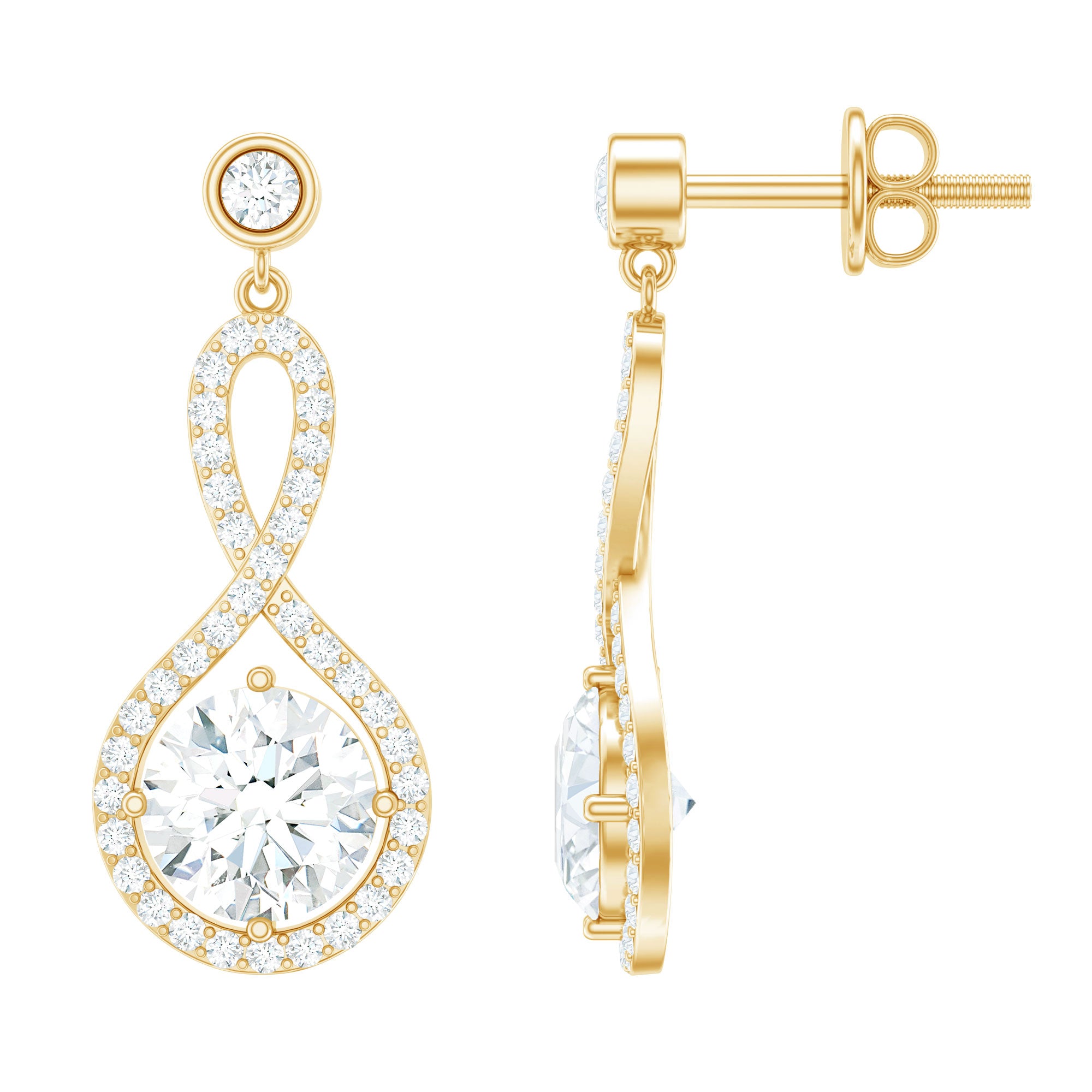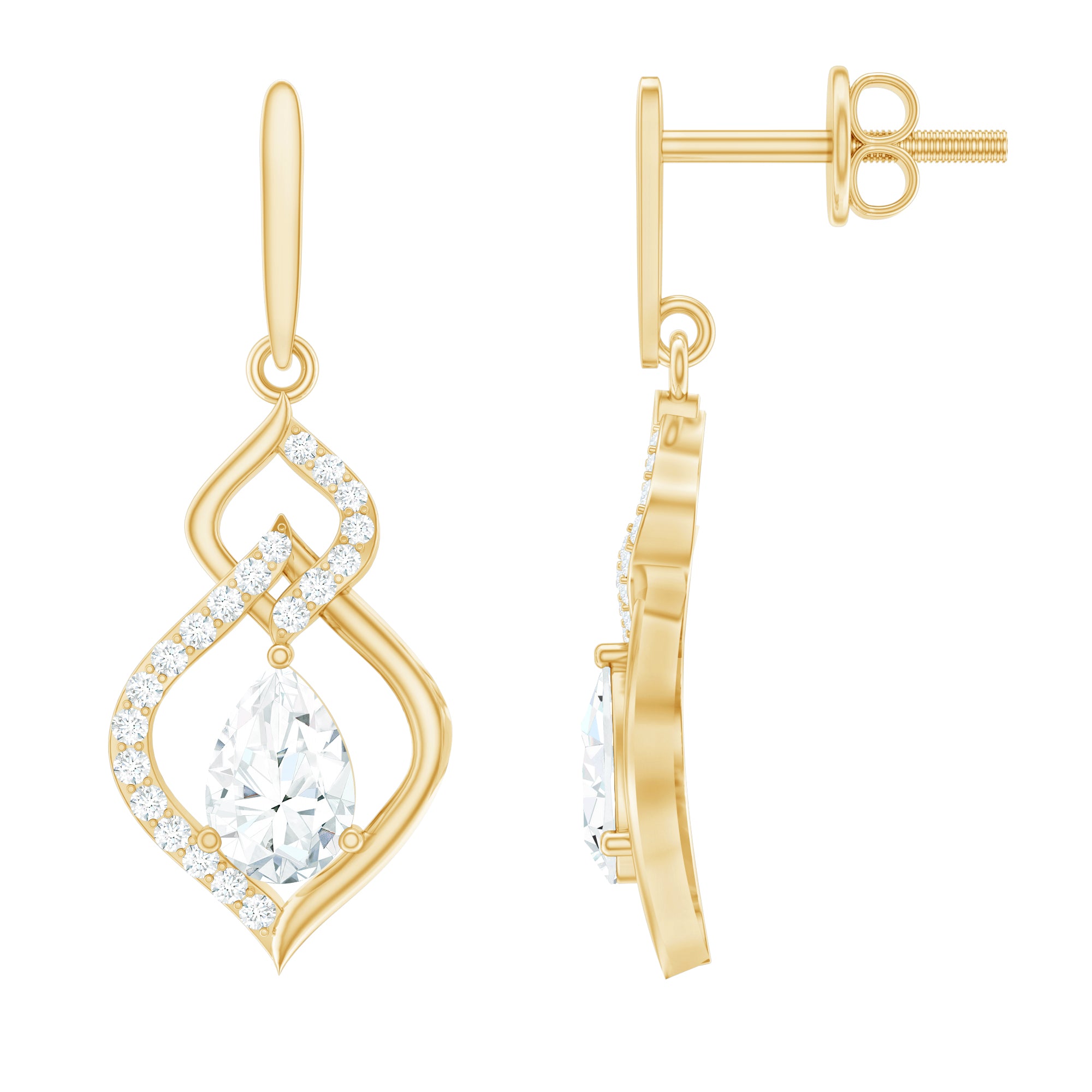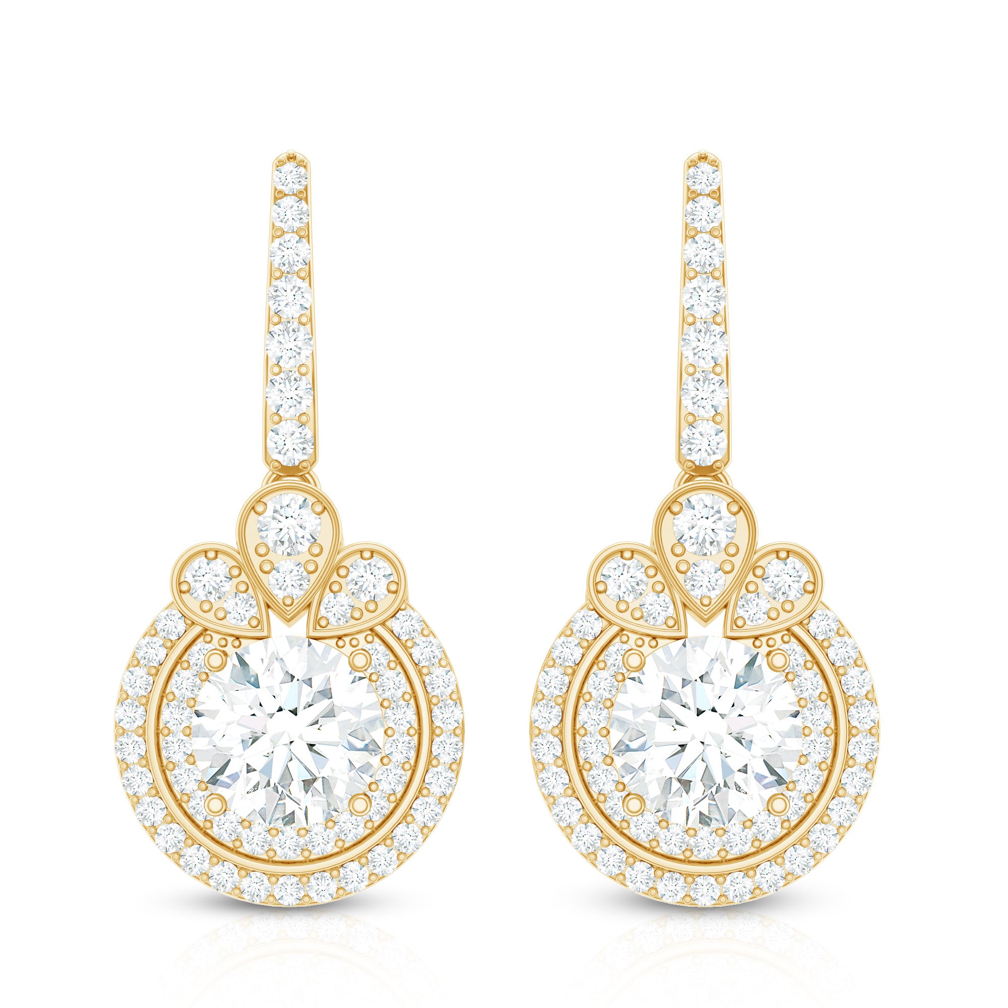 Lab grown diamond dangle earrings differentiate from drop earrings in their length and level of movement. Dangle earrings hang lower than drop earrings and swing more with every move.