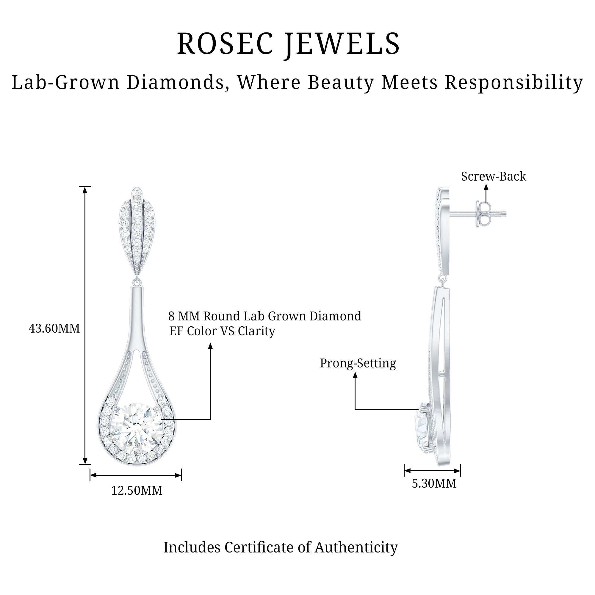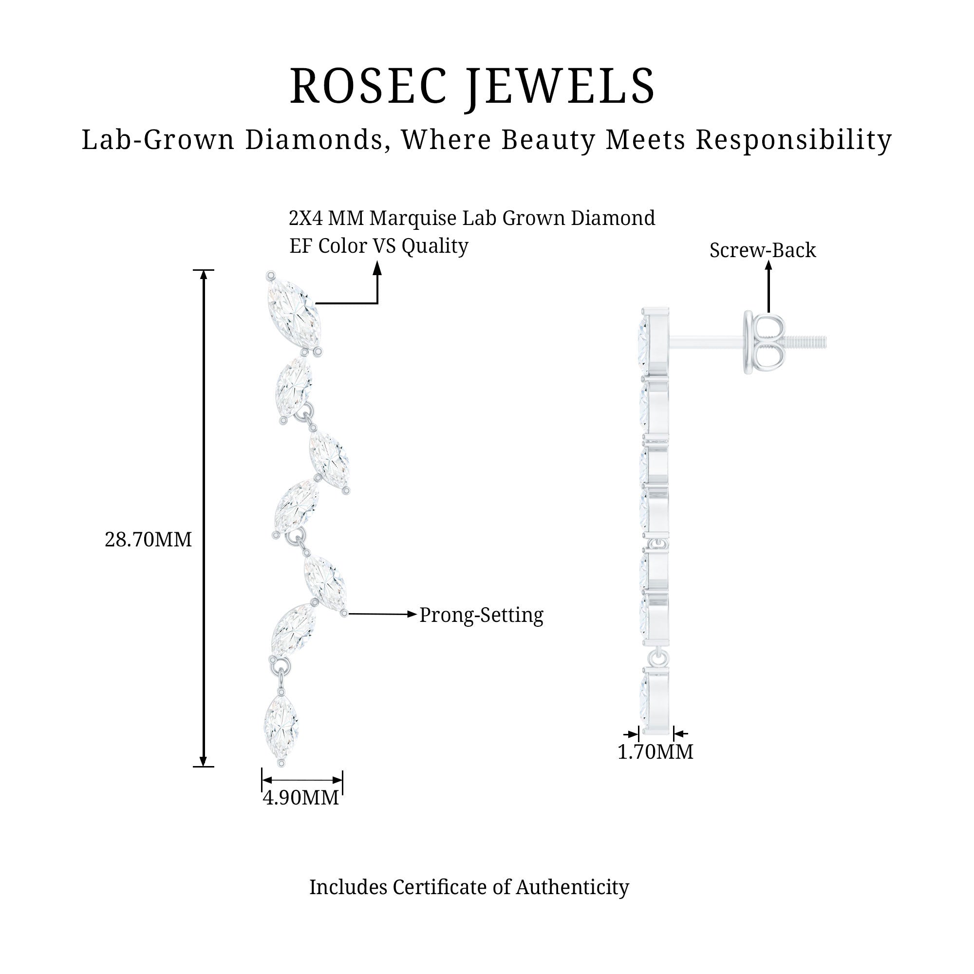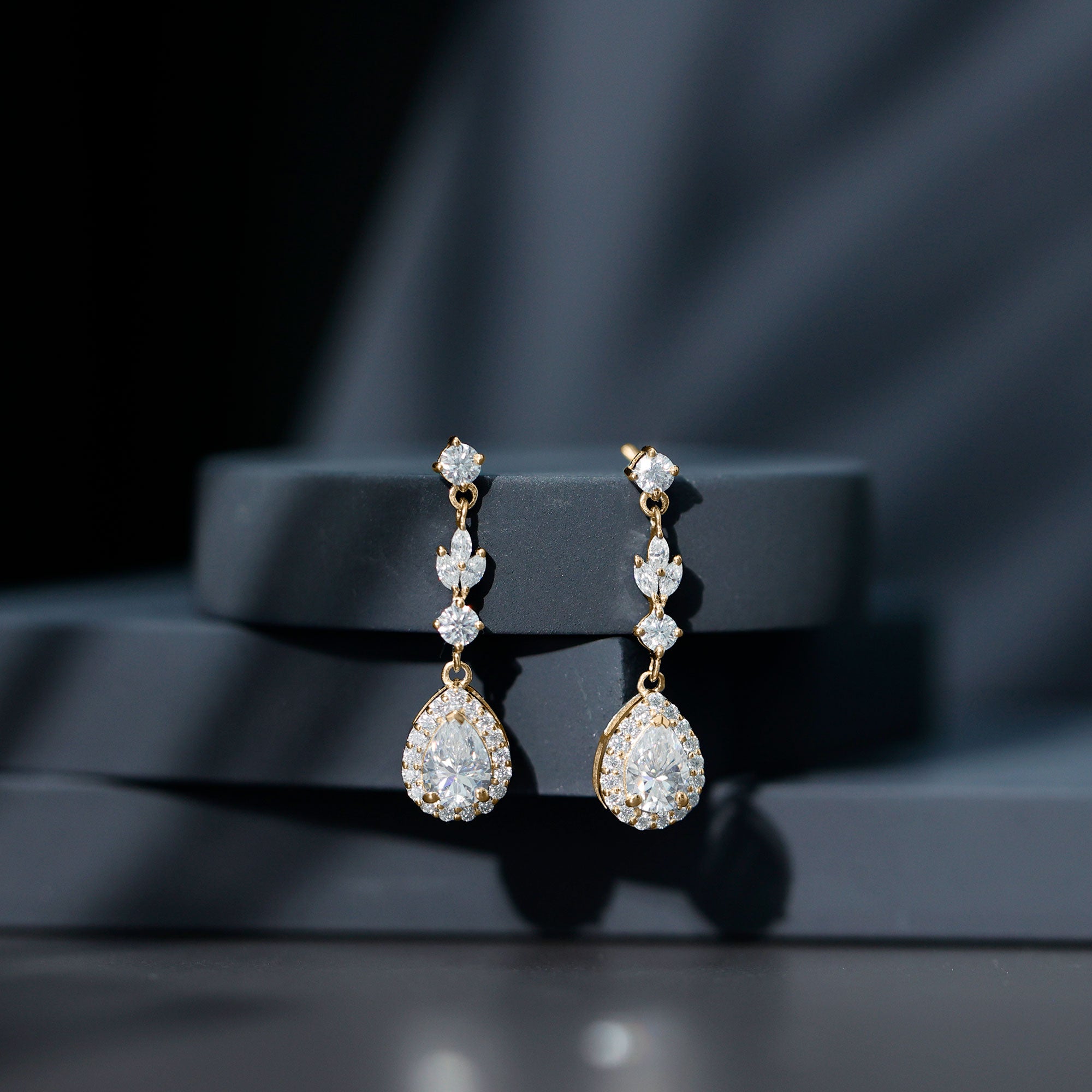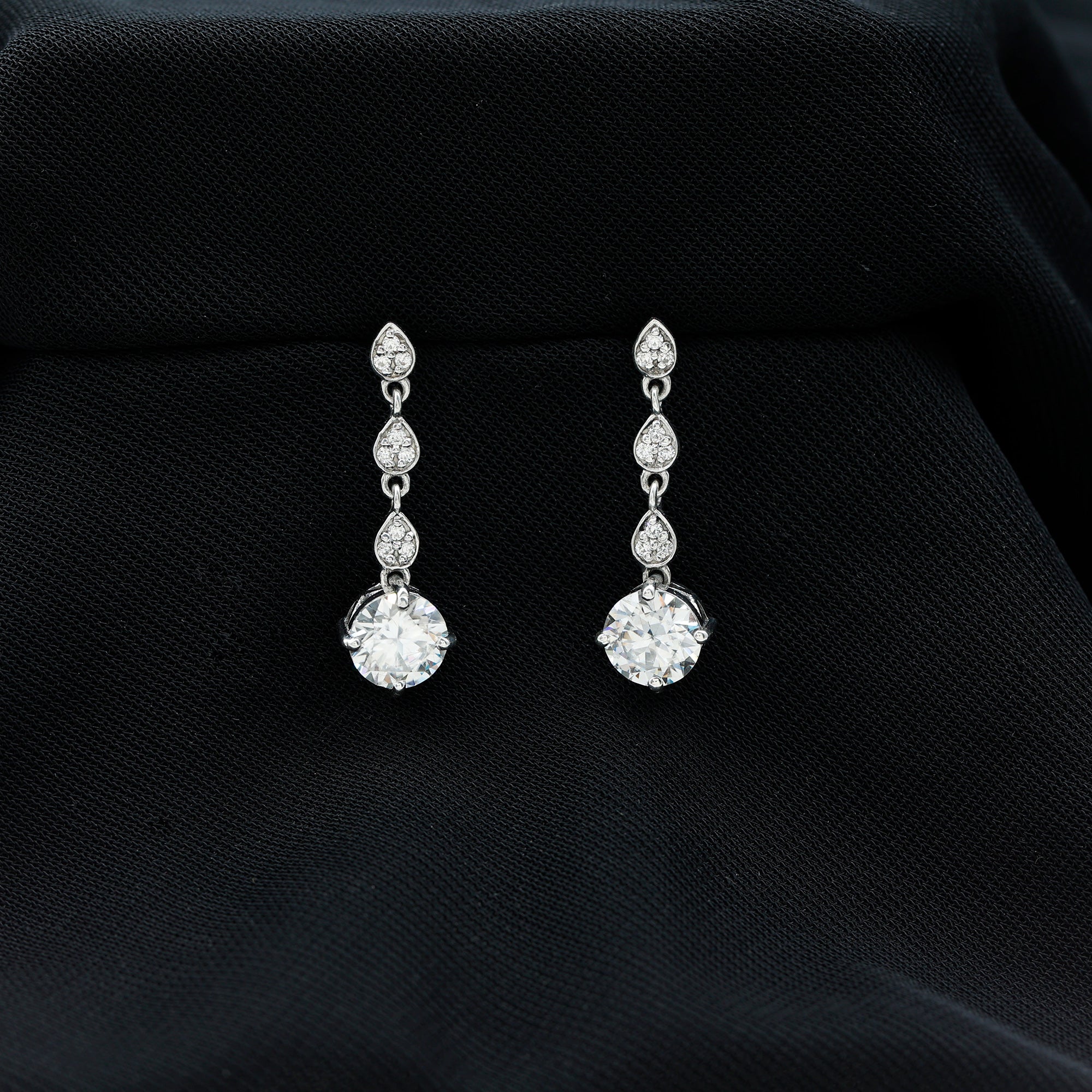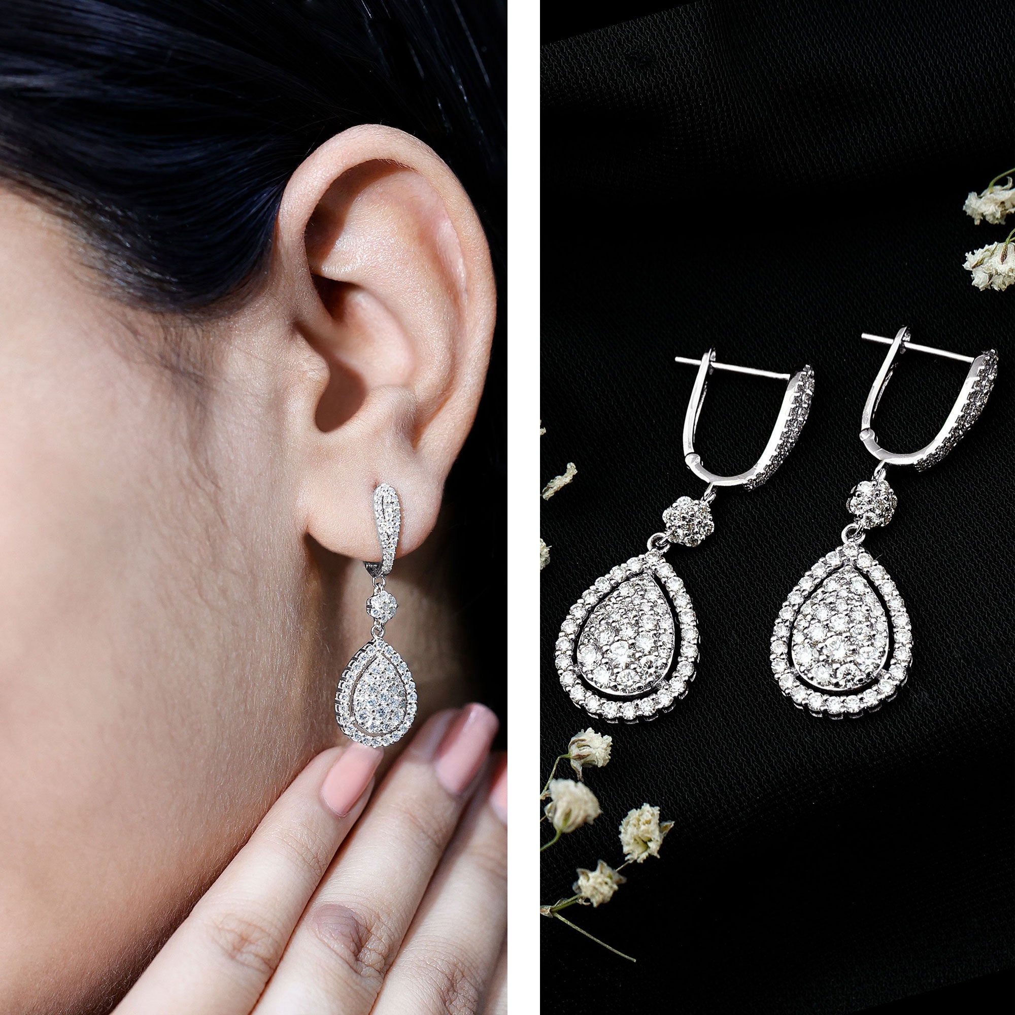 Drop earrings usually hang under an inch to a few inches in length, below the earlobe. The shorter lab grown diamond drops are usually preferred for casual occasions, while longer styles make a striking statement for formal events.