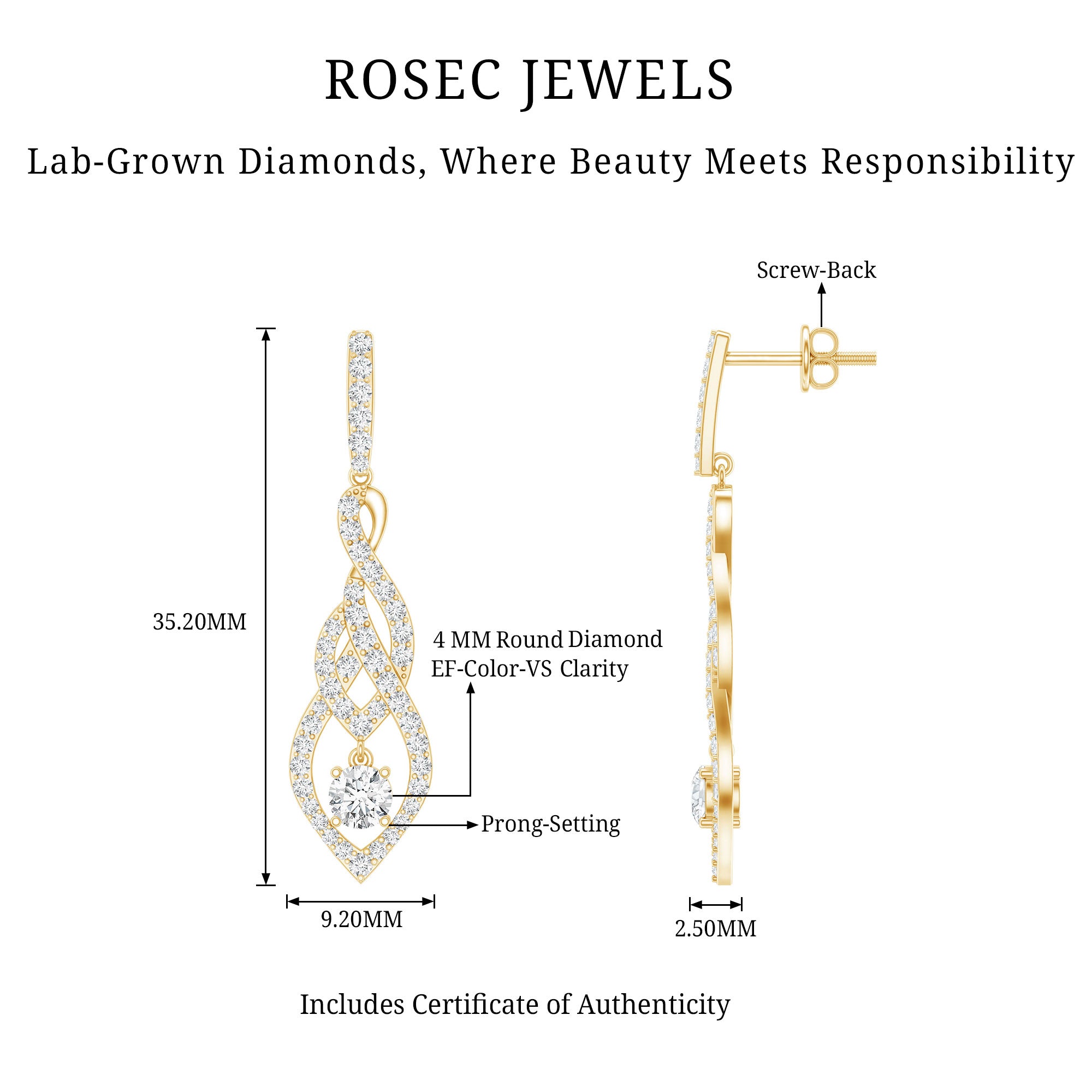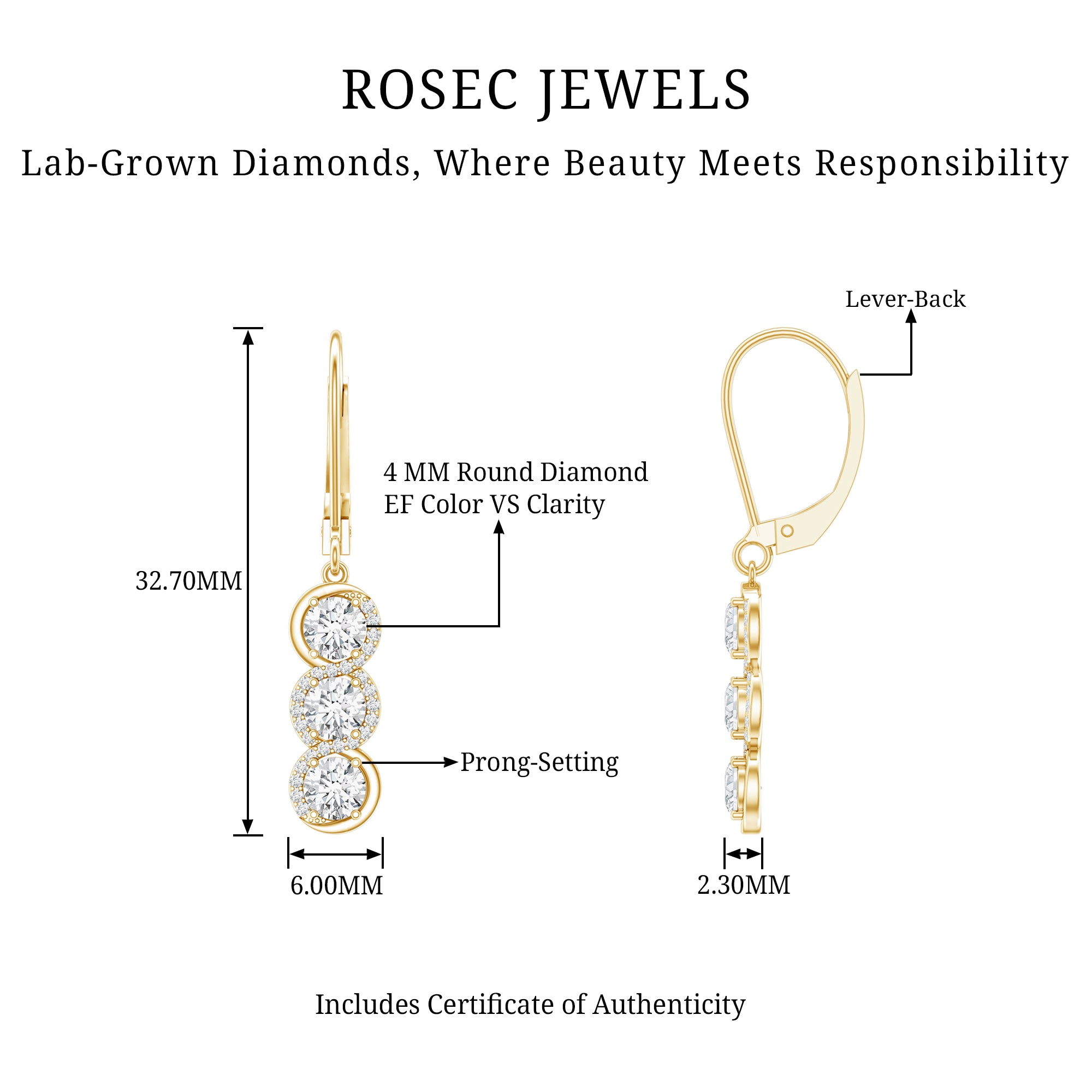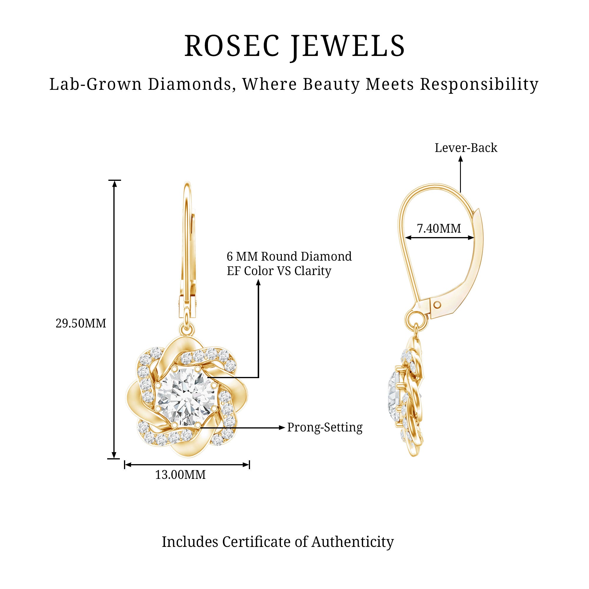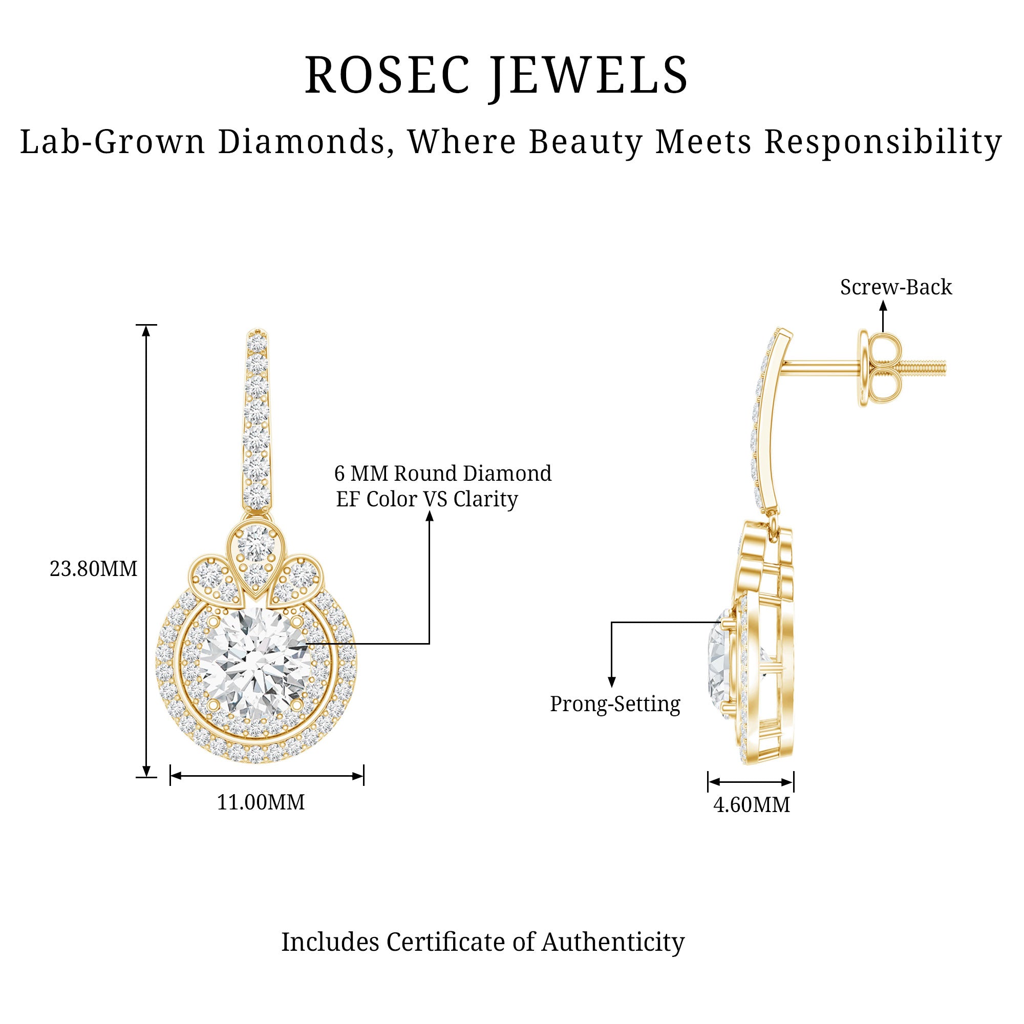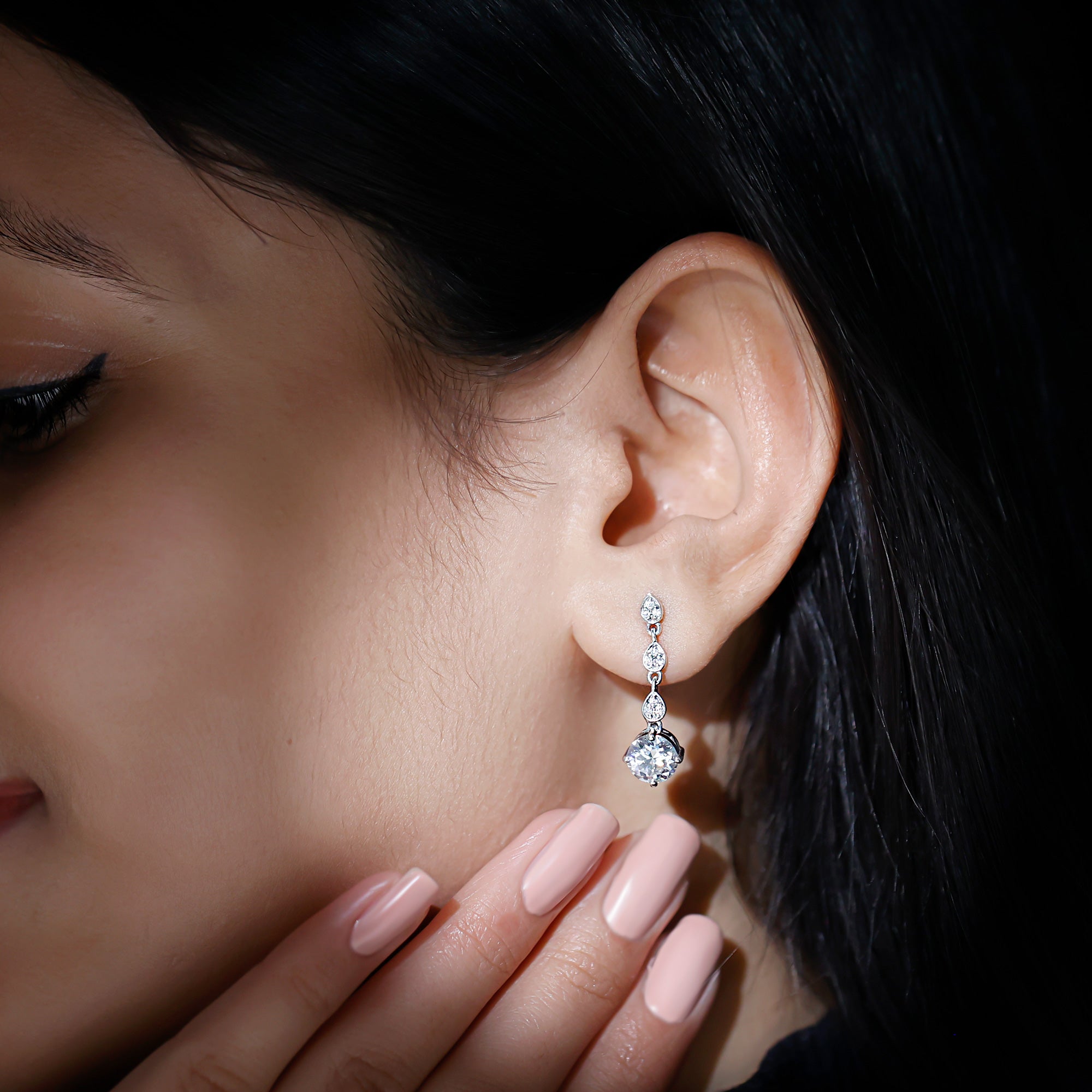 Lab grown diamond dangle earrings differentiate from drop earrings in their length and level of movement. Dangle earrings hang lower than drop earrings and swing more with every move.
