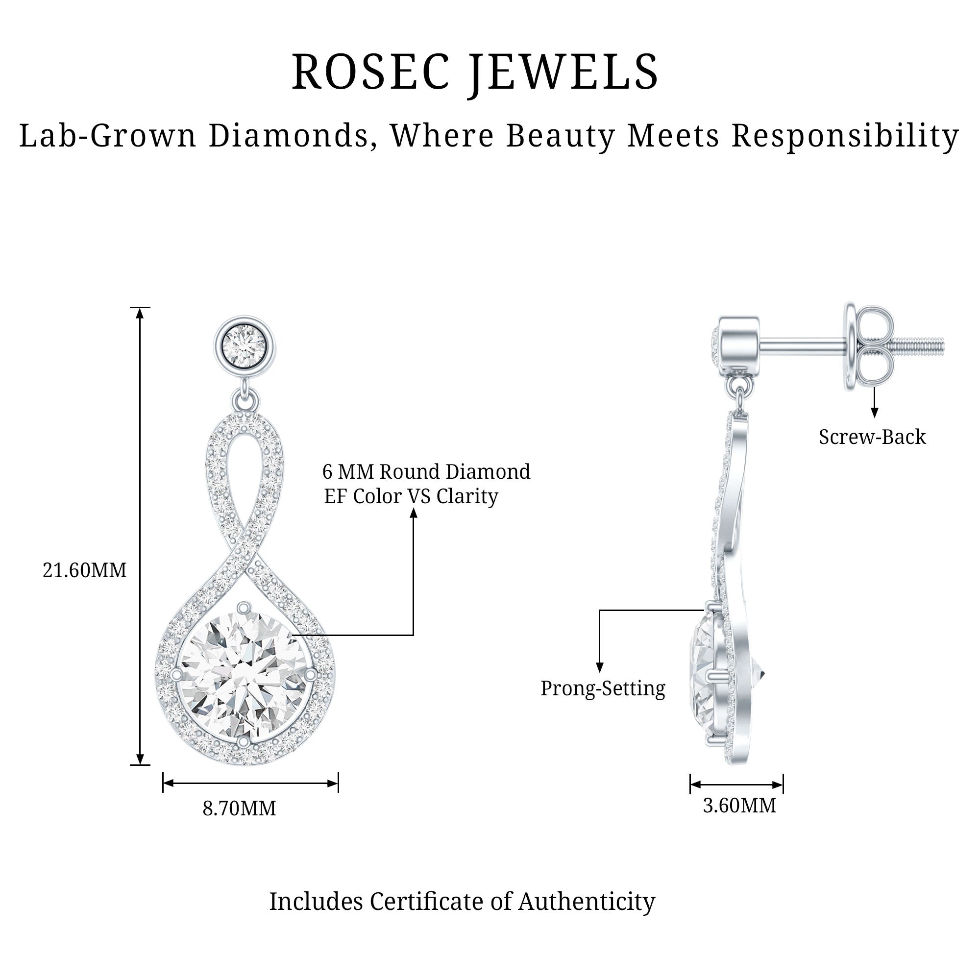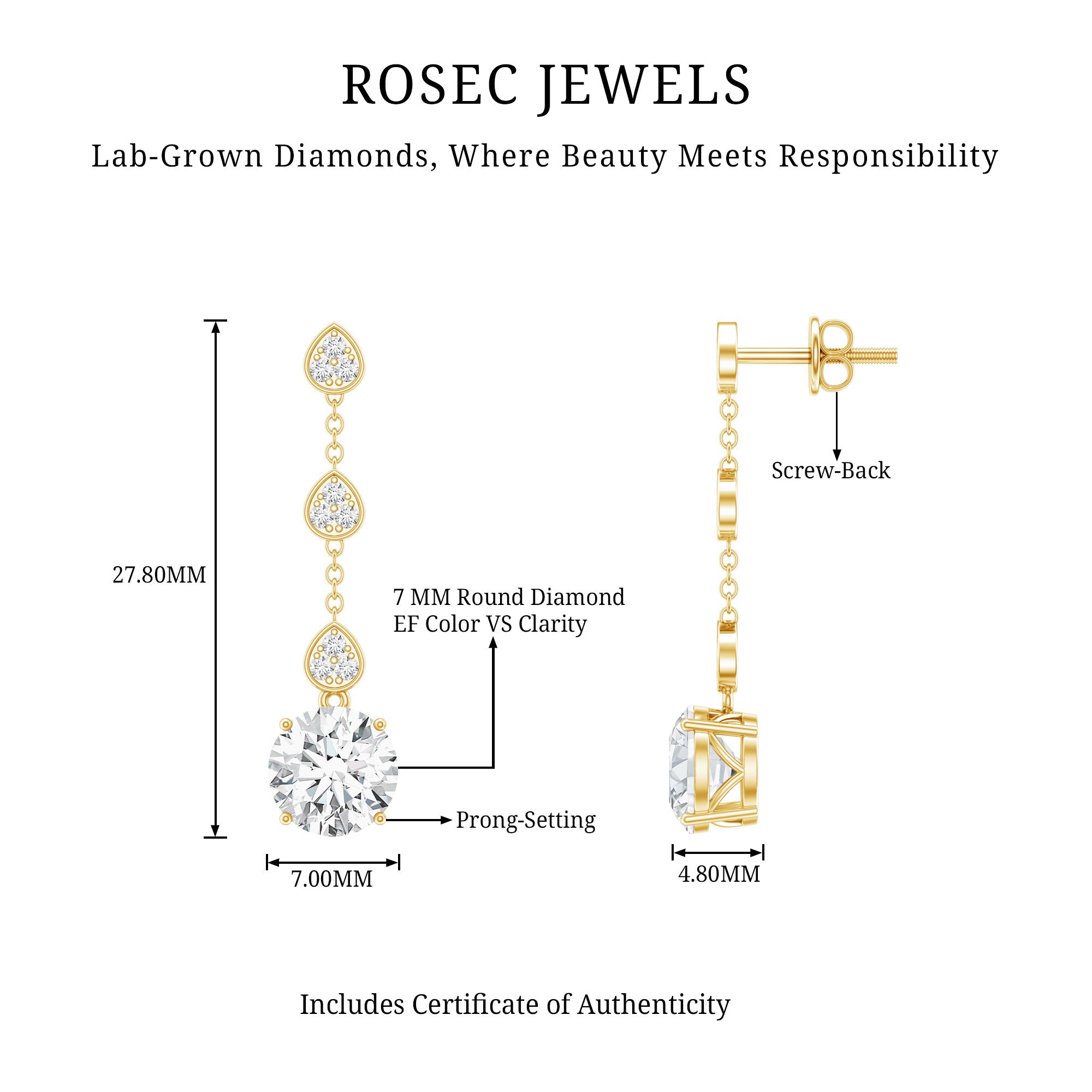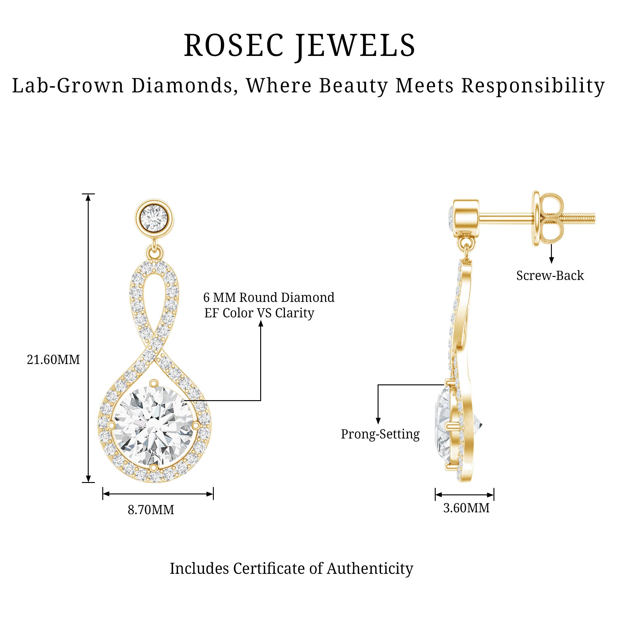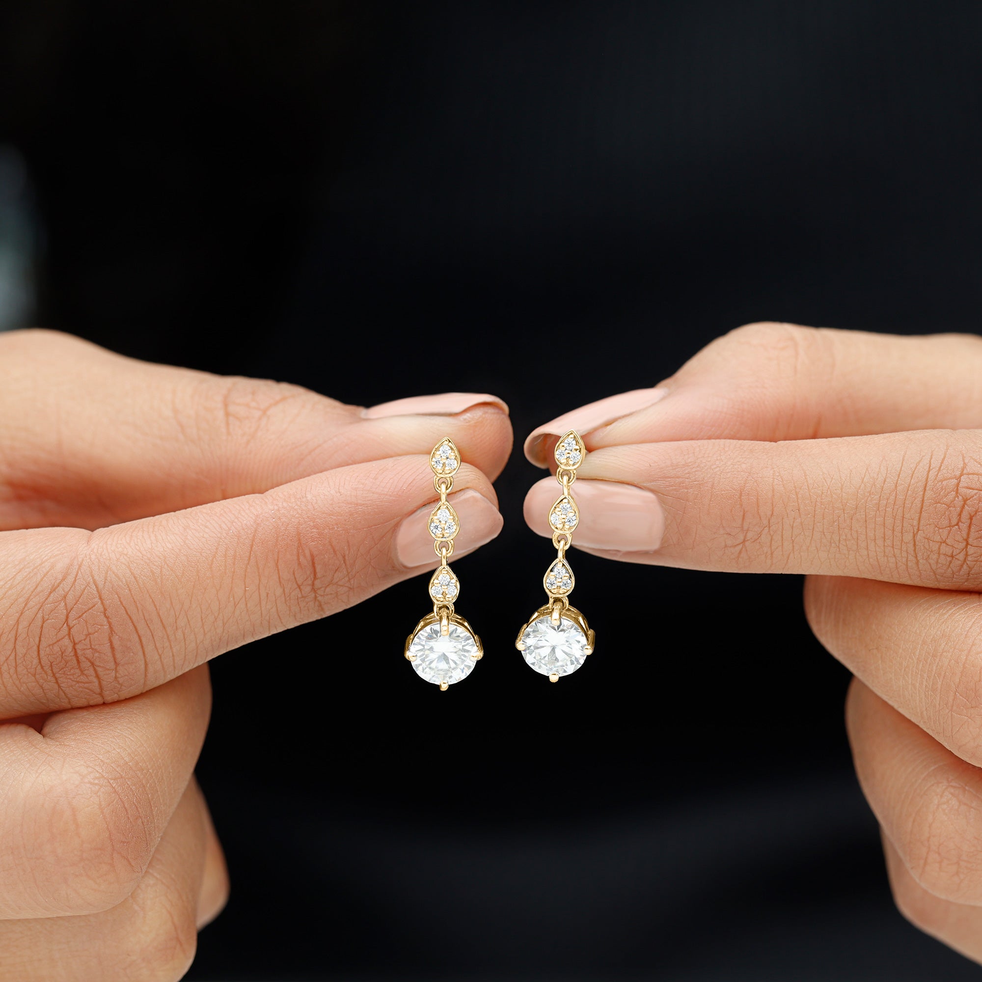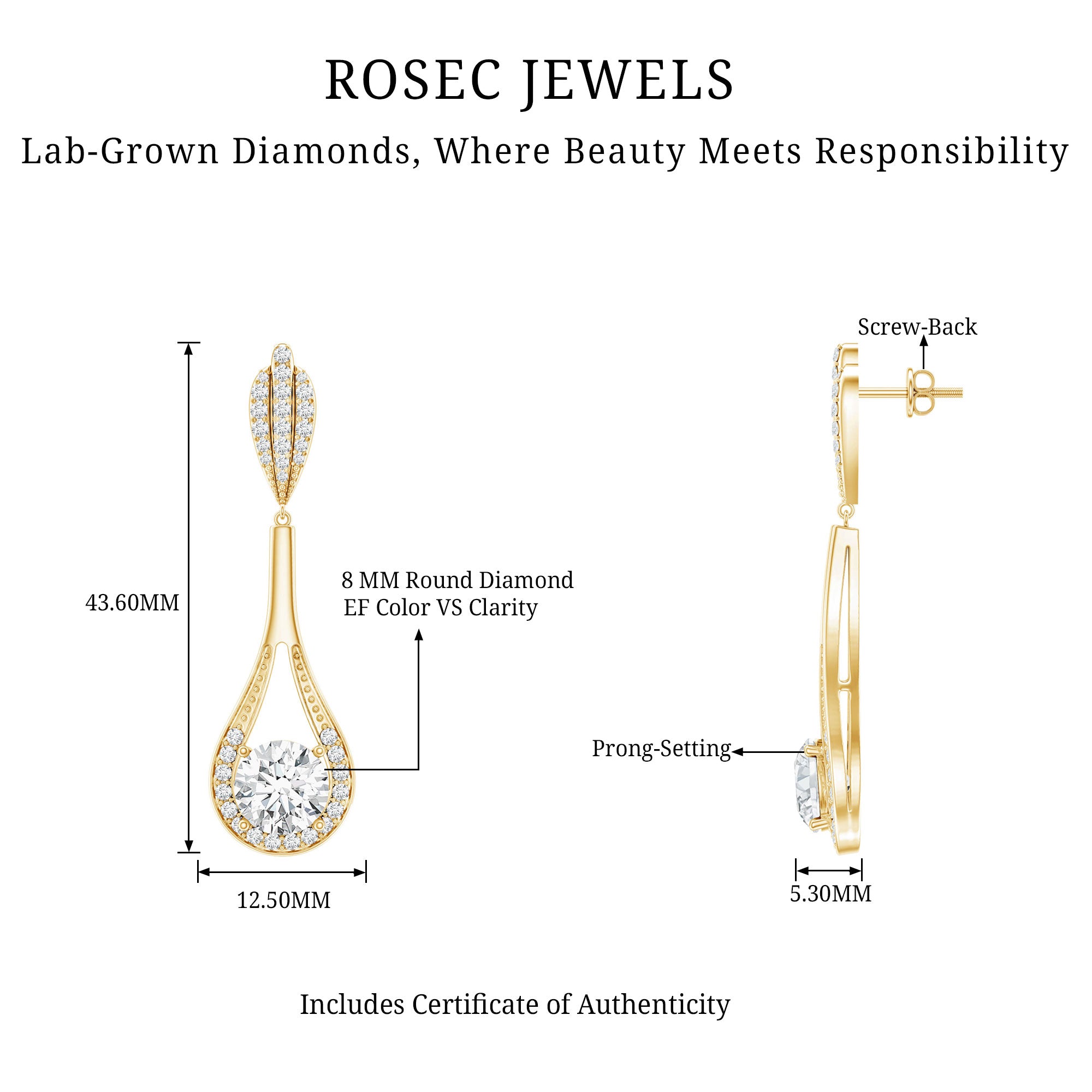 Lab grown diamond dangle earrings differentiate from drop earrings in their length and level of movement. Dangle earrings hang lower than drop earrings and swing more with every move.