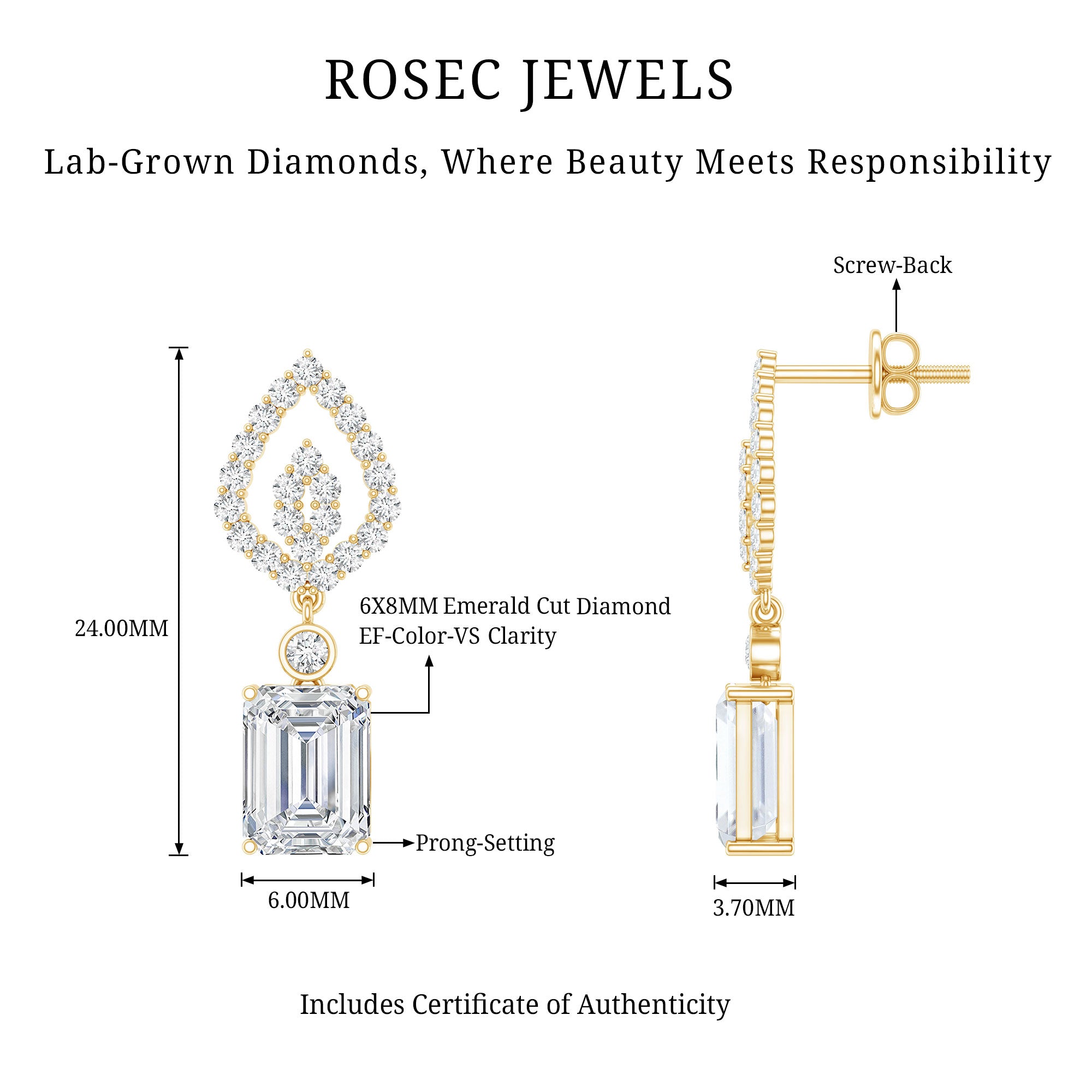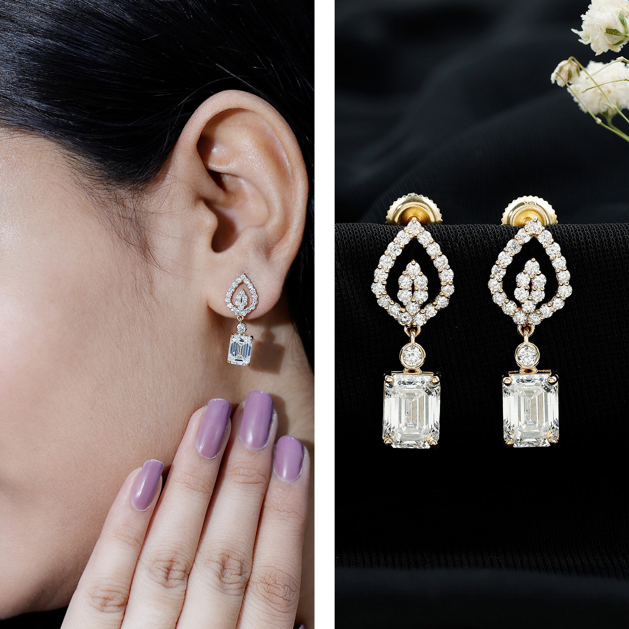 Price & Easy Availability: Lab grown diamond drop earrings price is another big reason for choosing them. Easily available and ethically made, these luxurious earrings come without that heavy price tag.