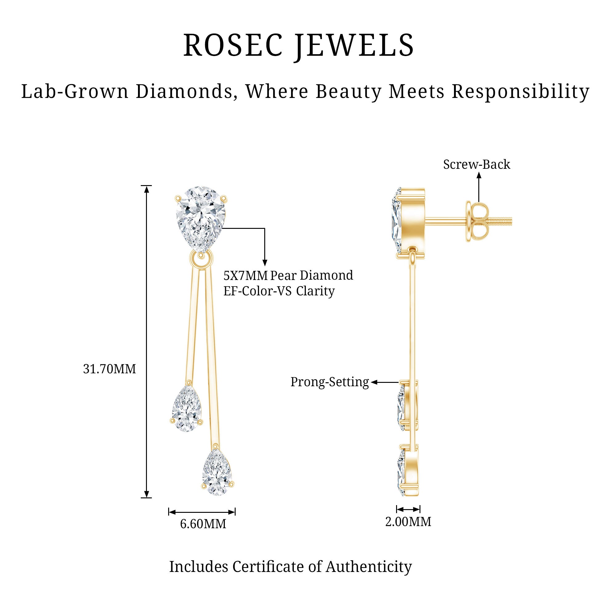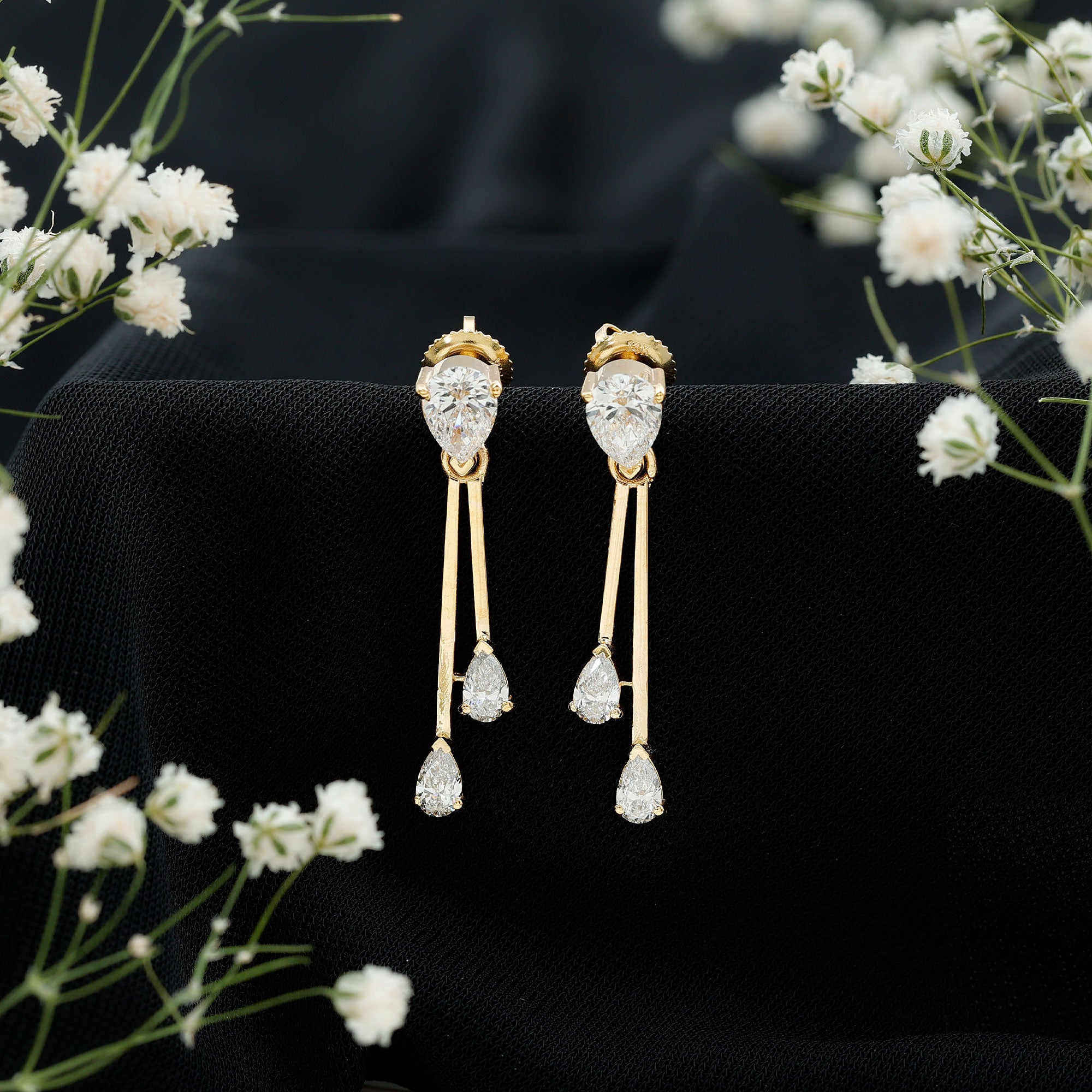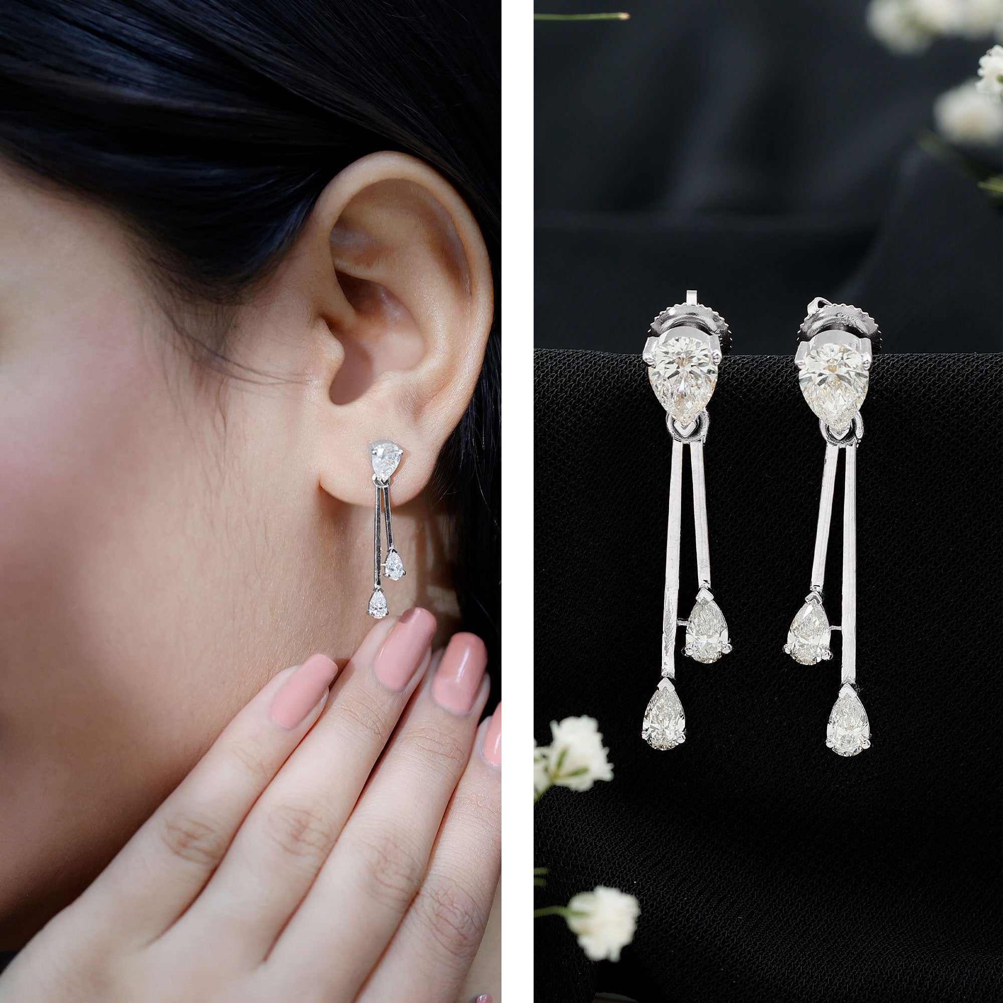 Sourcing and Origin: Gemstone in our earrings is created in labs under strict supervision. So if you are looking for stylish earrings with a responsible backstory, our lab created diamond drop earrings are a perfect pick.