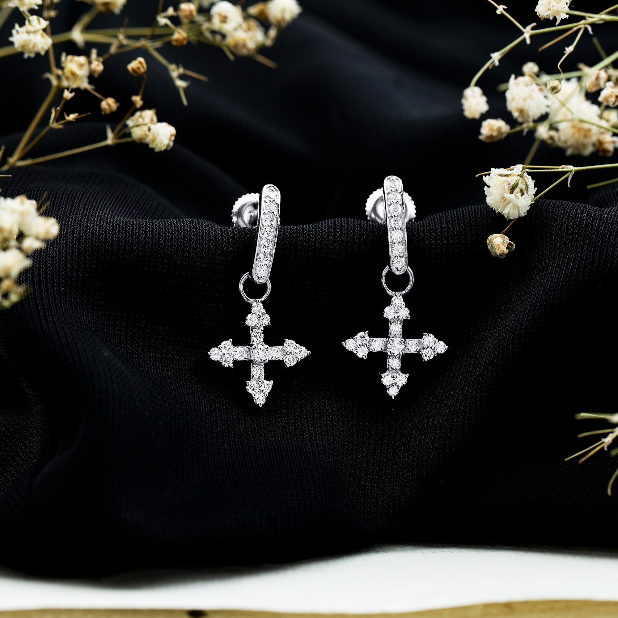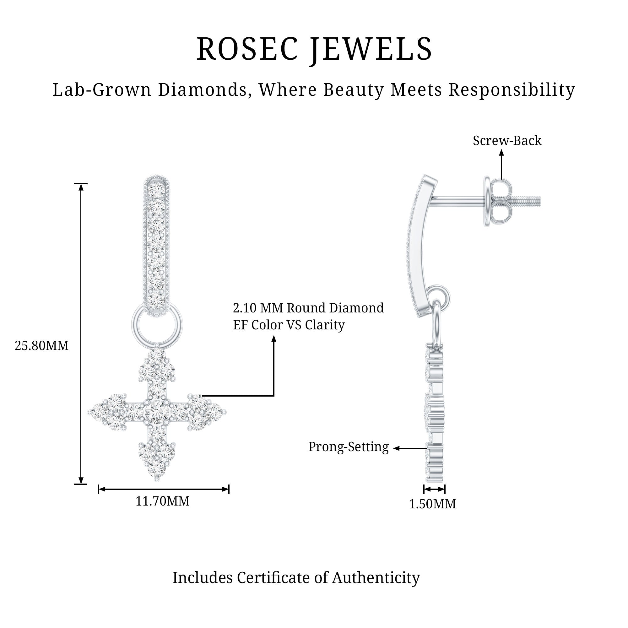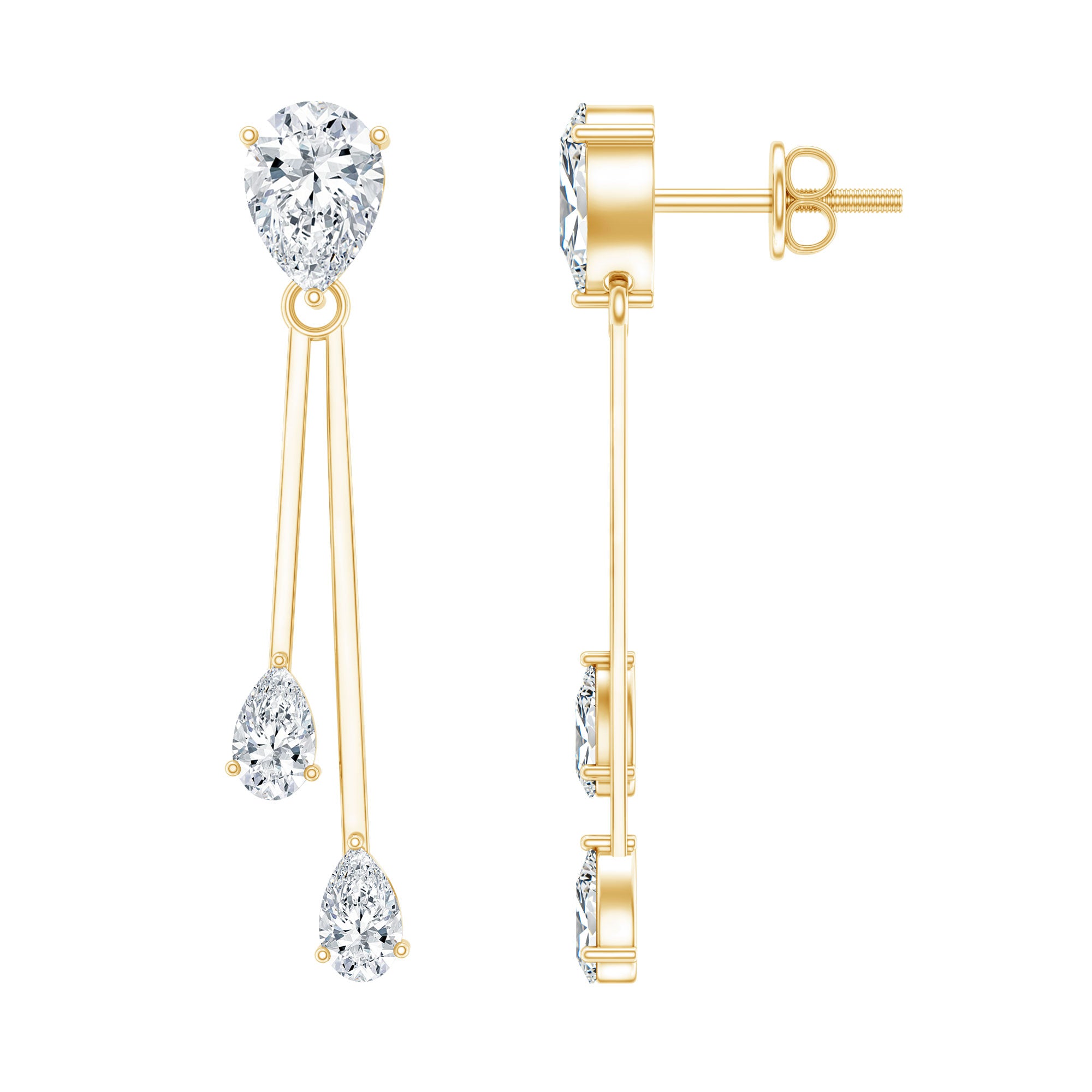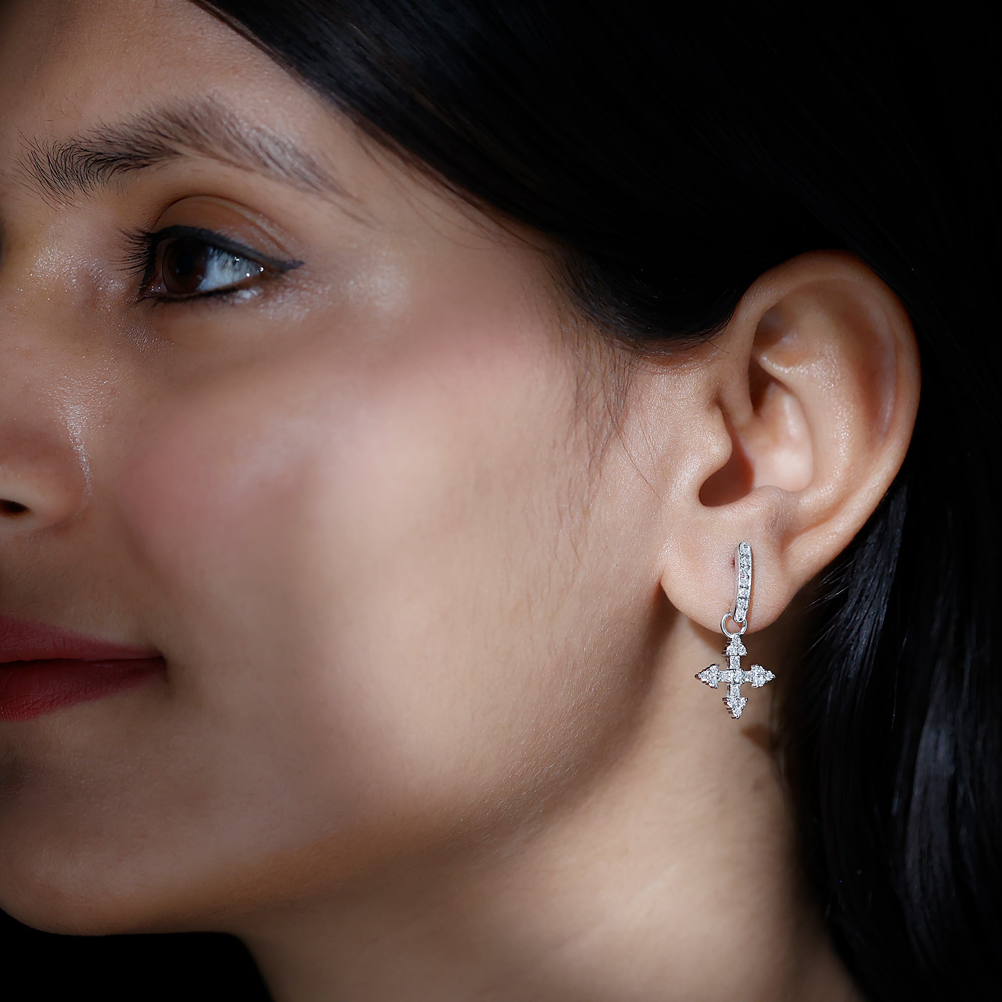 Drop earrings usually hang under an inch to a few inches in length, below the earlobe. The shorter lab grown diamond drops are usually preferred for casual occasions, while longer styles make a striking statement for formal events.