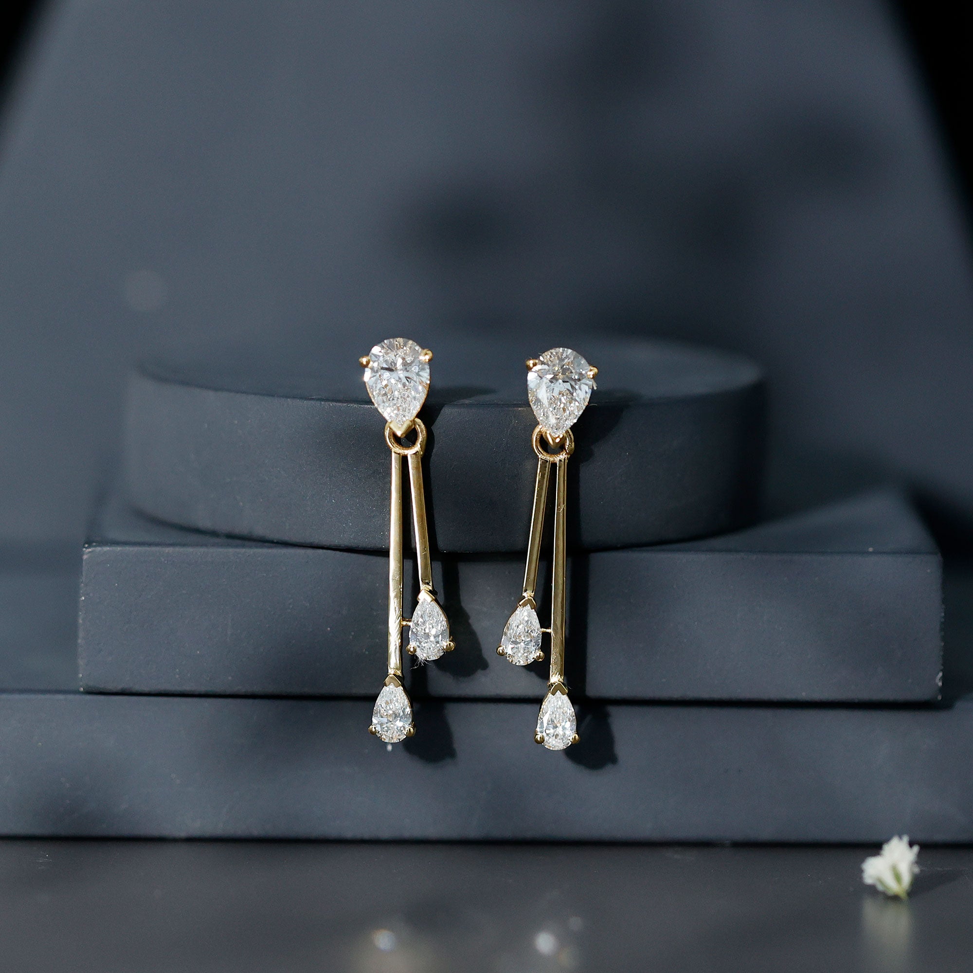 A lab grown diamond hanging as a little drop of jewelry, just below the earlobes is drop earring. These elegant lab grown diamond drop earrings capture and reflect light with every movement and add a touch of luxury to any occasion.