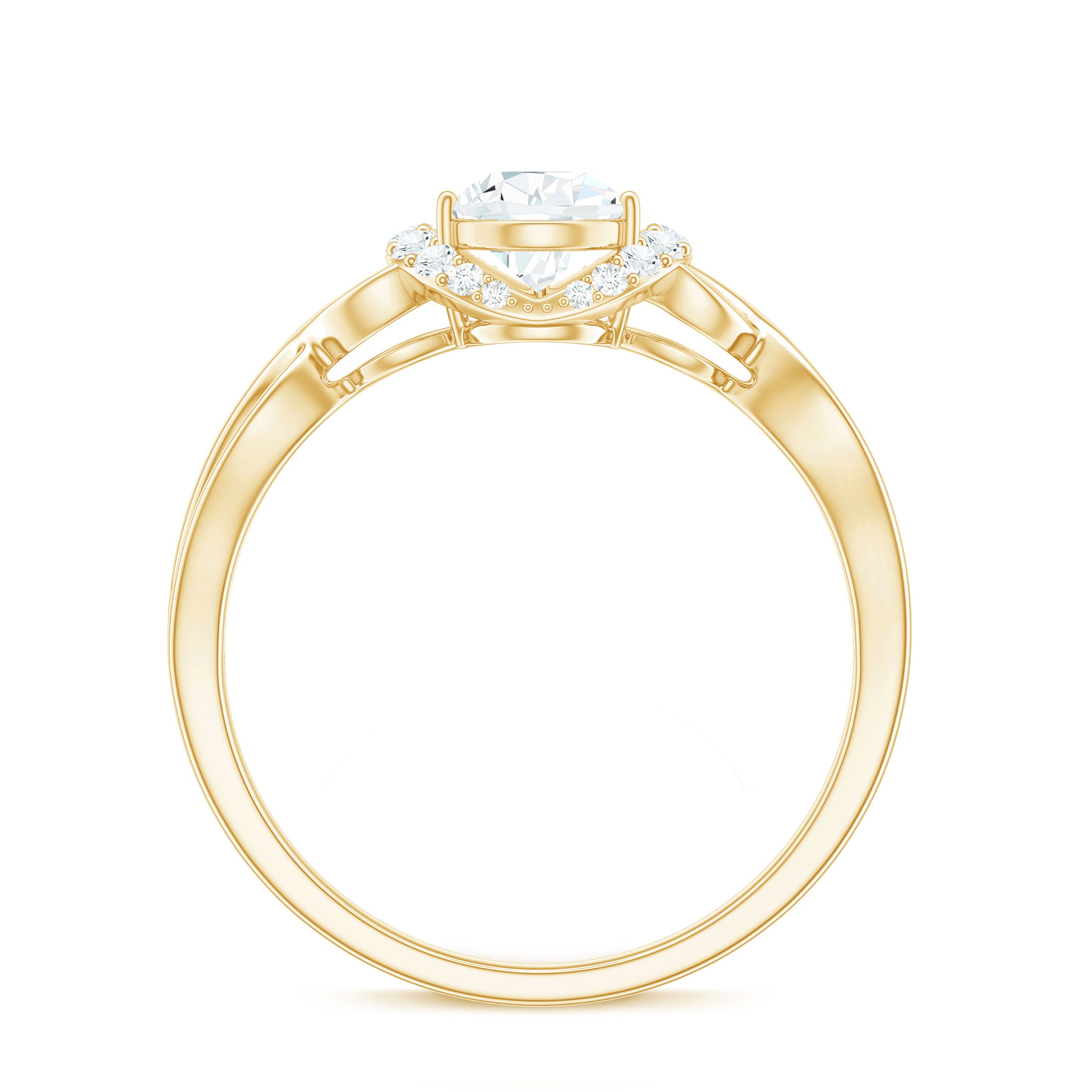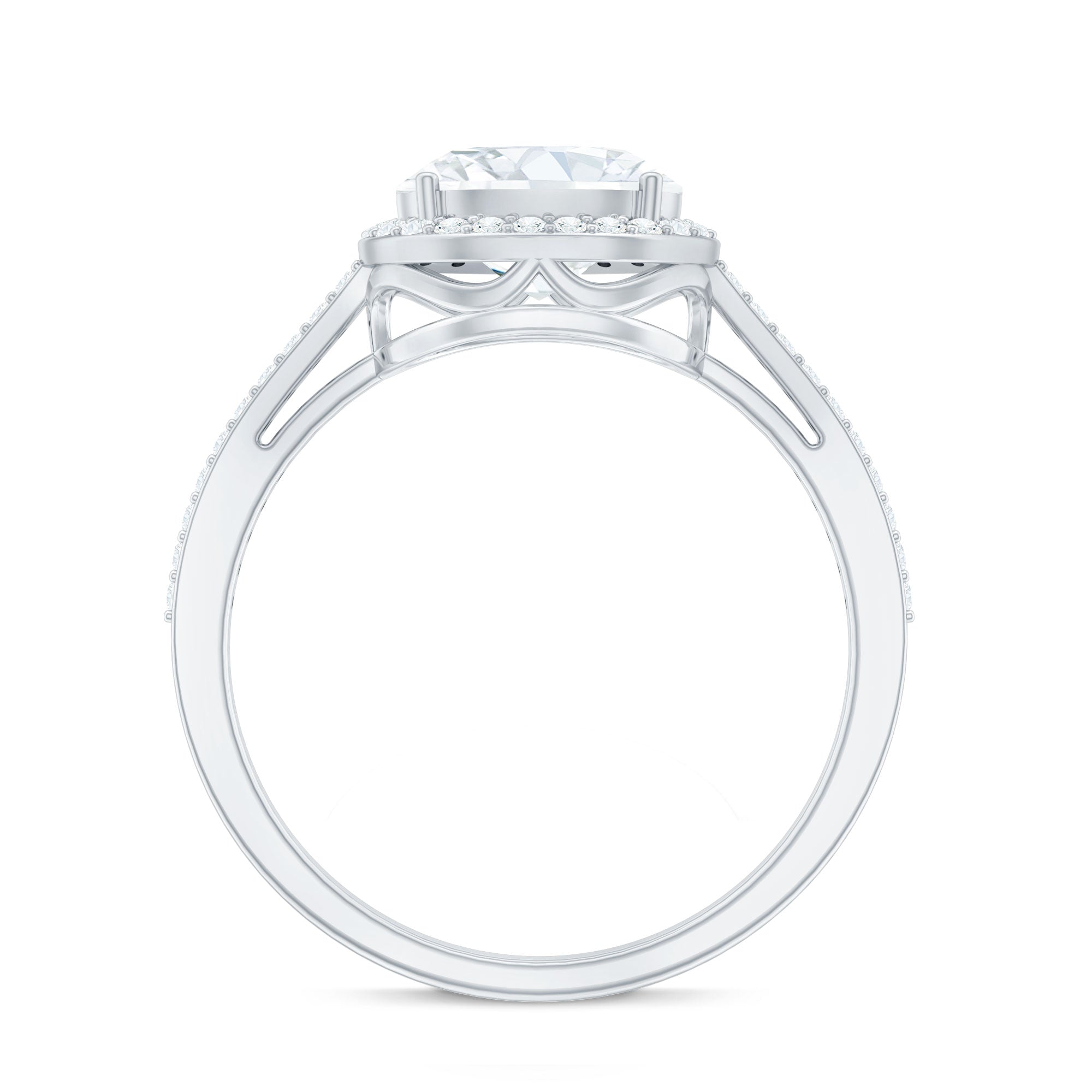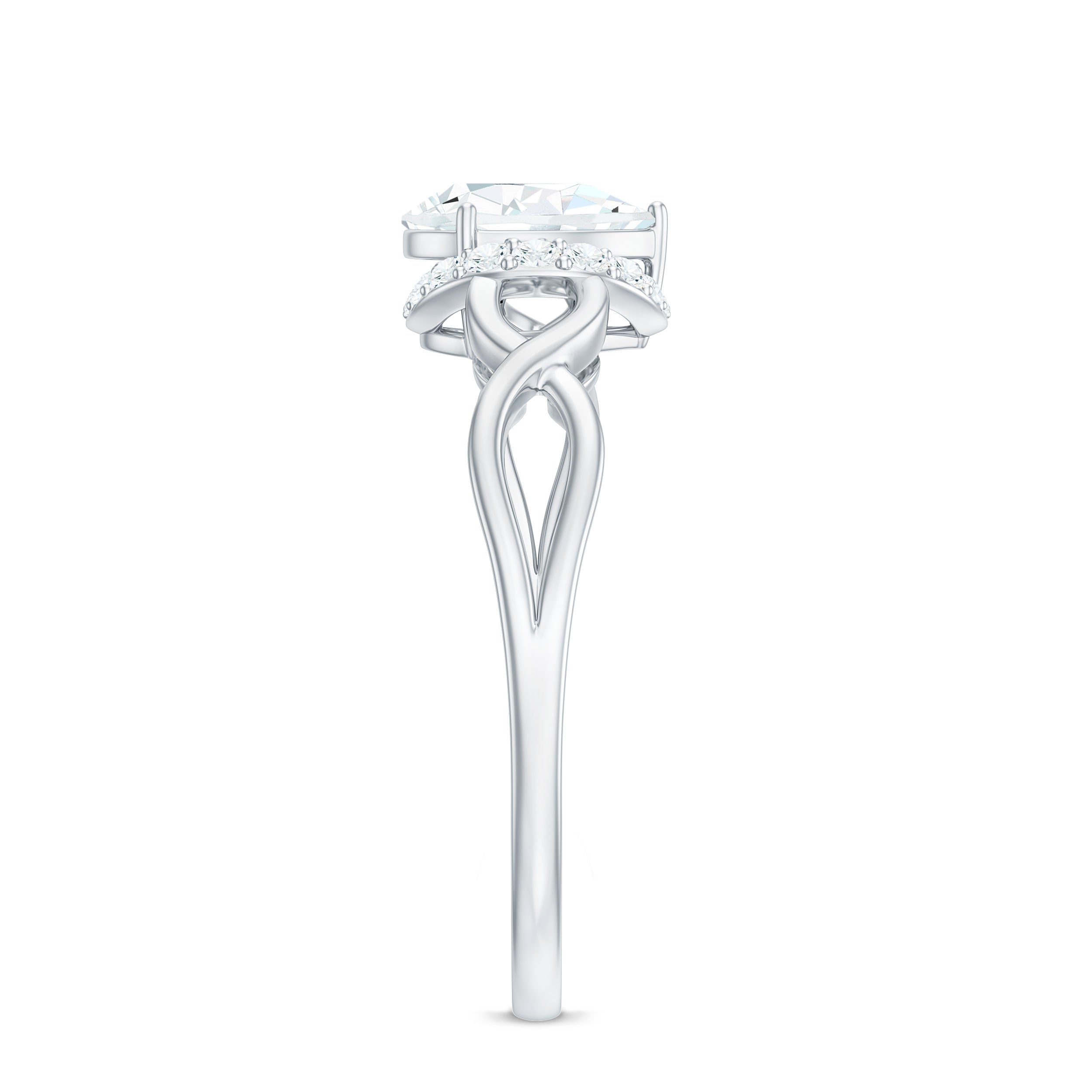 Hidden Halo Setting: A fancy lab-grown diamond halo beneath the center stone adds a sparkling view from the side, besides maintaining a clear view on the top.