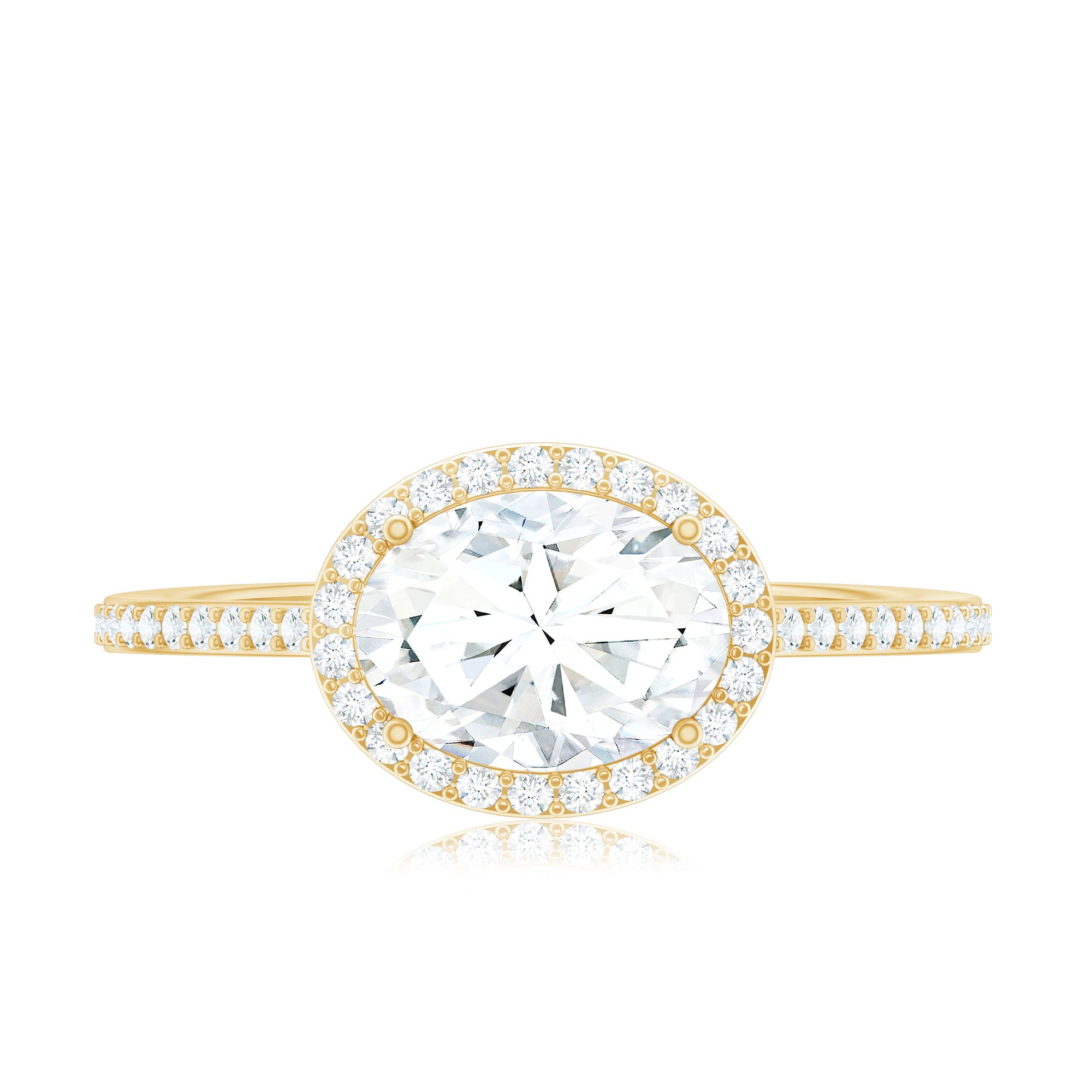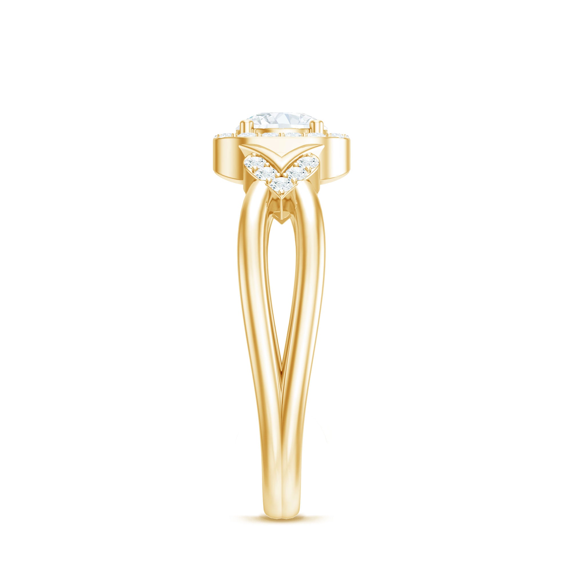 Single Halo Setting: Single lab created halo engagement rings feature a single row of diamonds around the center stone to enhance the spark. This is the most classic design.