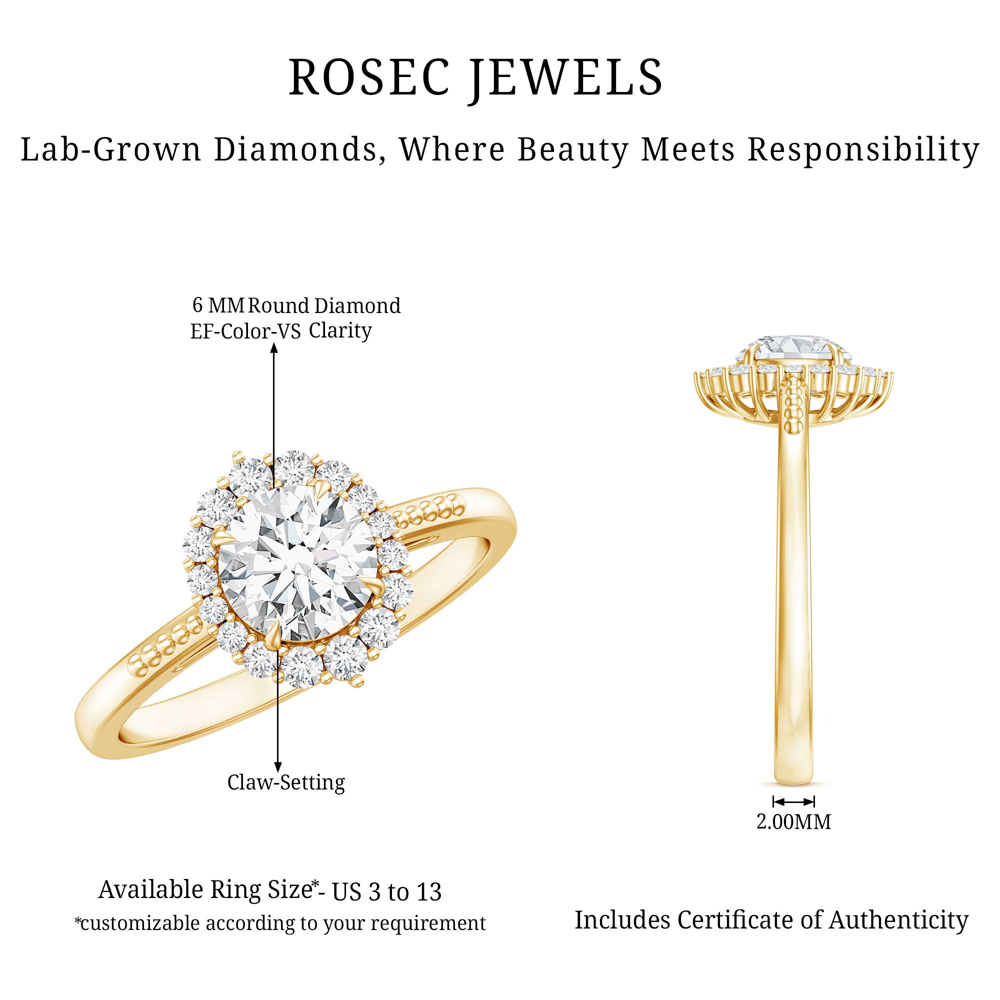 In the USA, shoppers use both lab grown diamond and lab created diamond to describe the same type of diamond. This page is optimized for halo rings specifically. For a broader browse across all categories using “lab created” wording, visit Lab Created Diamond Rings.