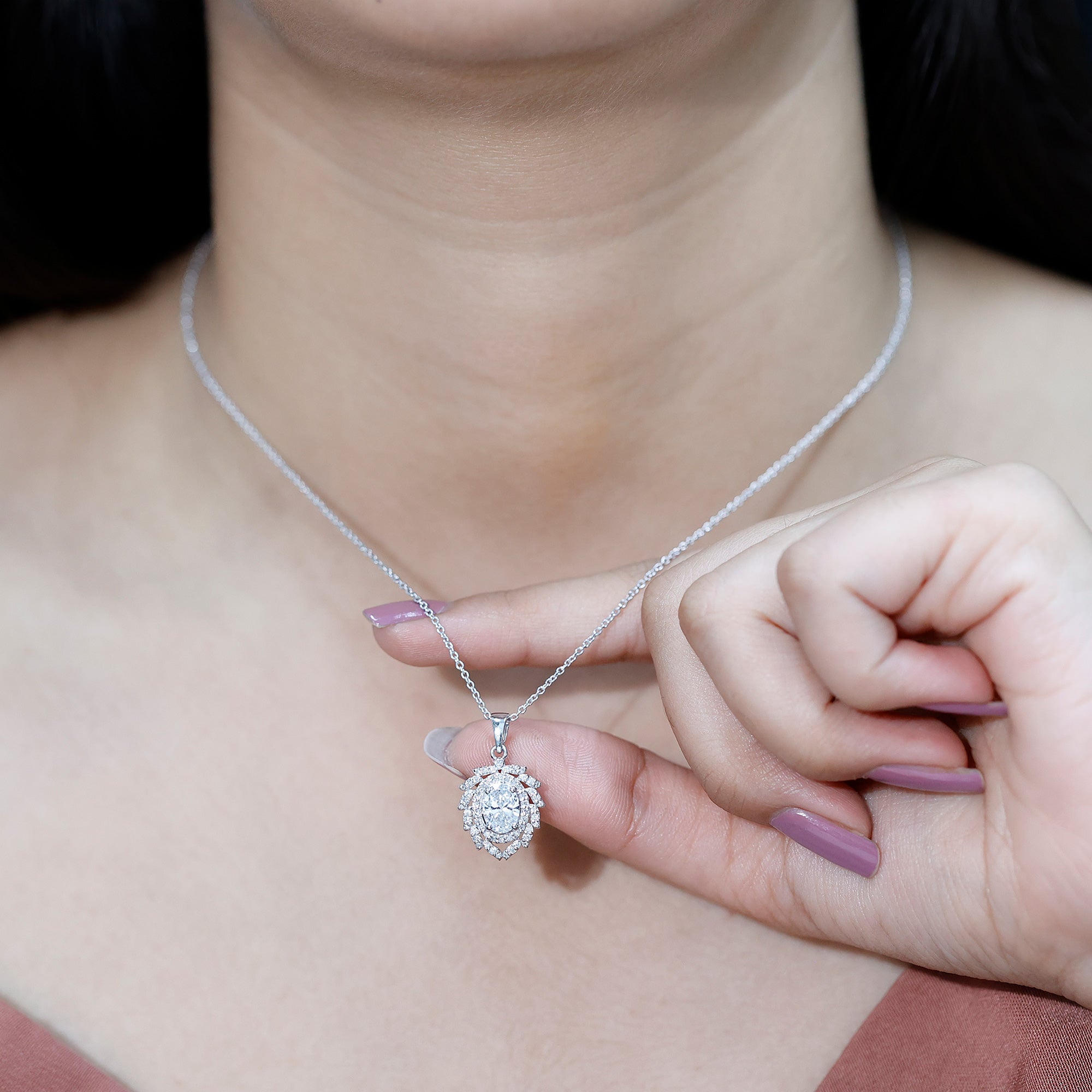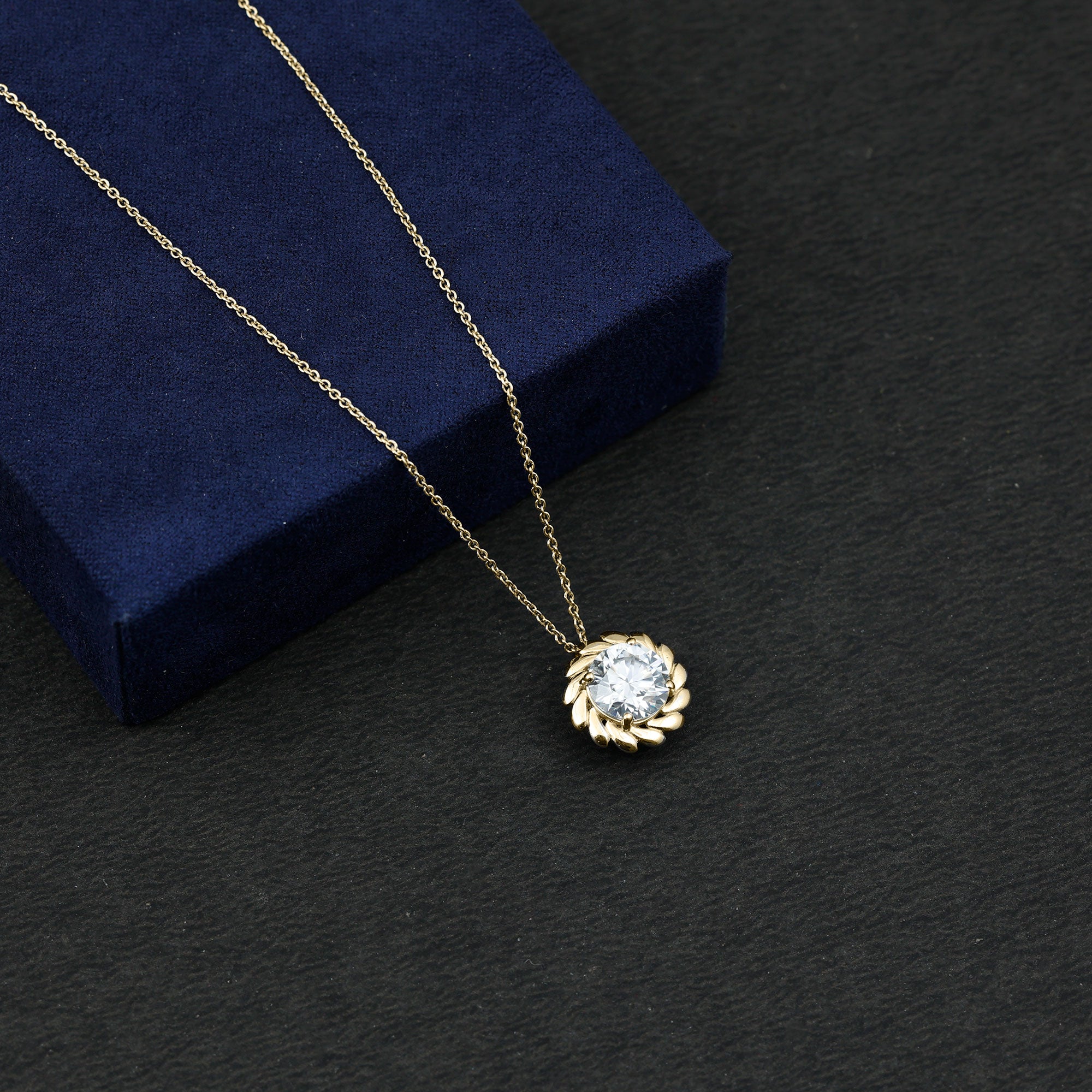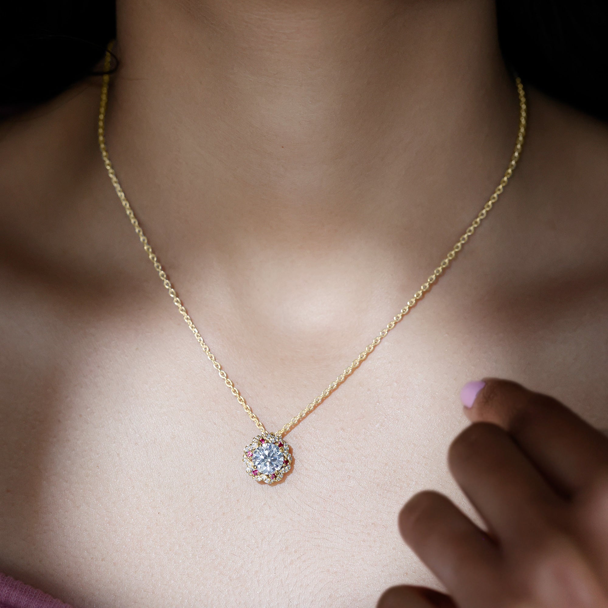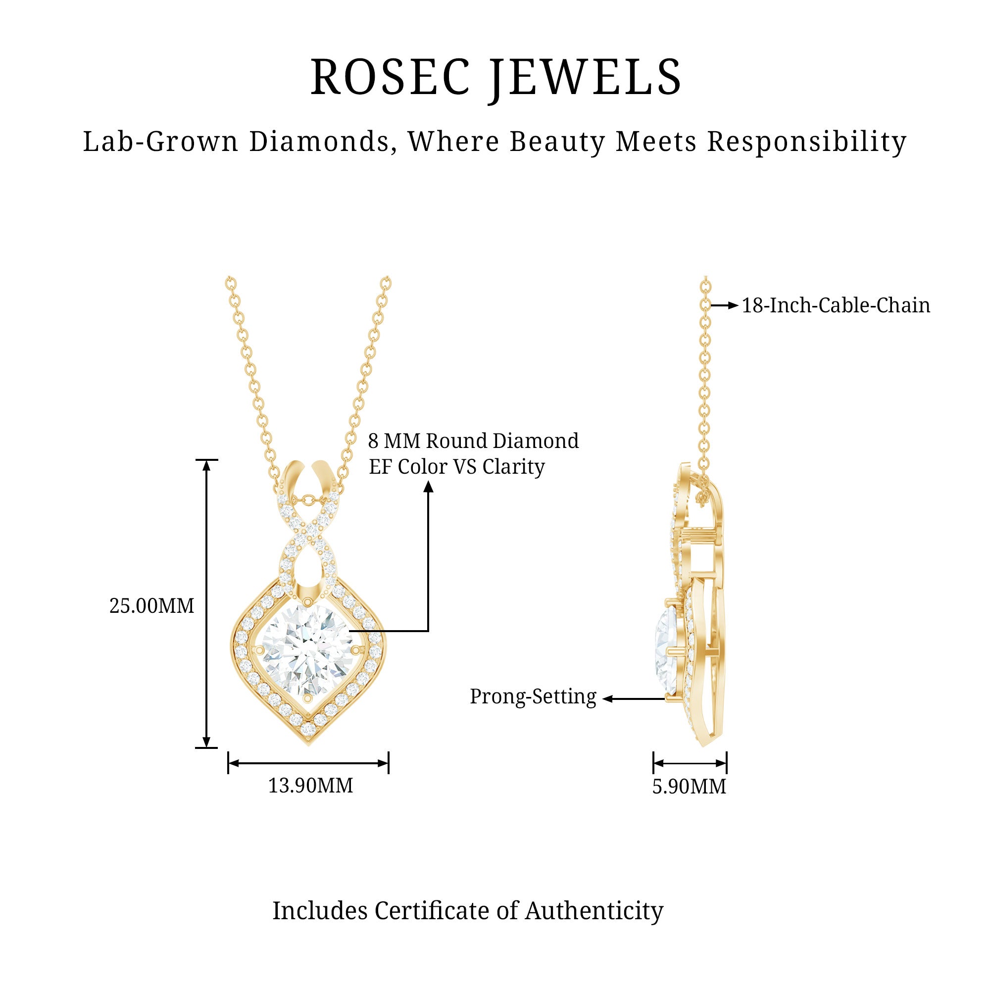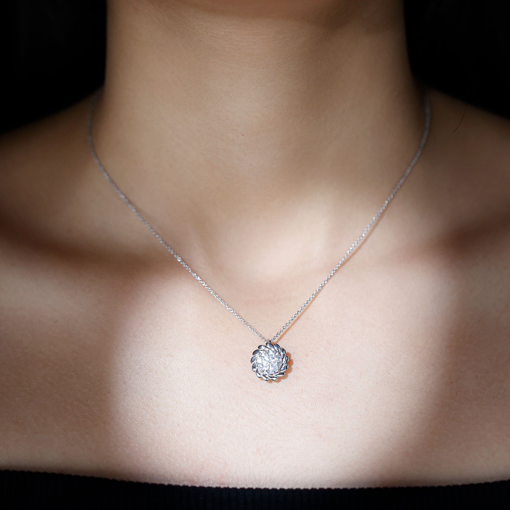 Solitaire: One of the classic styles that features a single lab grown diamond in the center in different shapes. Our lab grown diamond pendant is one of the favorite picks for almost all occasions.