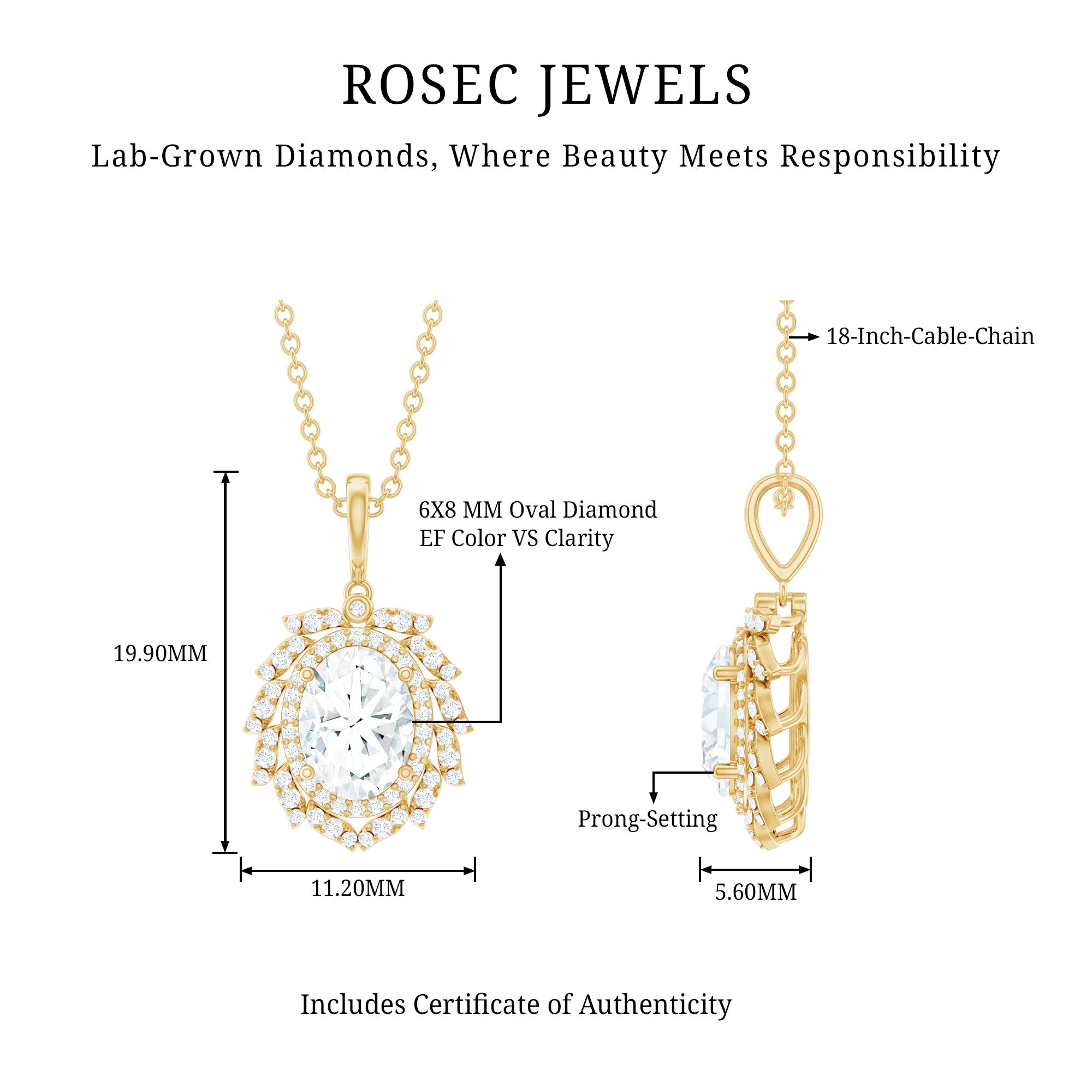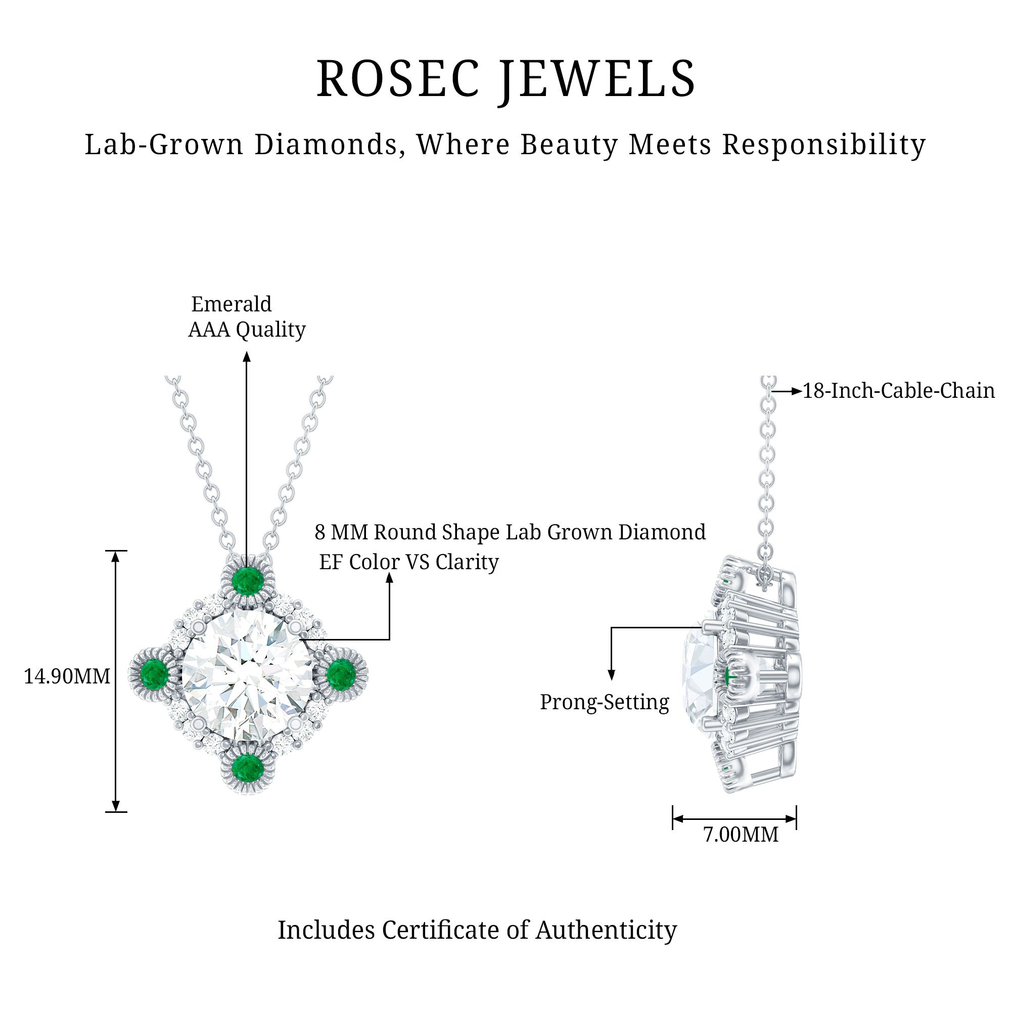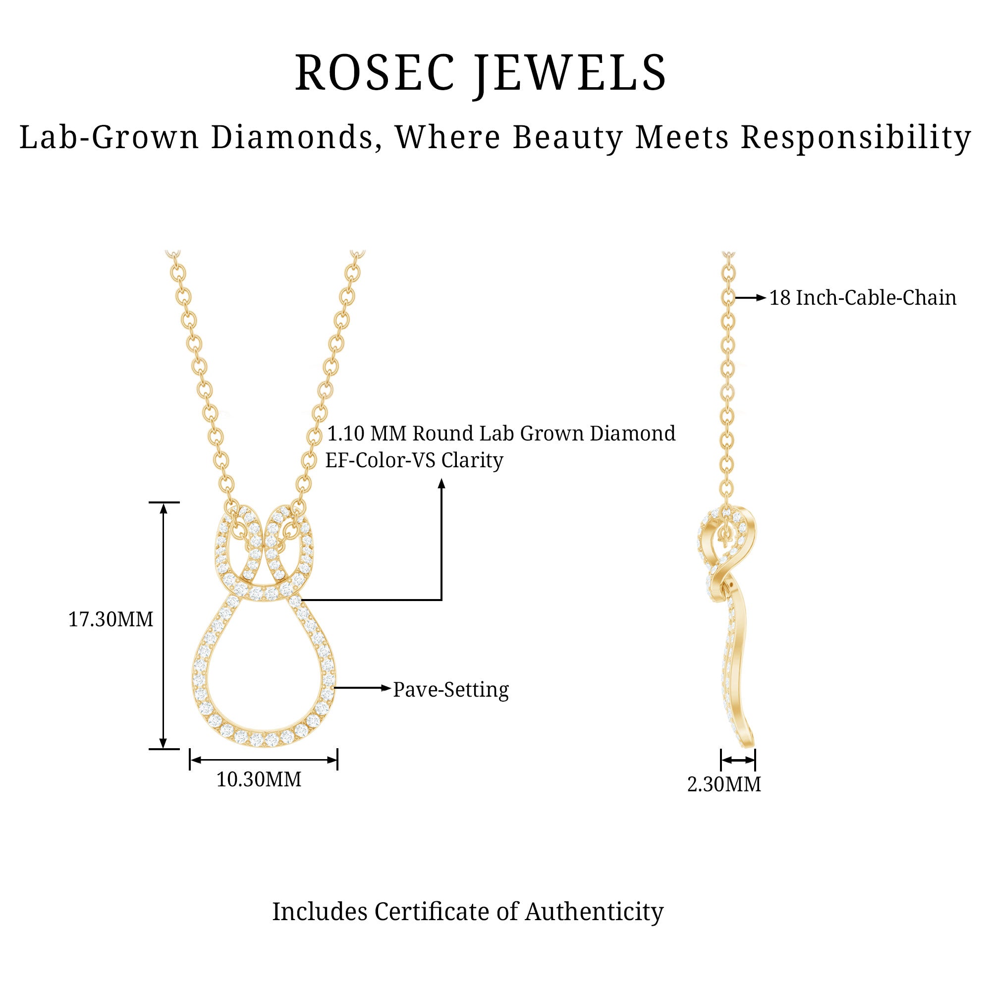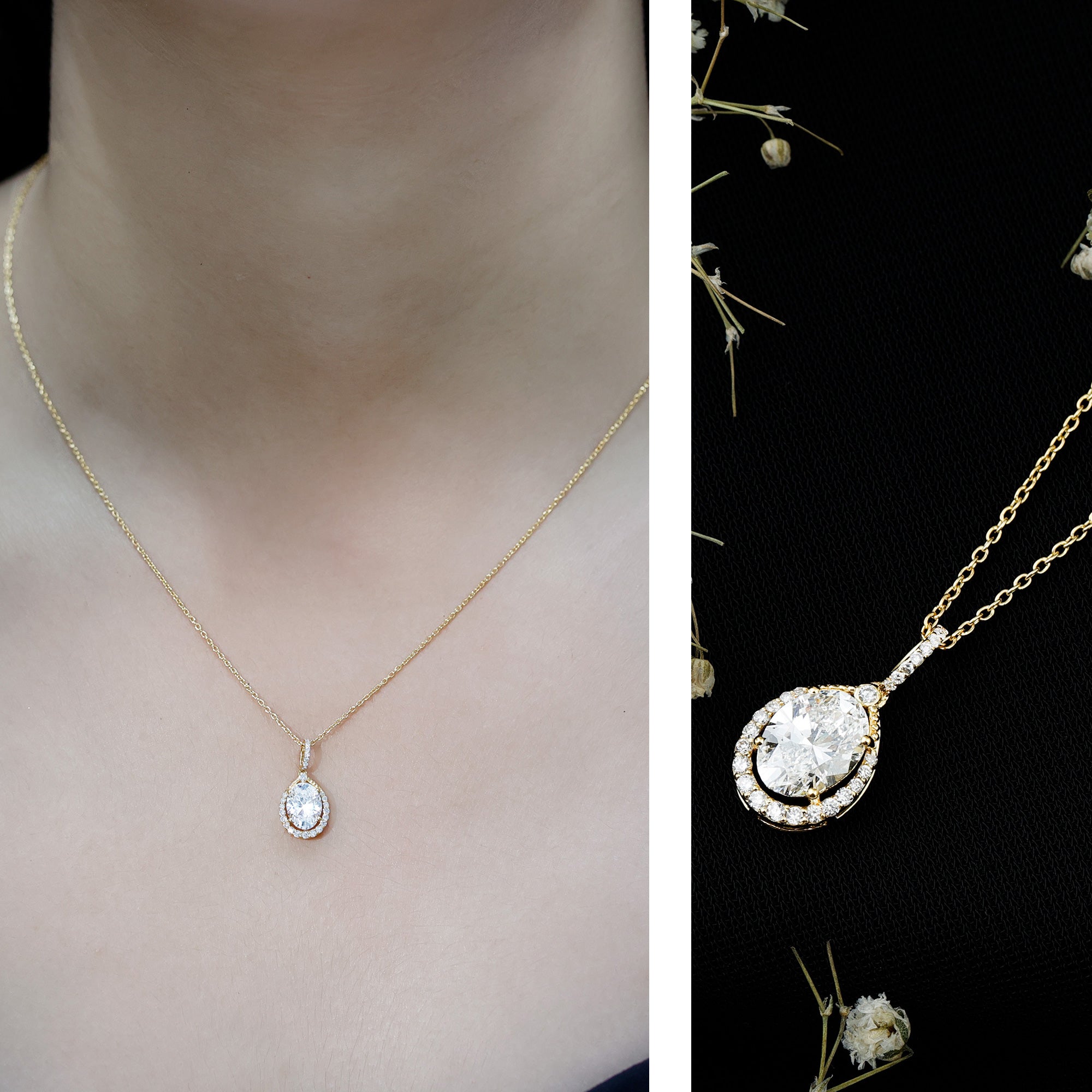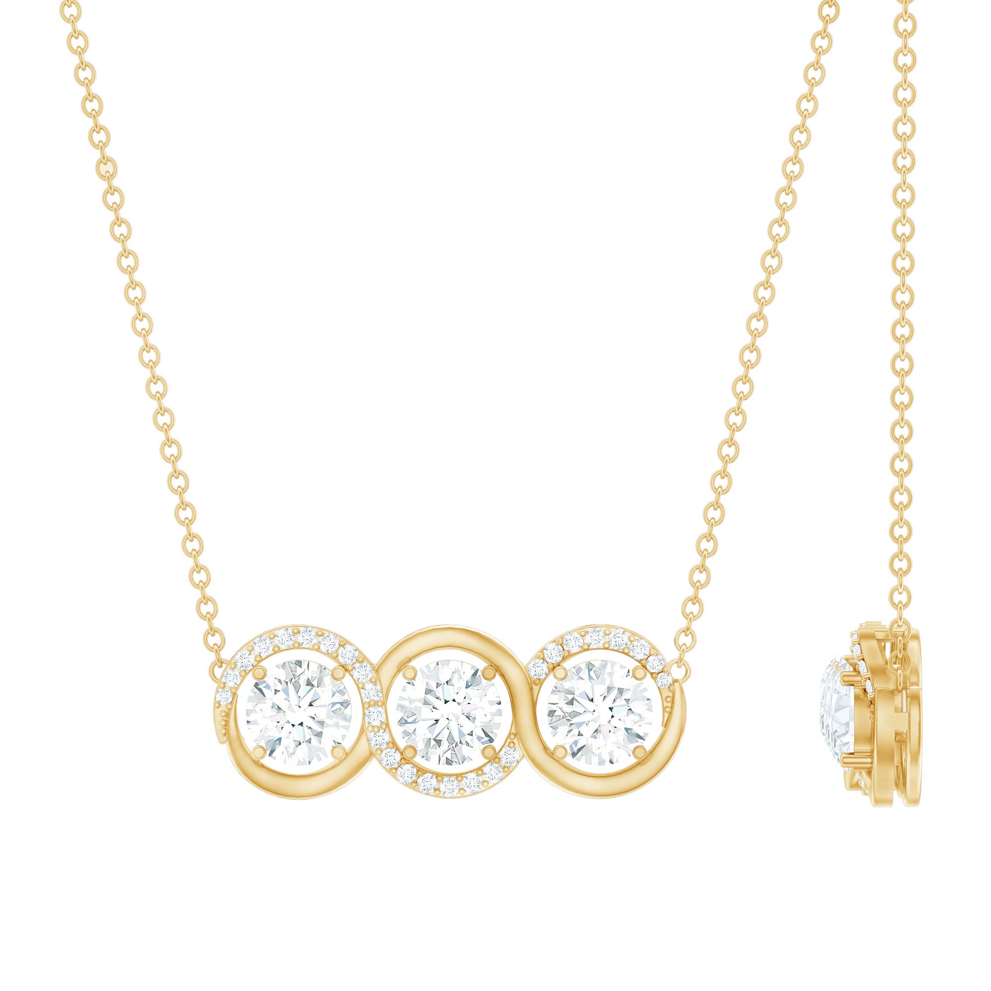 Solitaire: One of the classic styles that features a single lab grown diamond in the center in different shapes. Our lab grown diamond pendant is one of the favorite picks for almost all occasions.