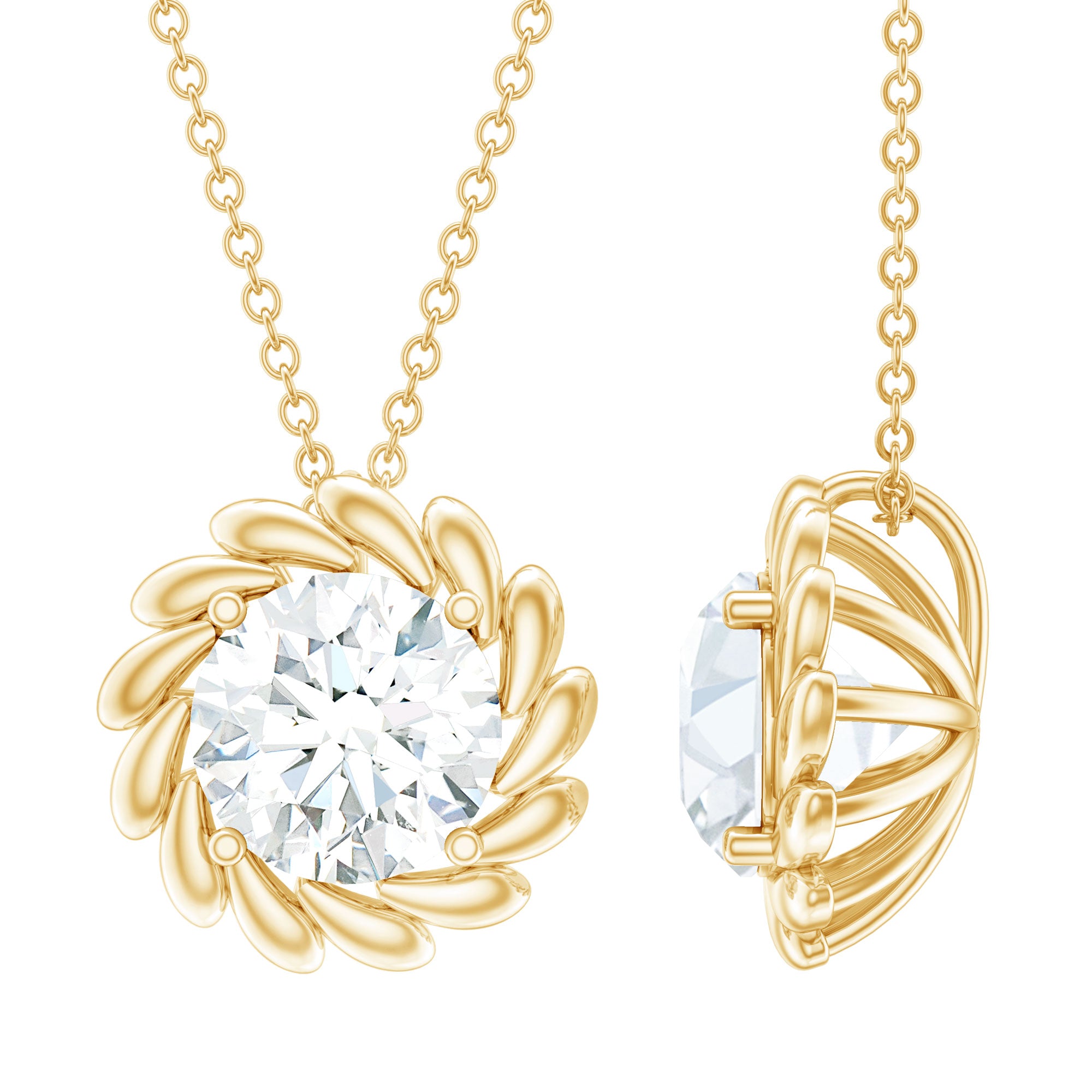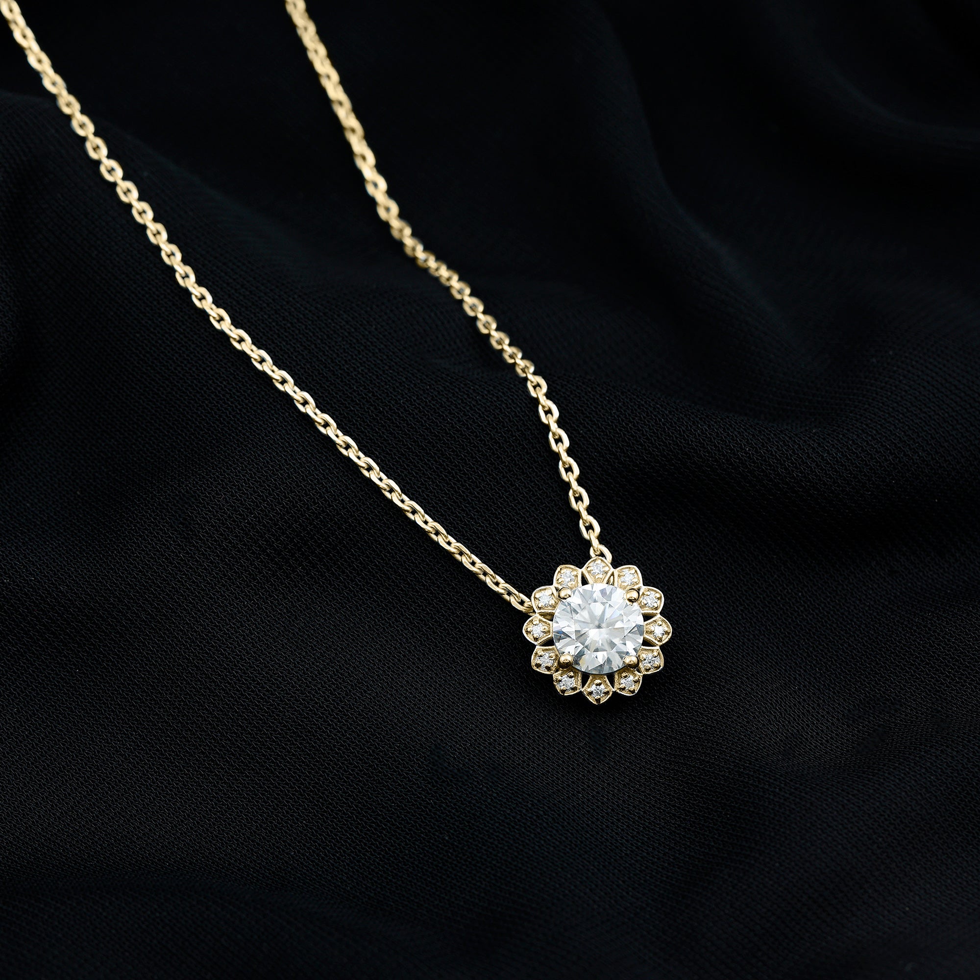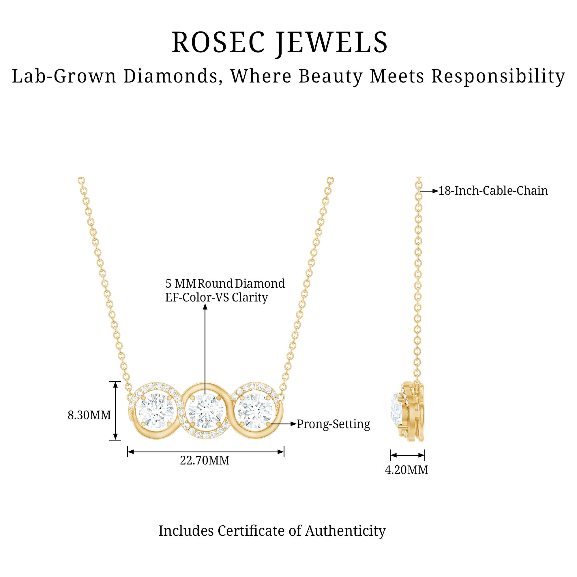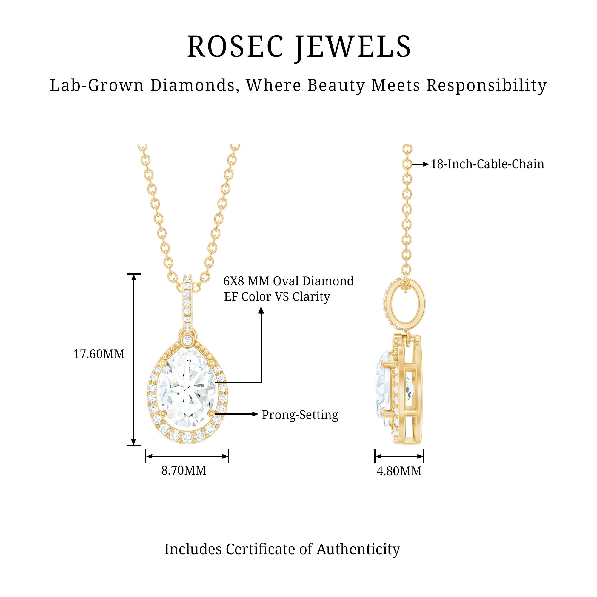 Solitaire: One of the classic styles that features a single lab grown diamond in the center in different shapes. Our lab grown diamond pendant is one of the favorite picks for almost all occasions.