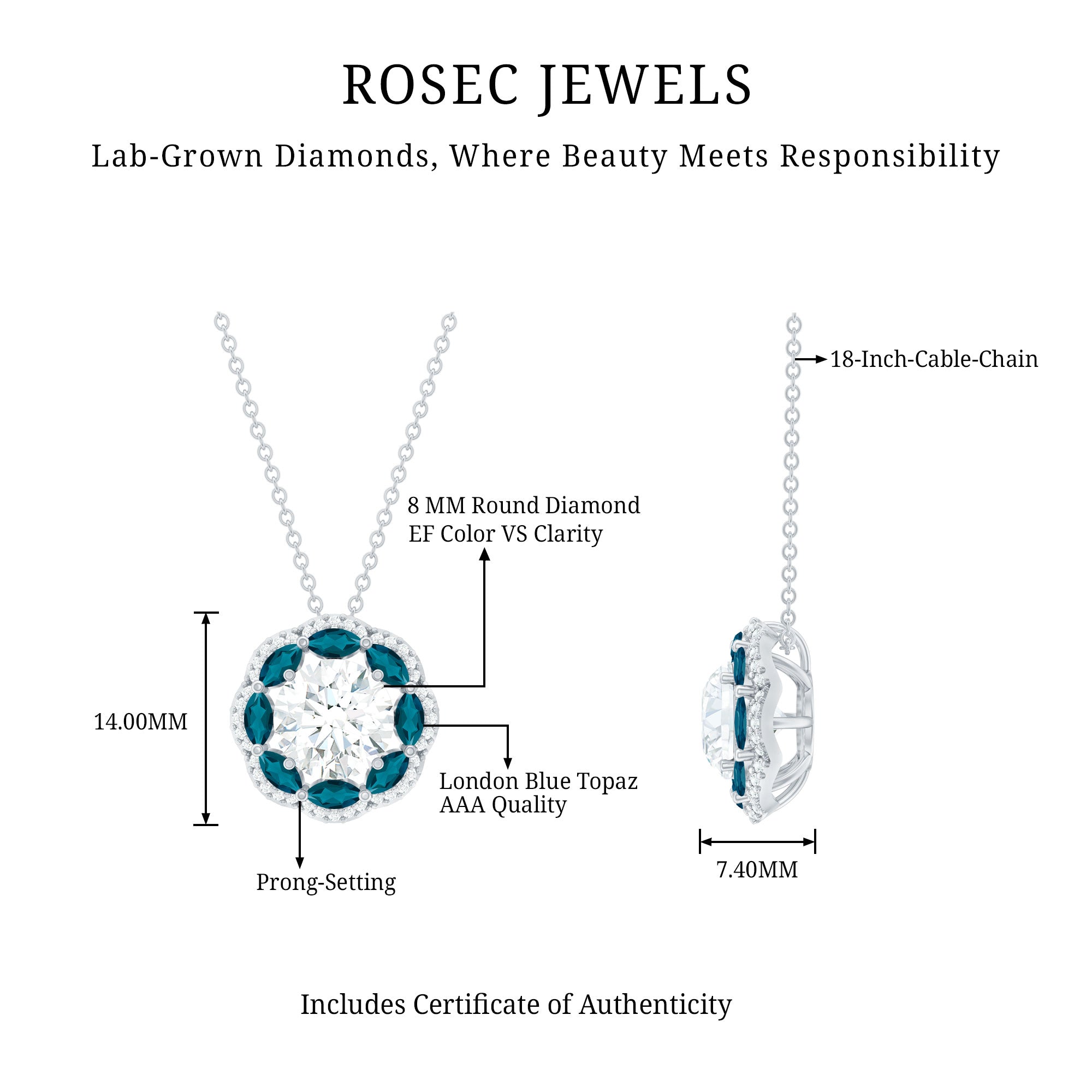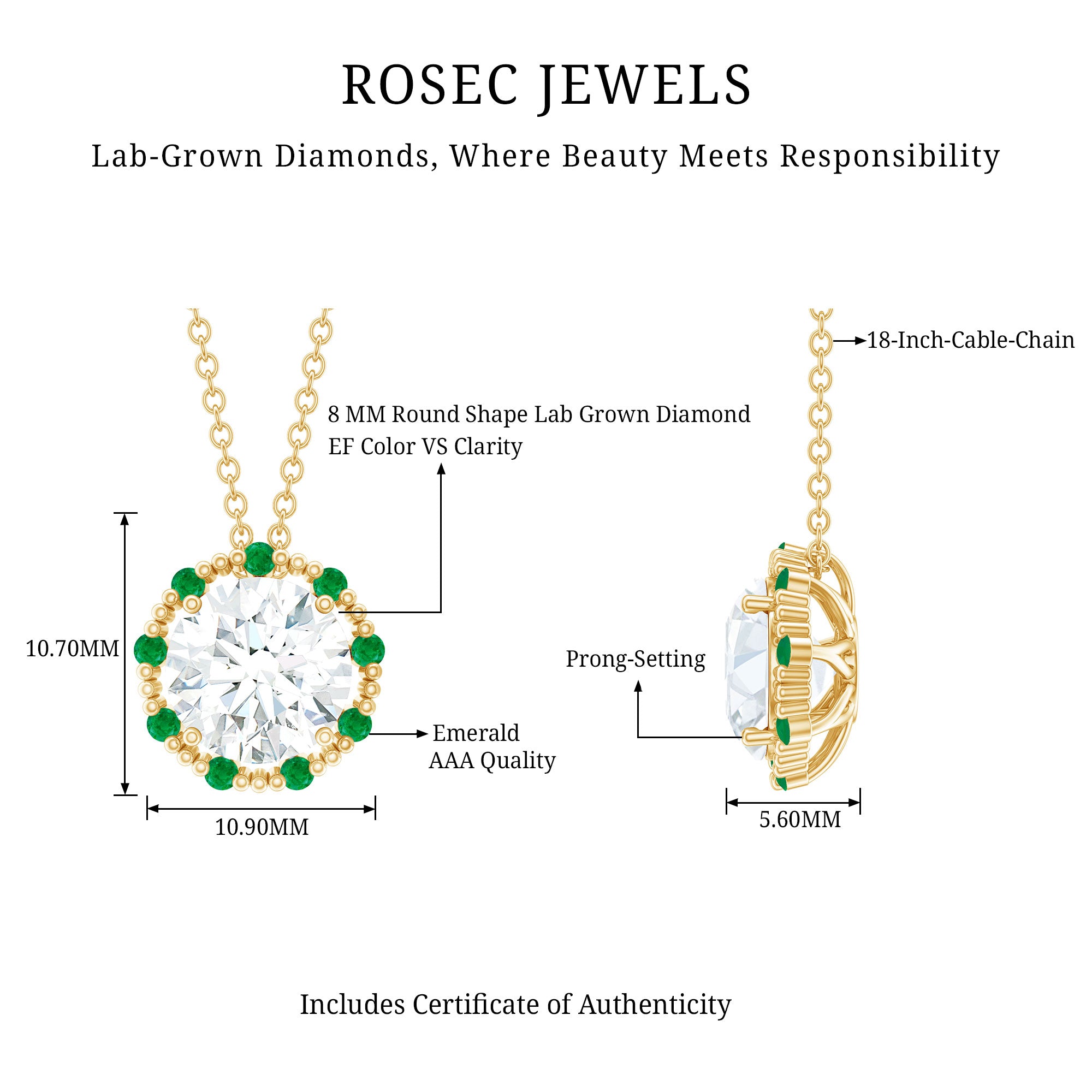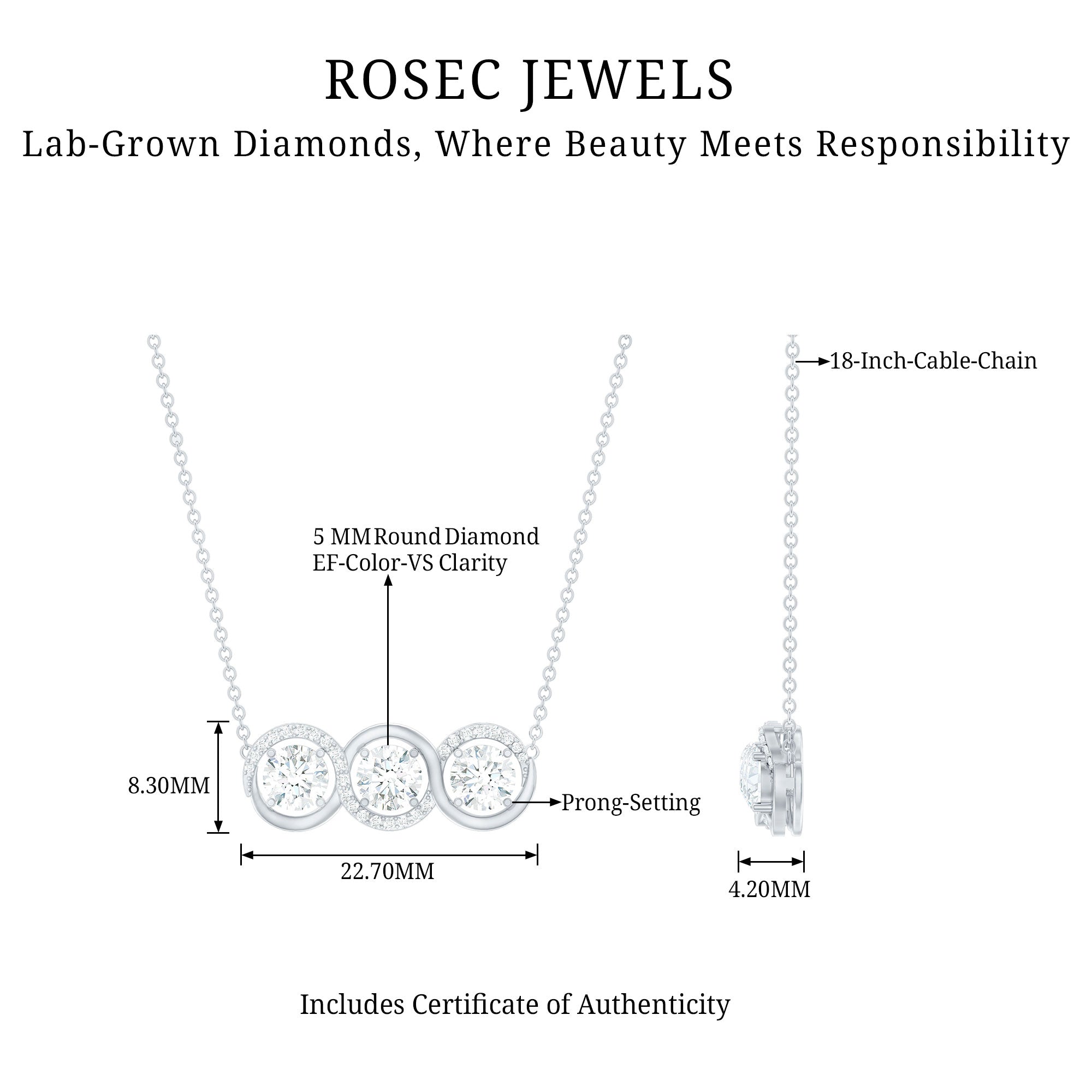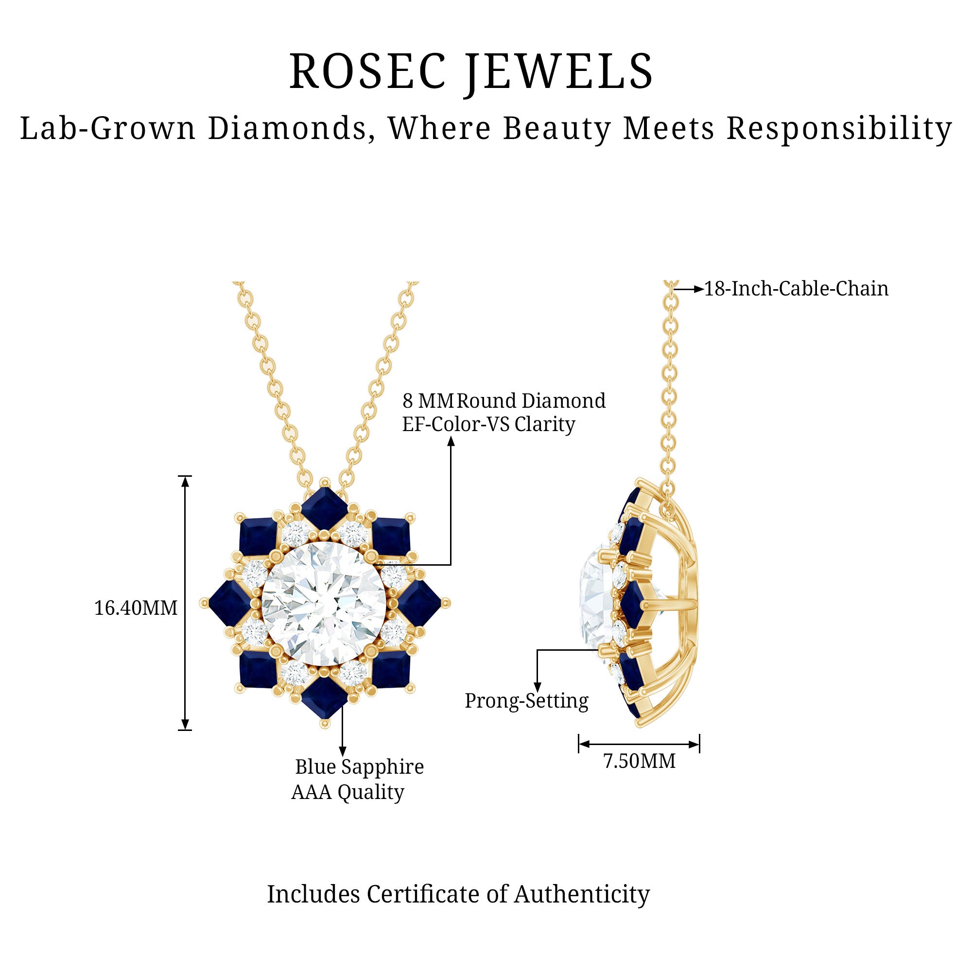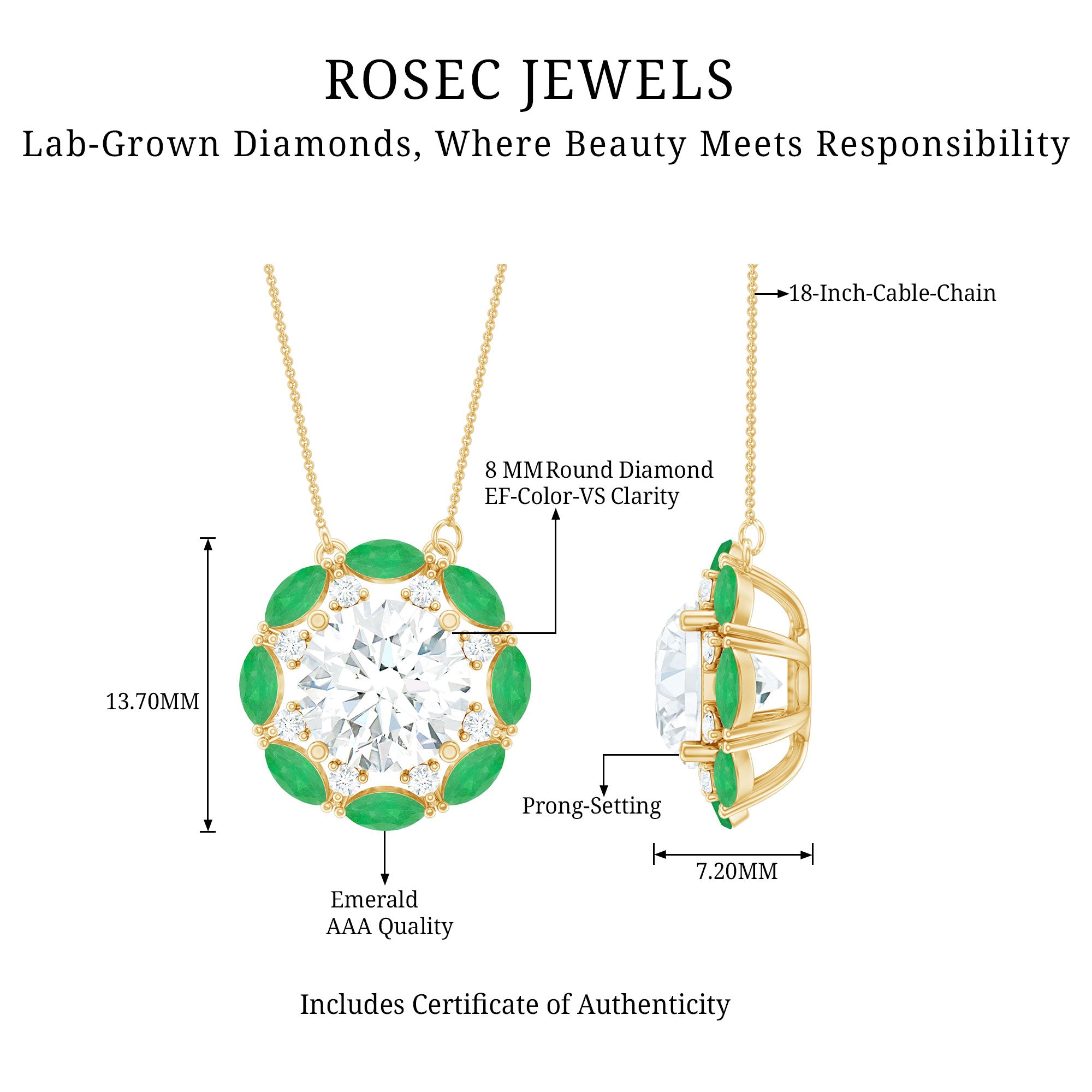 Solitaire: One of the classic styles that features a single lab grown diamond in the center in different shapes. Our lab grown diamond pendant is one of the favorite picks for almost all occasions.