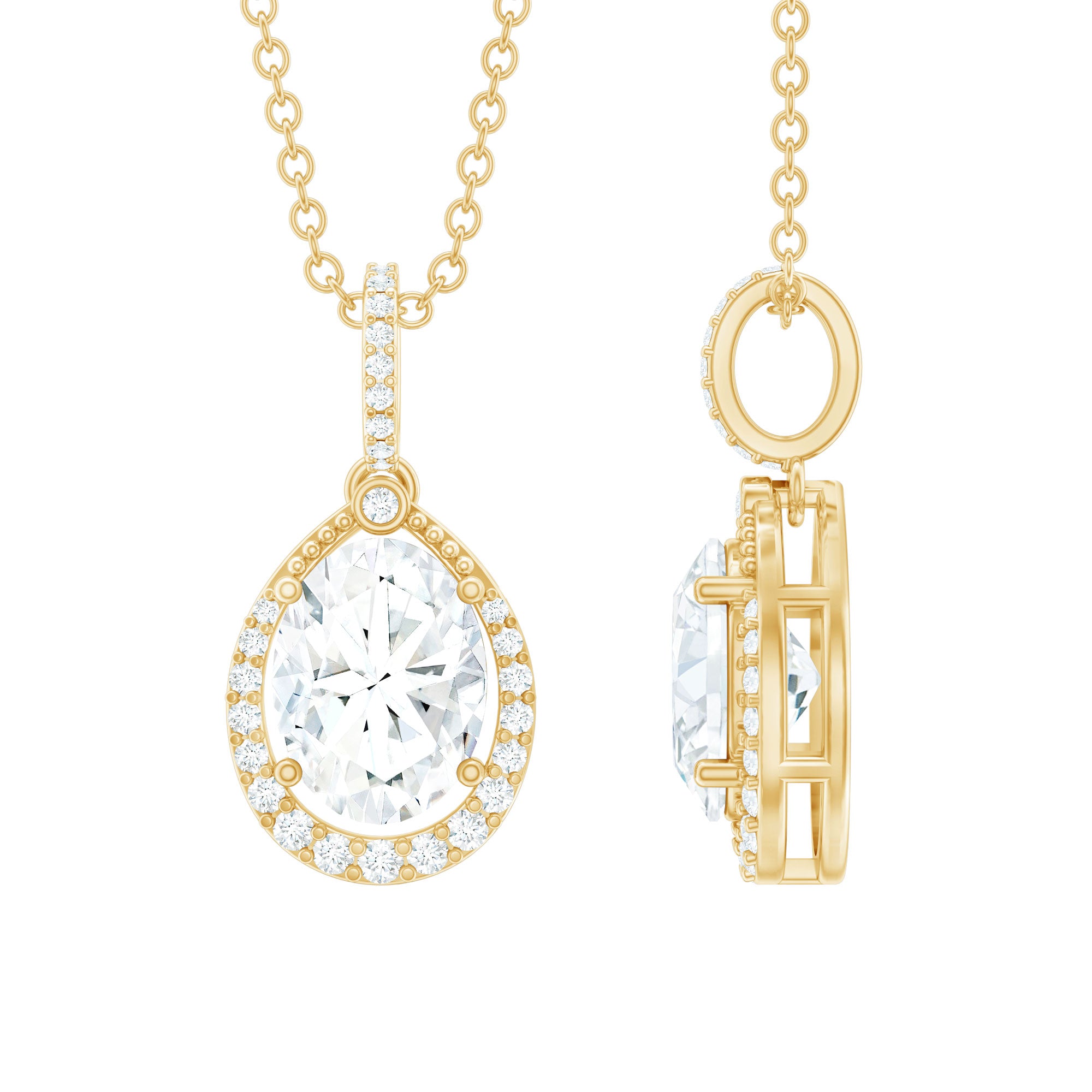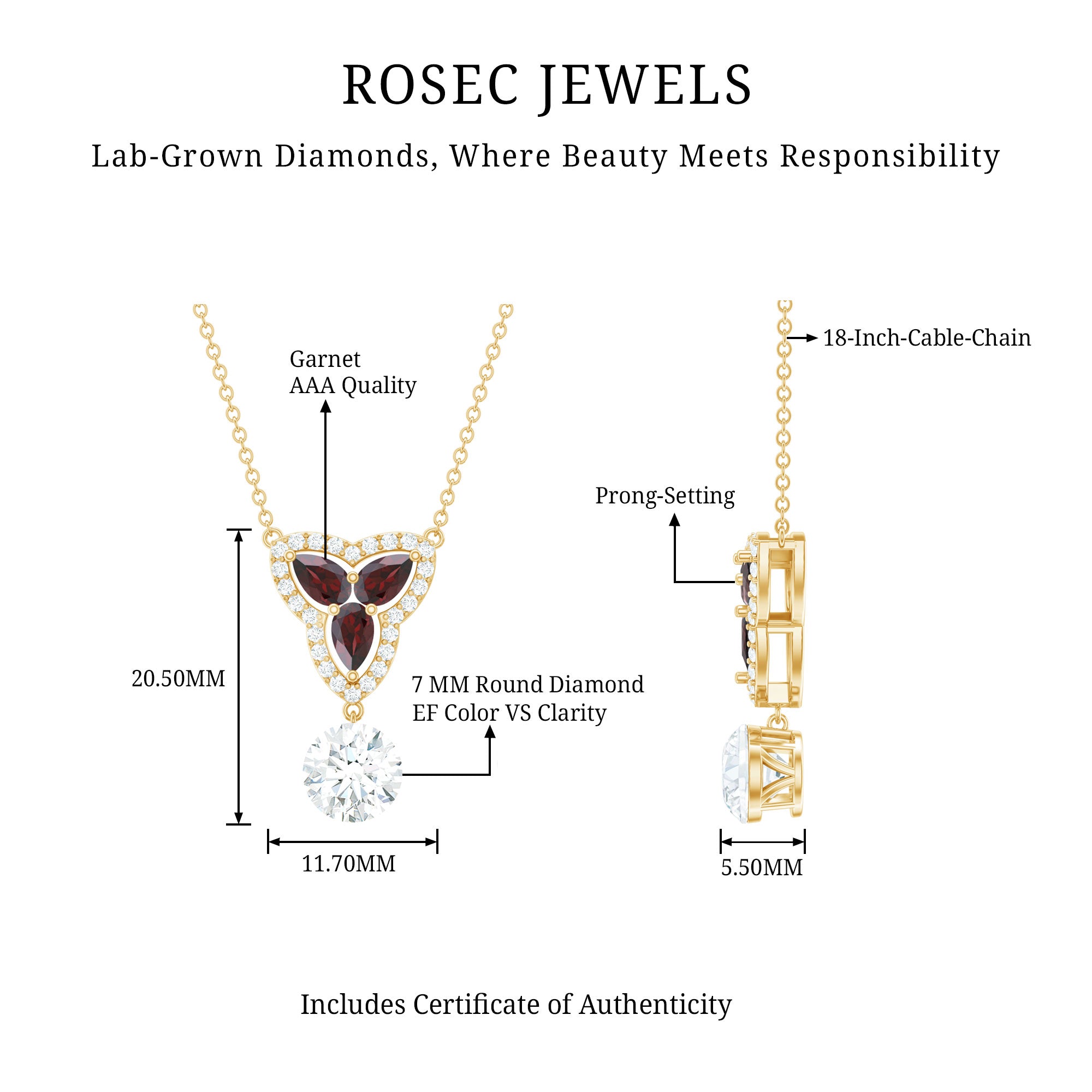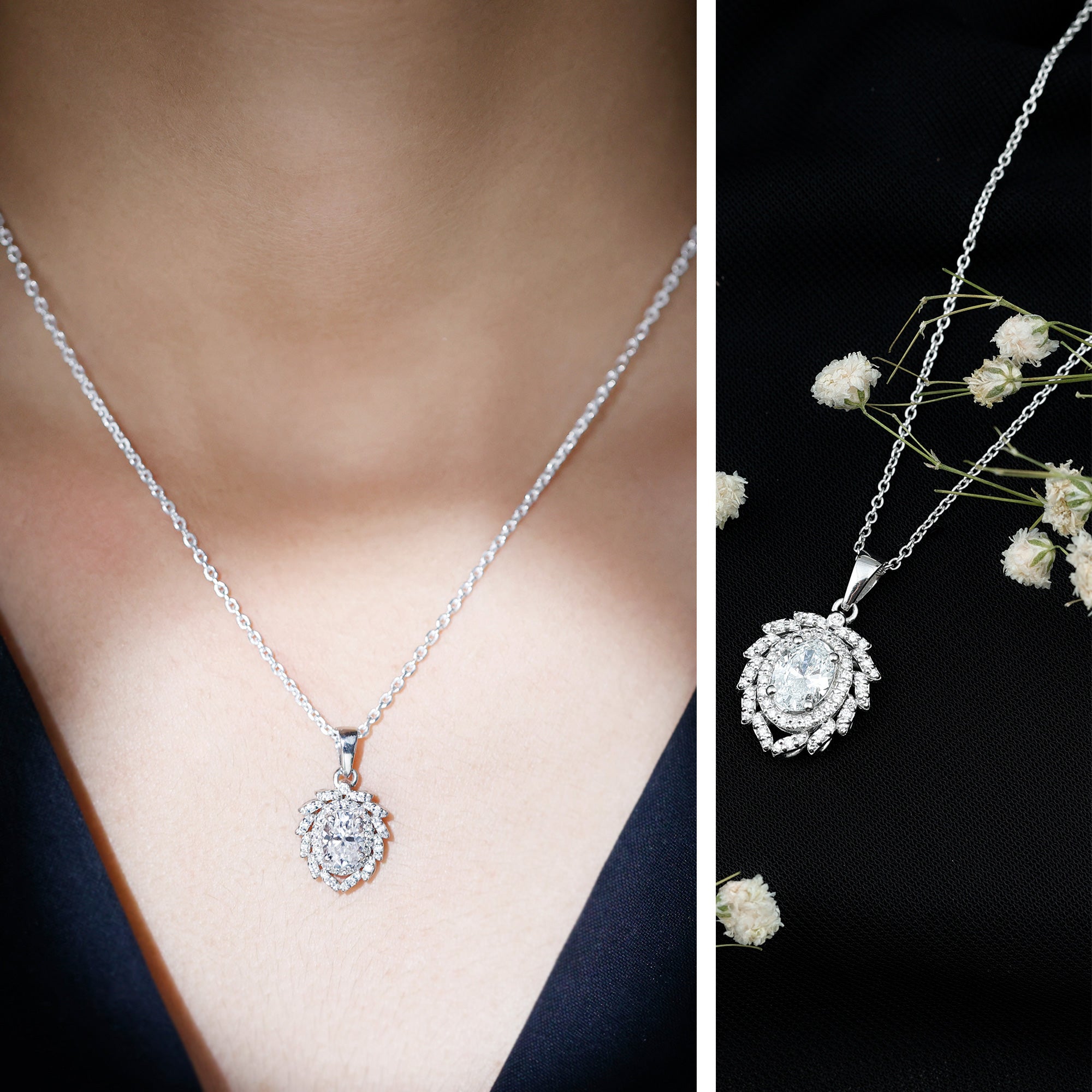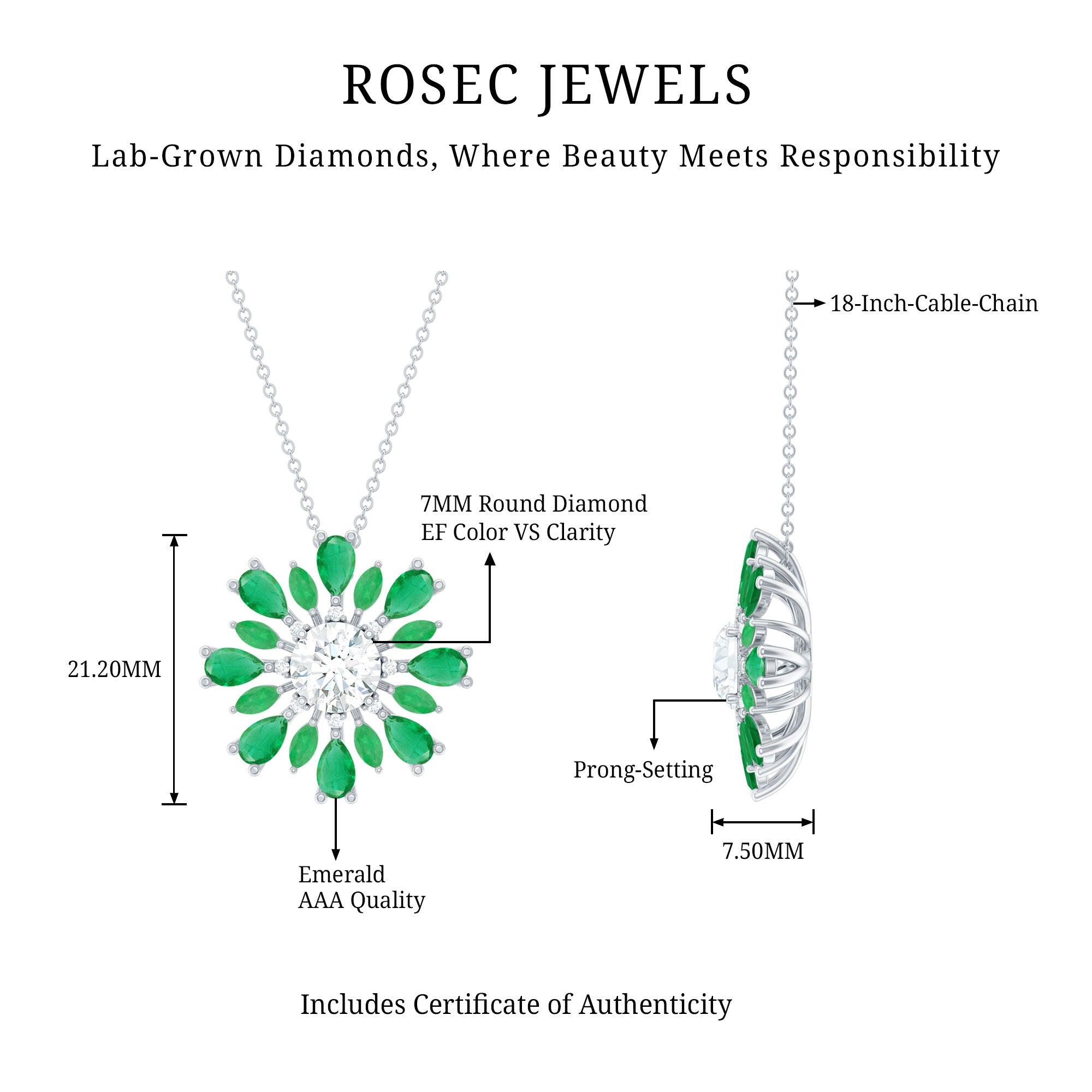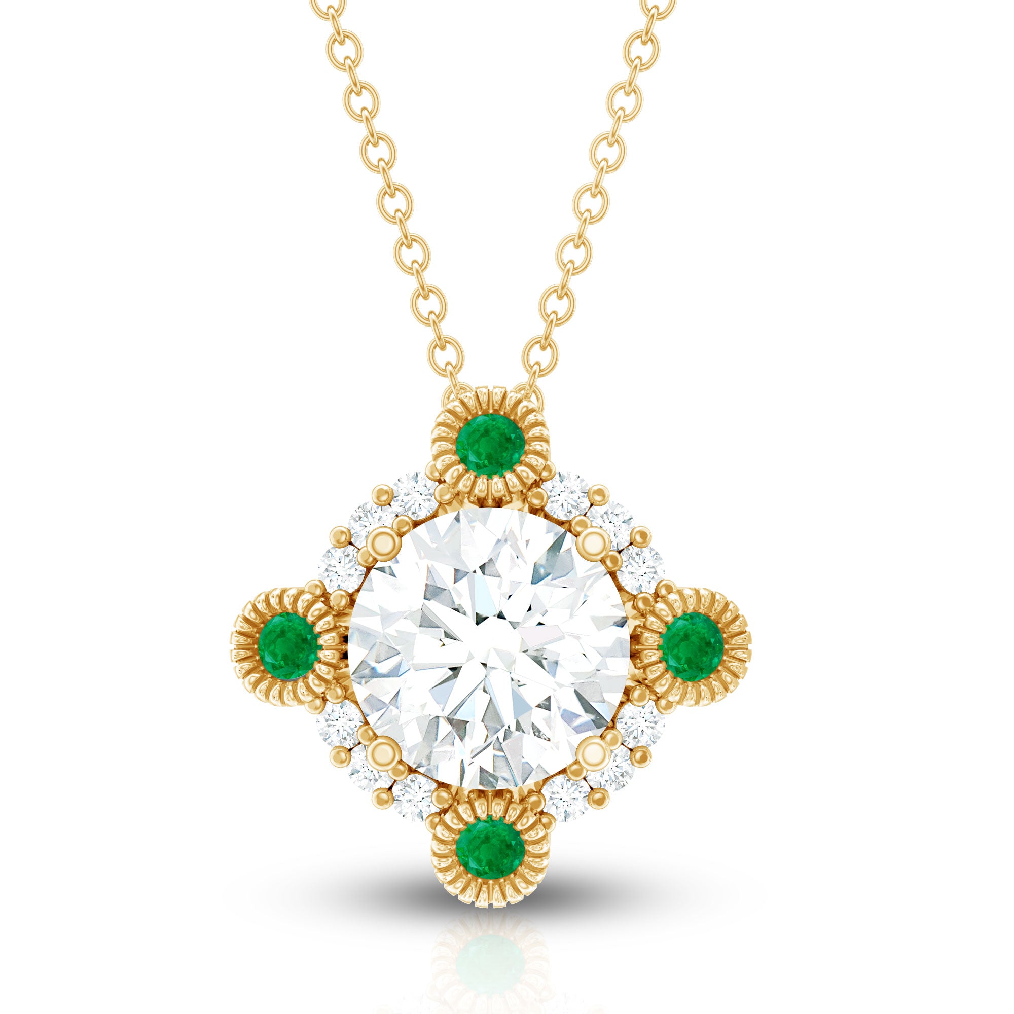 Solitaire: One of the classic styles that features a single lab grown diamond in the center in different shapes. Our lab grown diamond pendant is one of the favorite picks for almost all occasions.