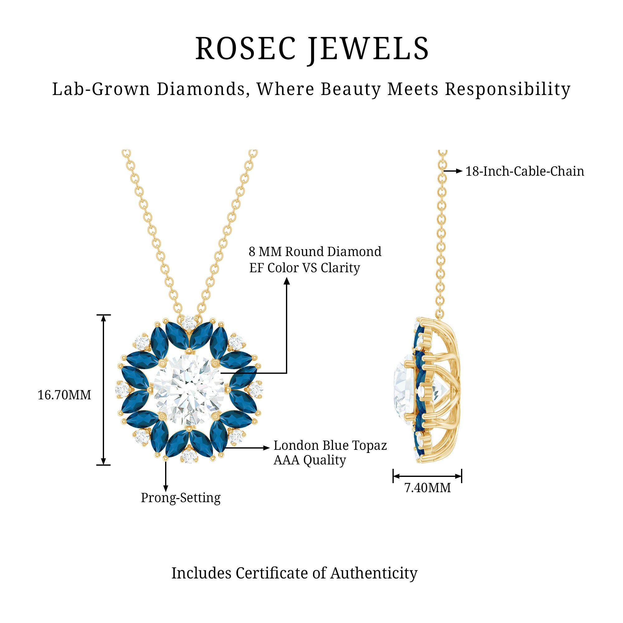 Lab-grown diamonds are a popular choice in necklaces nowadays due to their similar physical appearance and affordability. Strong and beautiful, our lab grown necklace is not great for only you, but for the planet too.