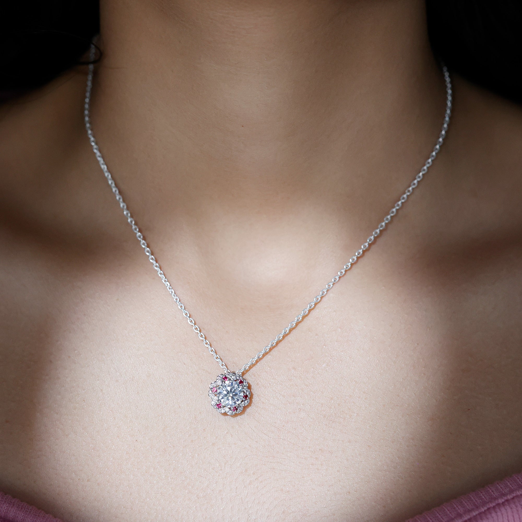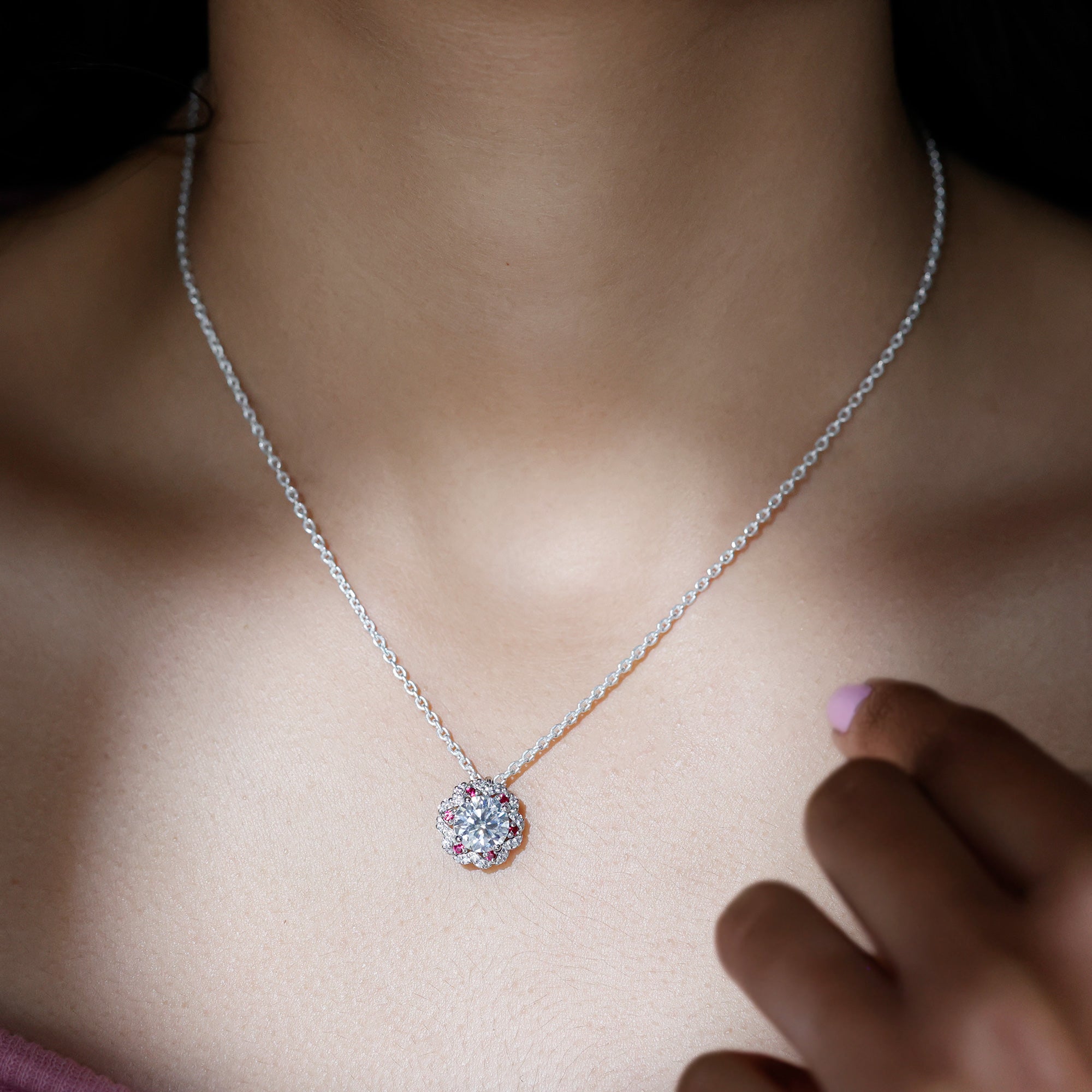 Heart: This romantic lab diamond necklace style features a heart shaped gemstone of different sizes or a metal frame pendant adorned with lab grown diamonds. A captivating piece to express your love in a stylish and meaningful way.