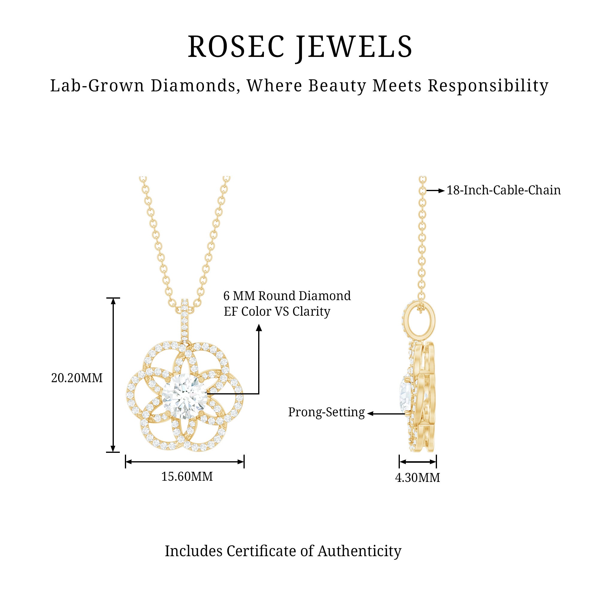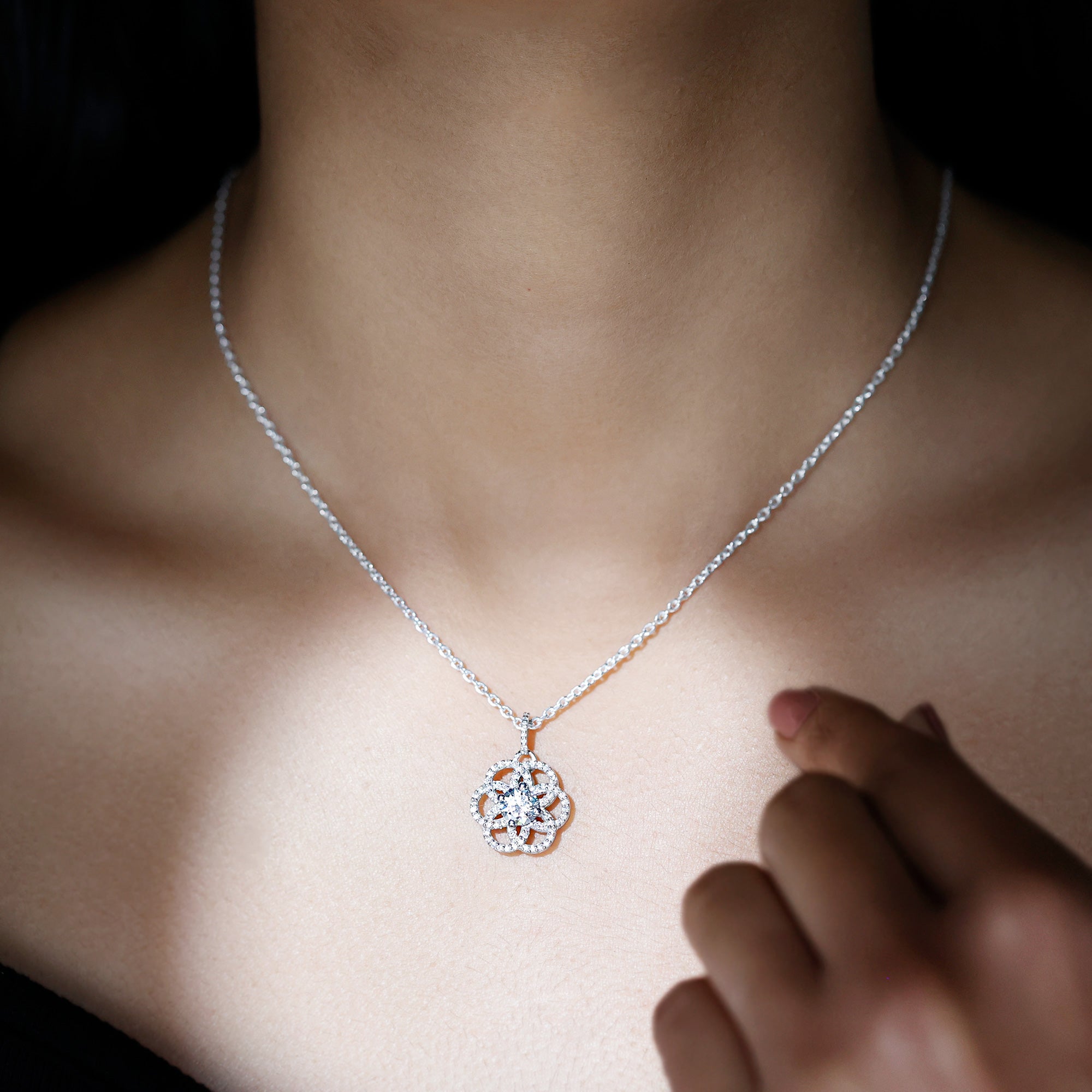 Solitaire: One of the classic styles that features a single lab grown diamond in the center in different shapes. Our lab grown diamond pendant is one of the favorite picks for almost all occasions.