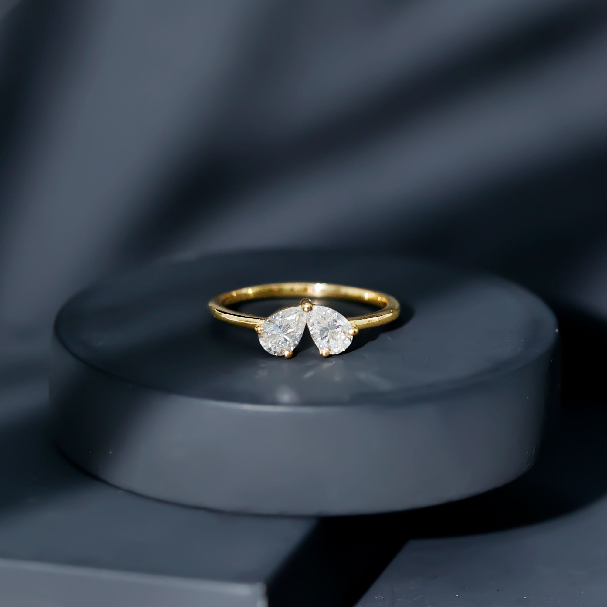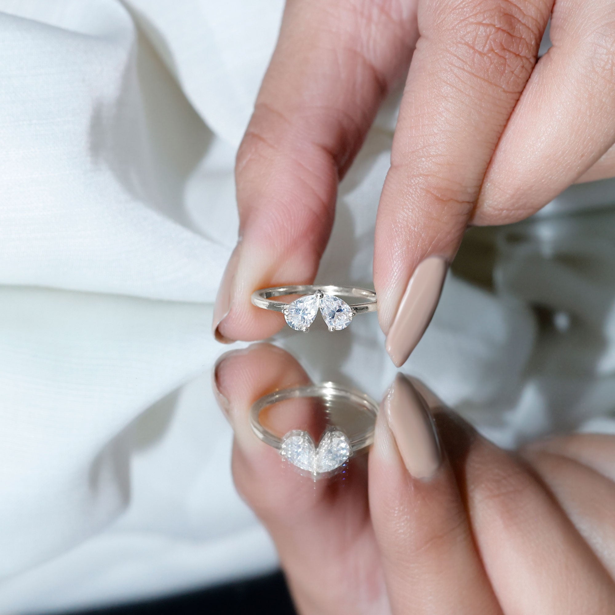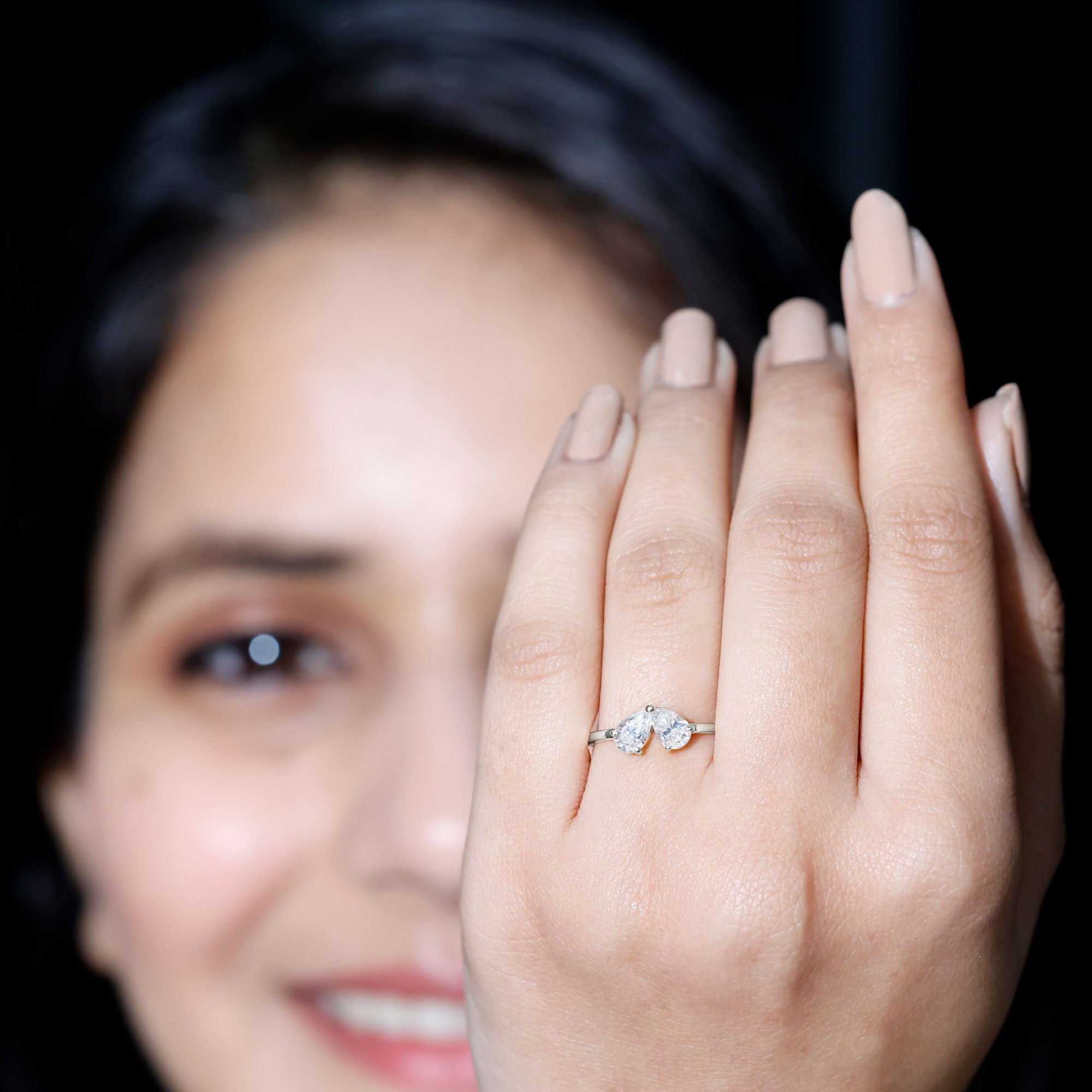 Two stone Promise Rings: Toi et moi rings, symbolize the connection of two souls through their two lab gems is a perfect piece for romantic lovers.