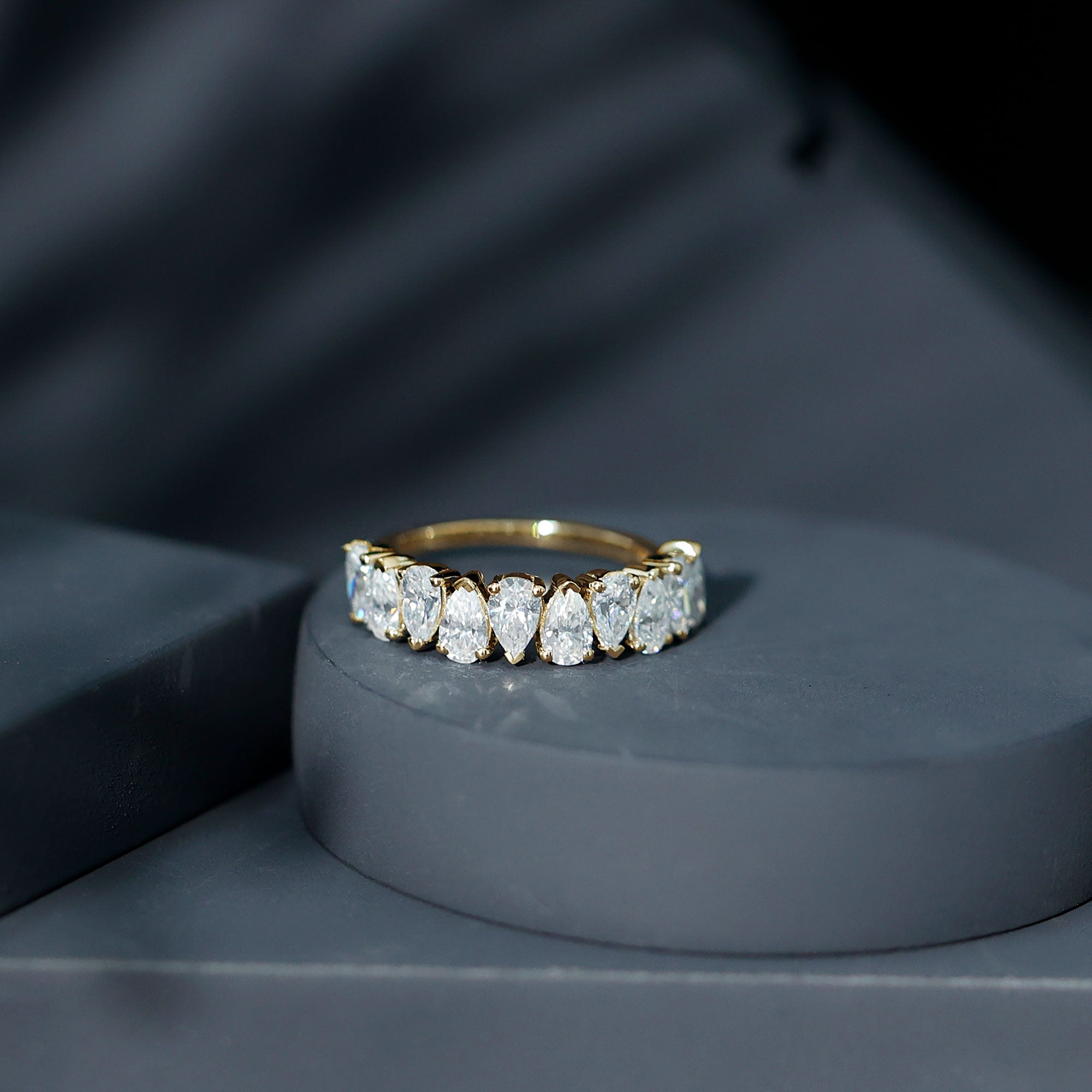 Marquise-Cut Promise Rings: Marquise-cut gems are similar to oval shapes but have pointed ends for a unique touch. Their long shape and large surface make them bold and elegant, perfect for a promise ring.