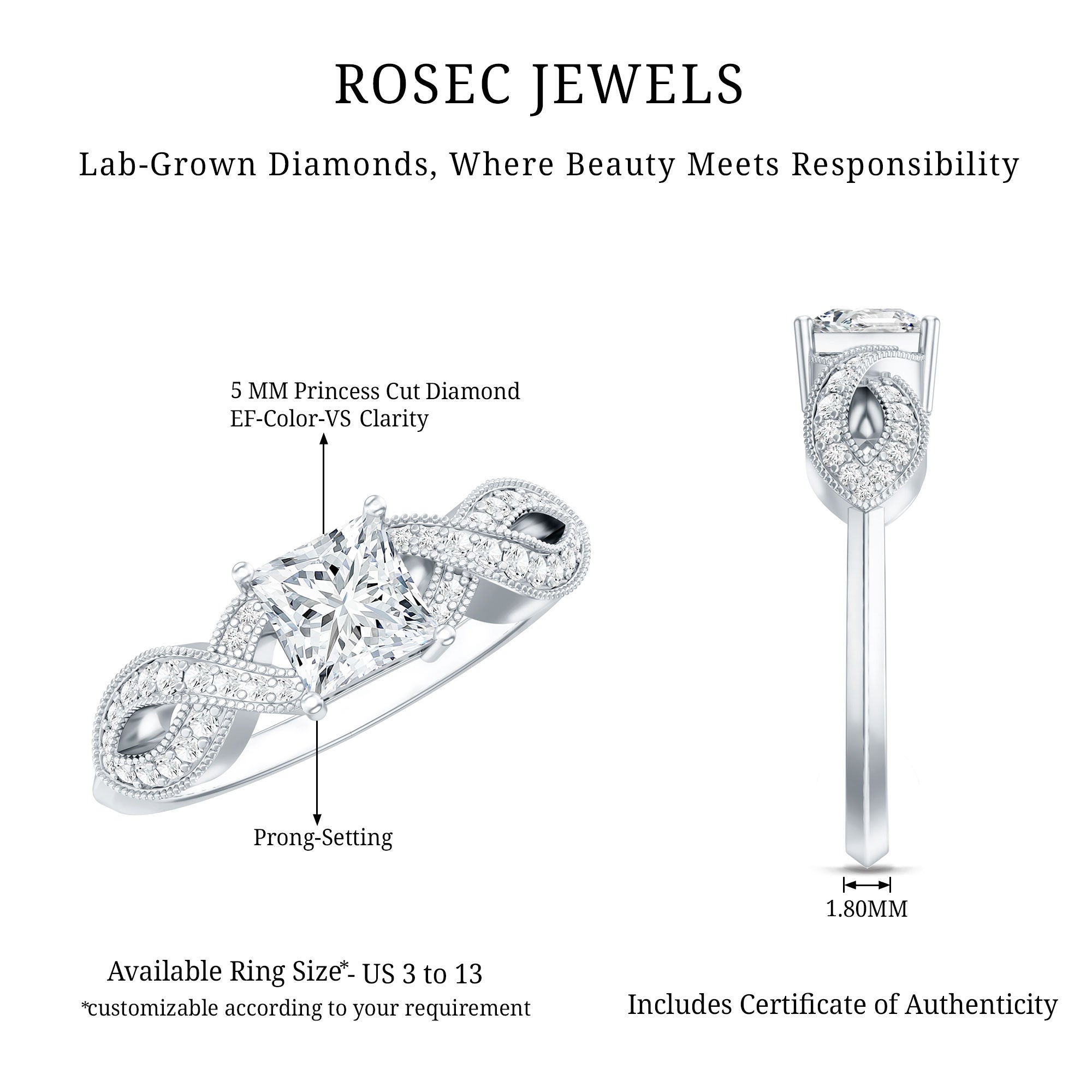 Rosec Jewels is the ultimate destination for buying lab-grown diamond promise rings, for several reasons. Here are a few: