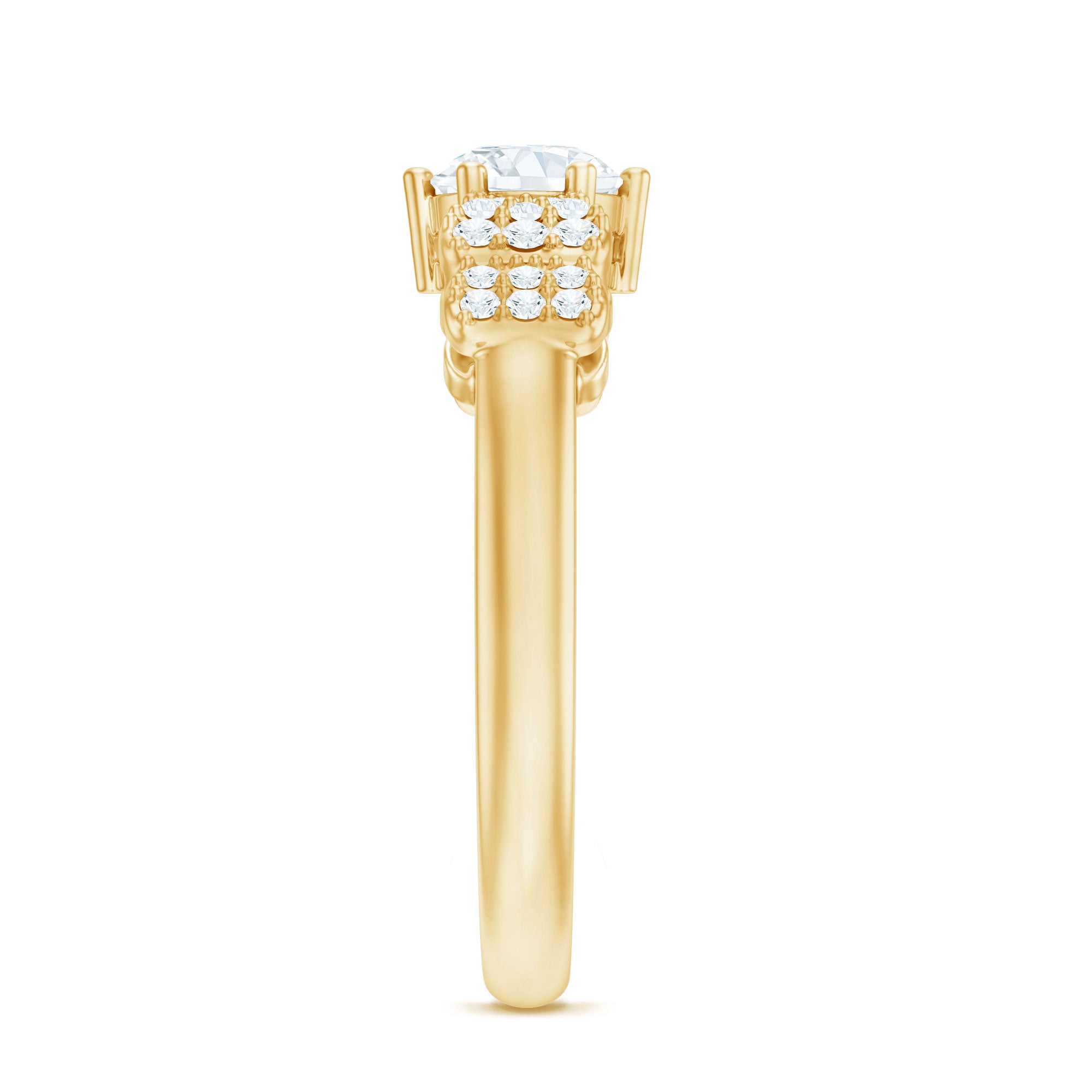 Halo Rings: Lab created diamond promise rings in halo style feature a central lab-grown diamond gemstone encircled by smaller similar or different gems, offering a perfect blend of simplicity and elegance.