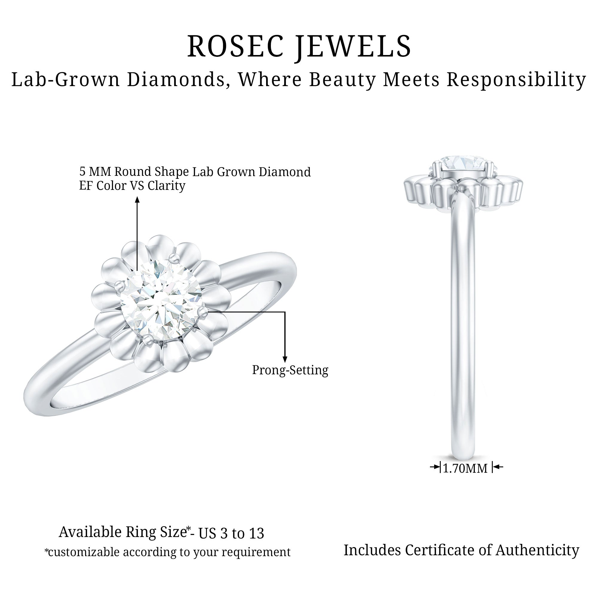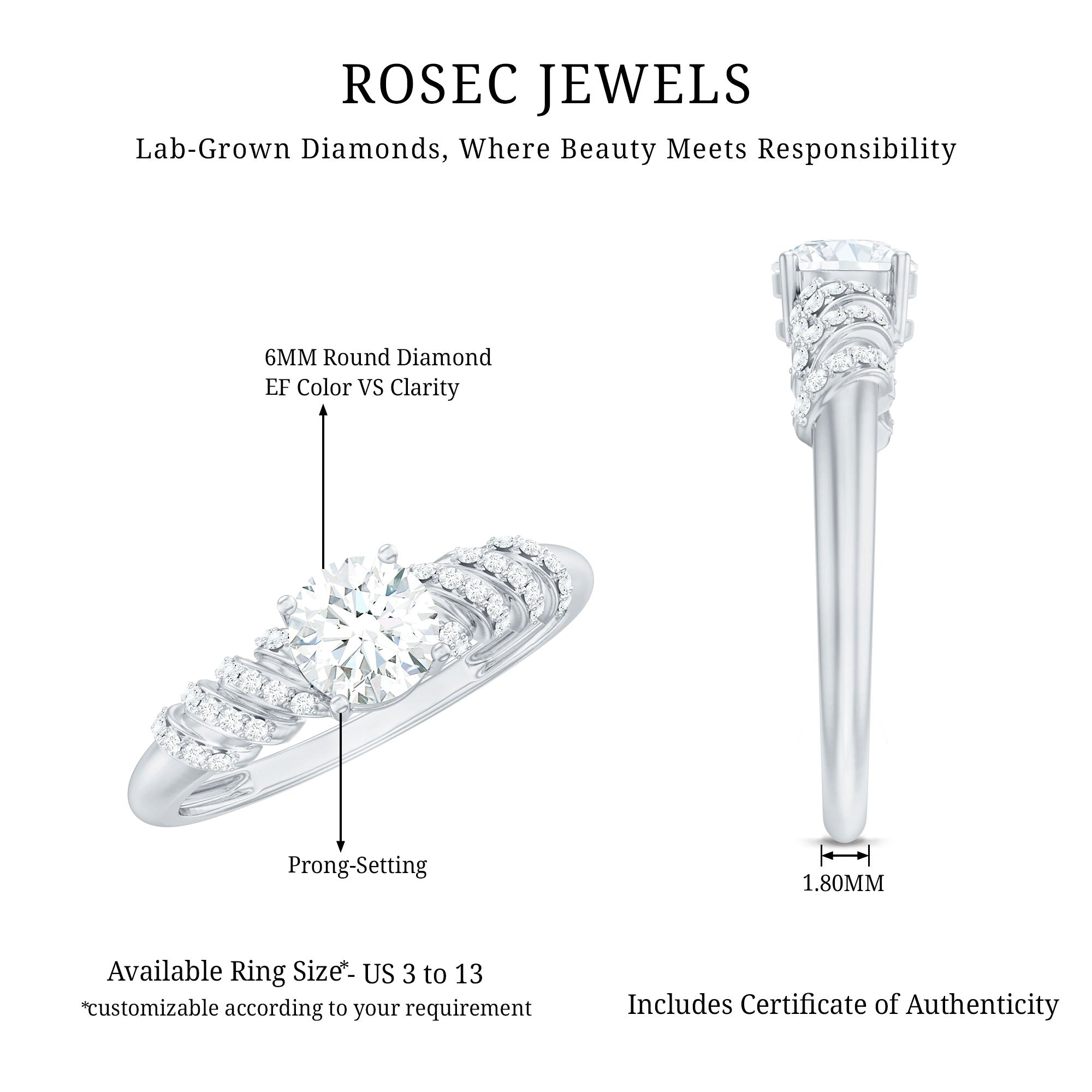 Rosec Jewels is the ultimate destination for buying lab-grown diamond promise rings, for several reasons. Here are a few:
