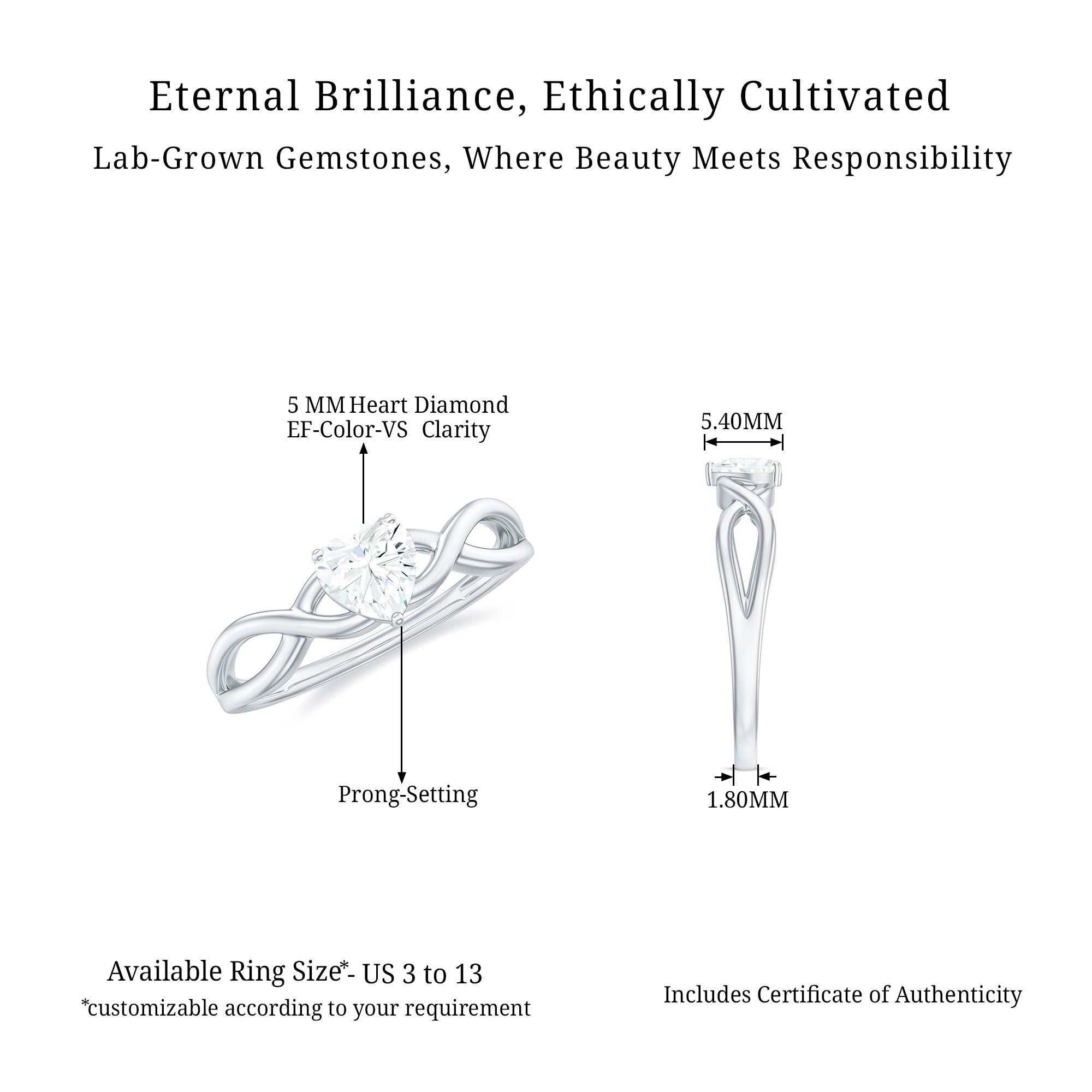 Heart Rings: Like other ring styles, this promise ring also includes lab-grown diamonds but in a charming heart shape. They represent the purity of the bond between you and your loved one.