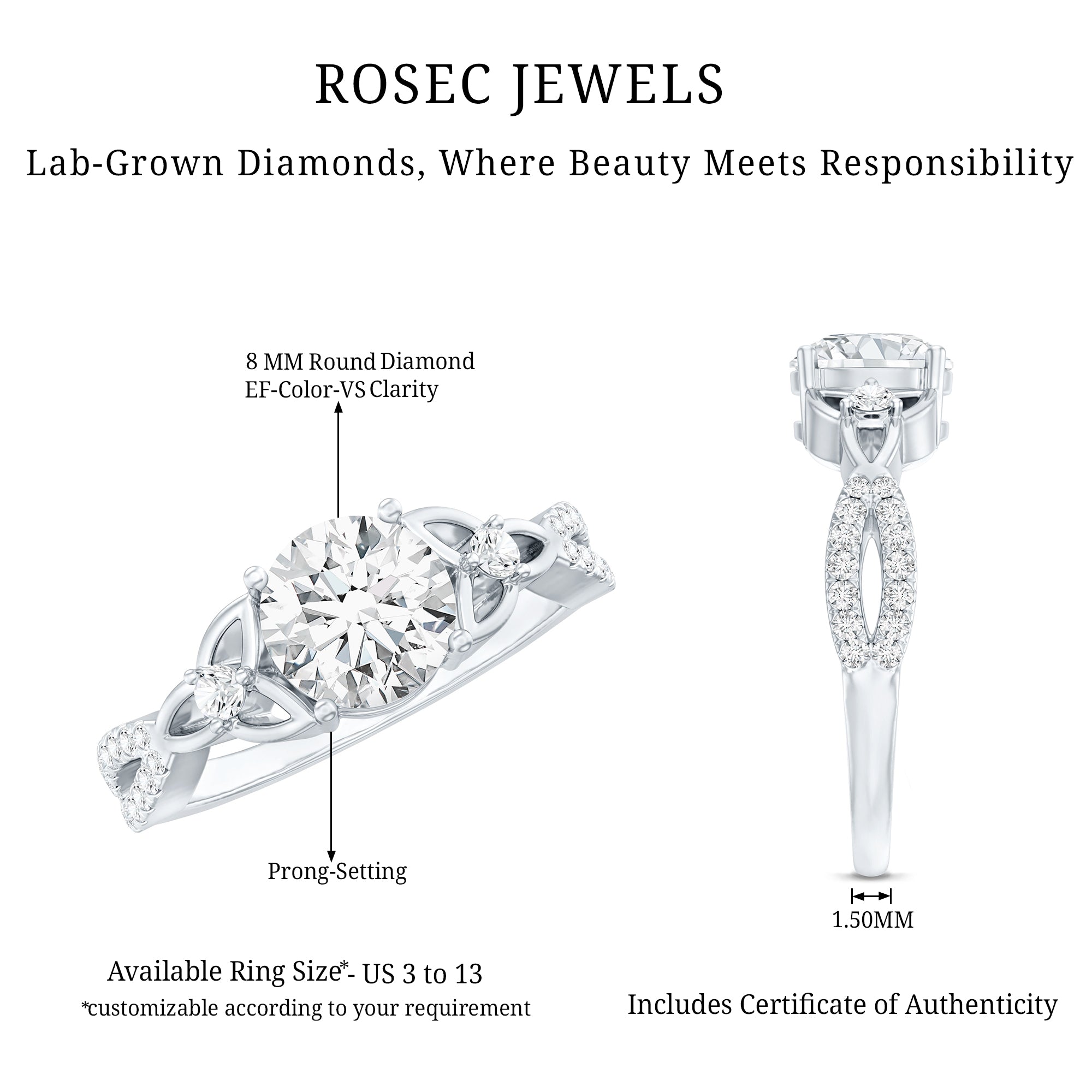 Round-Cut Solitaire Rings: These lab diamond solitaire rings feature classical round-cut gemstone with maximized sparkle.