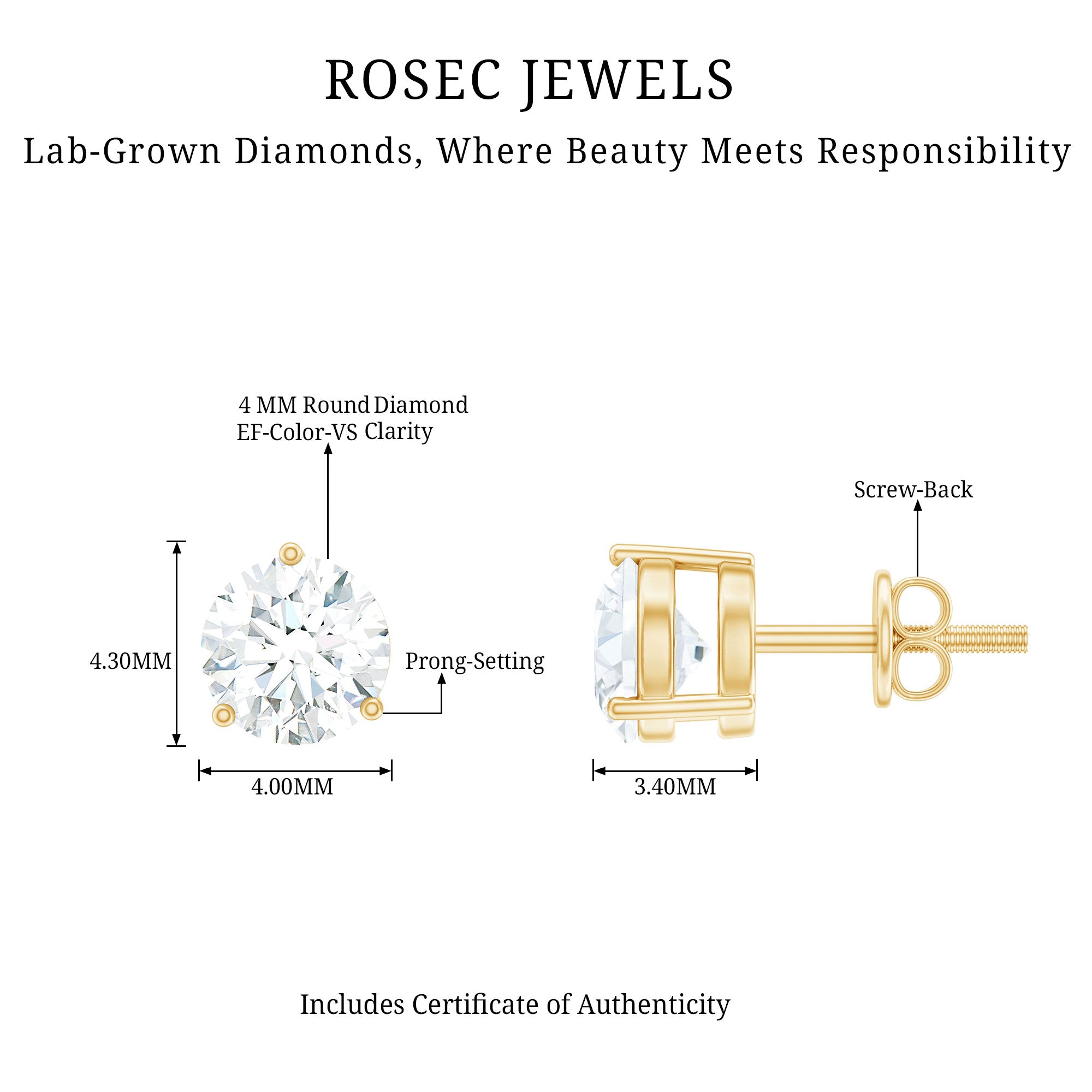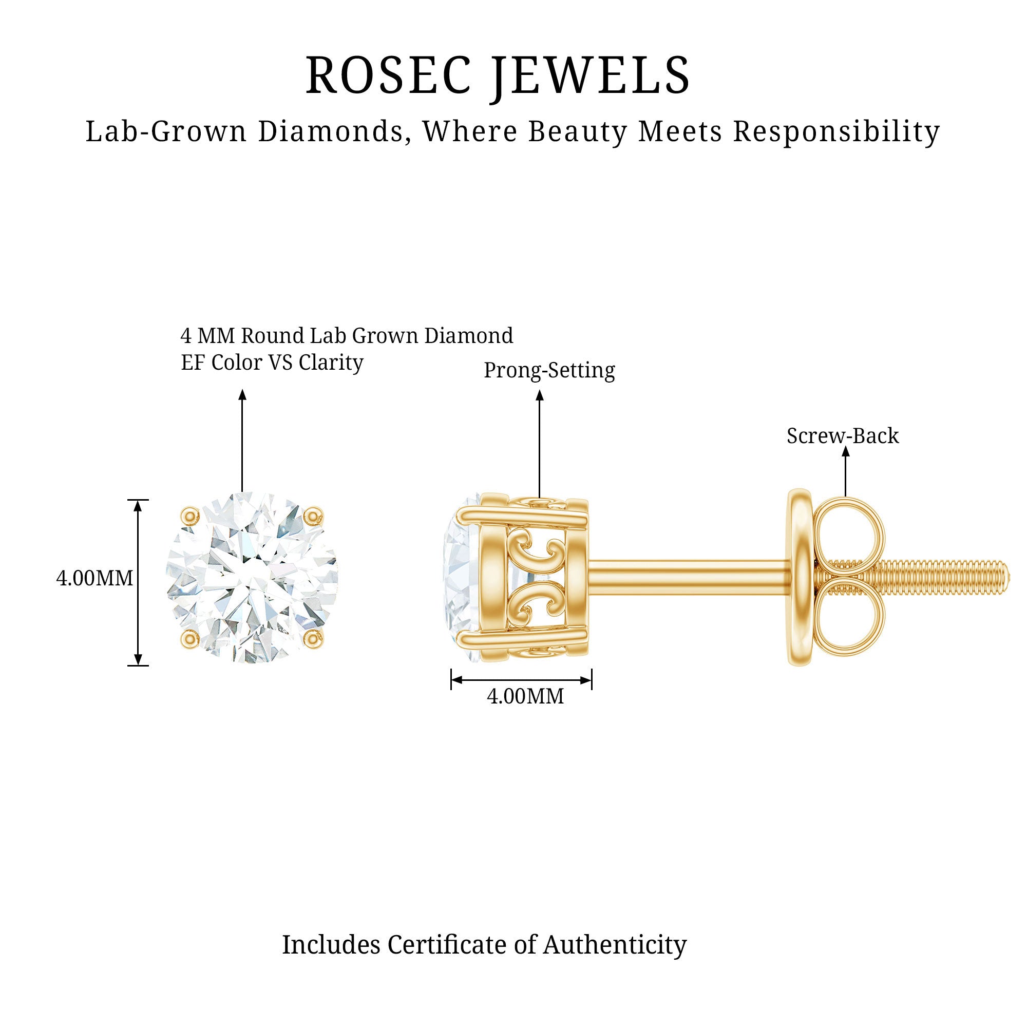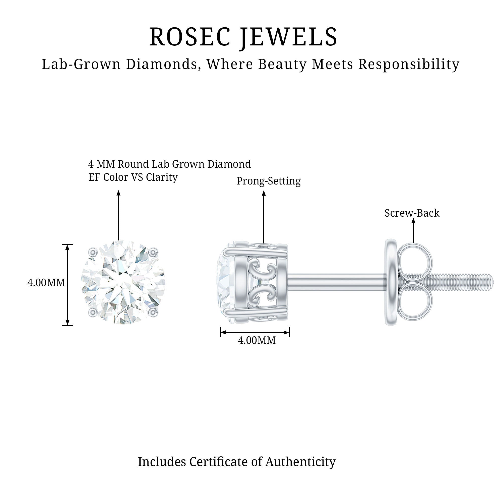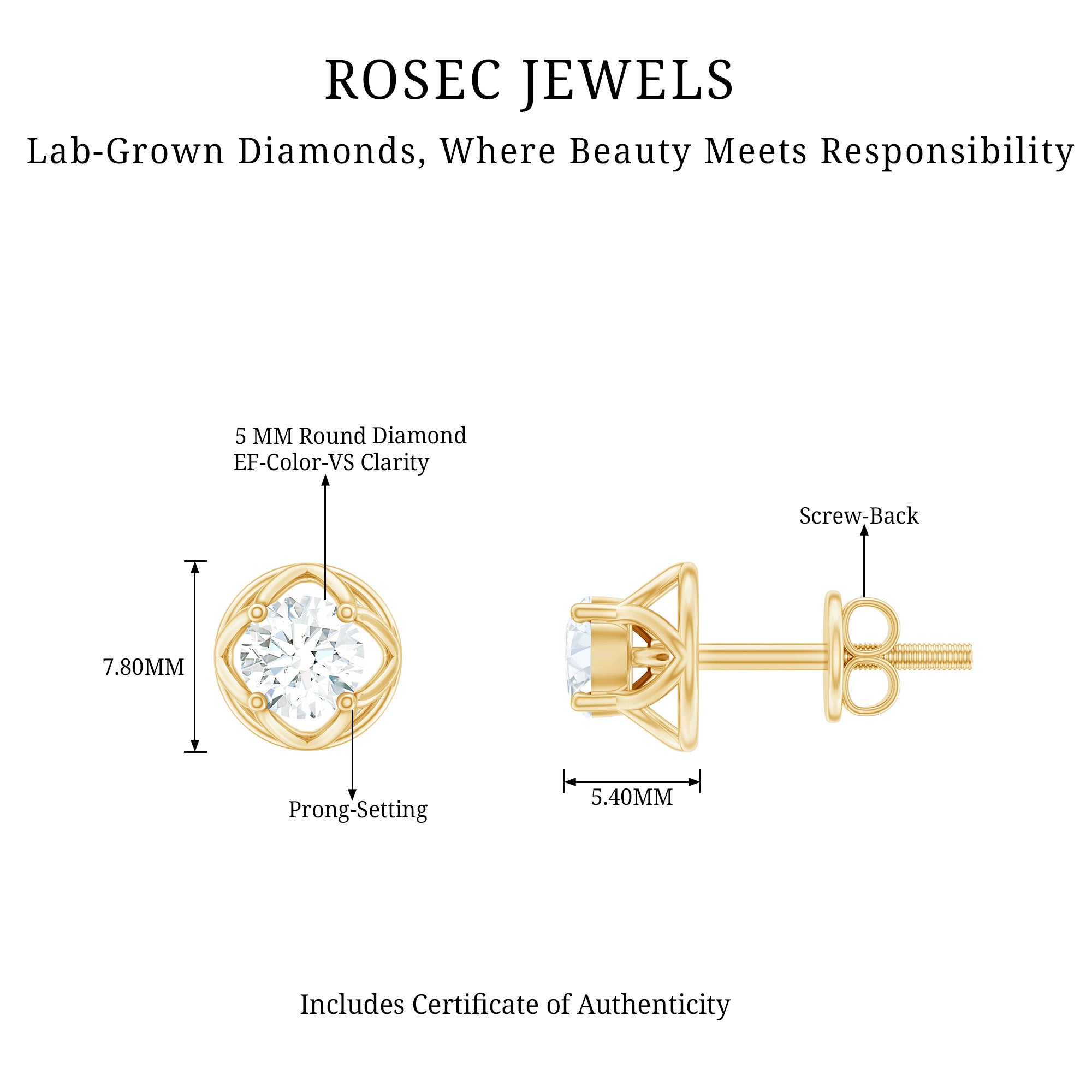 Rosec Jewels offers a diverse collection of lab grown diamond stud earrings featuring EF-VS quality lab grown diamonds in different carat sizes. These classic earrings are designed to enhance your everyday or dressy attires for a touch of extra edge and sparkle to your looks.