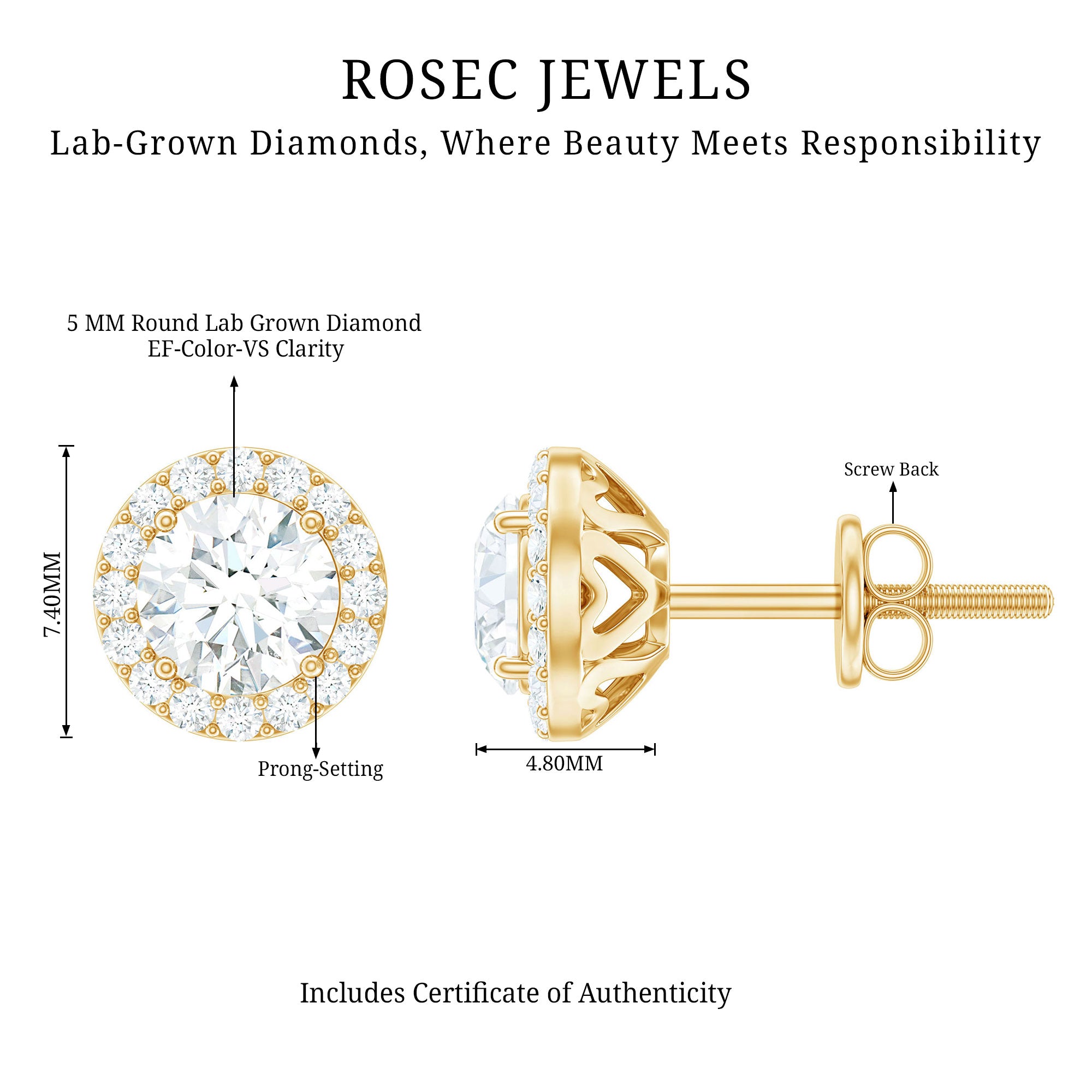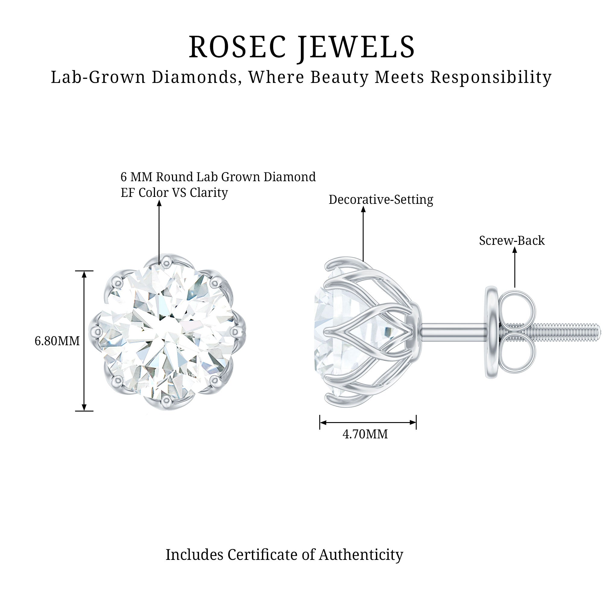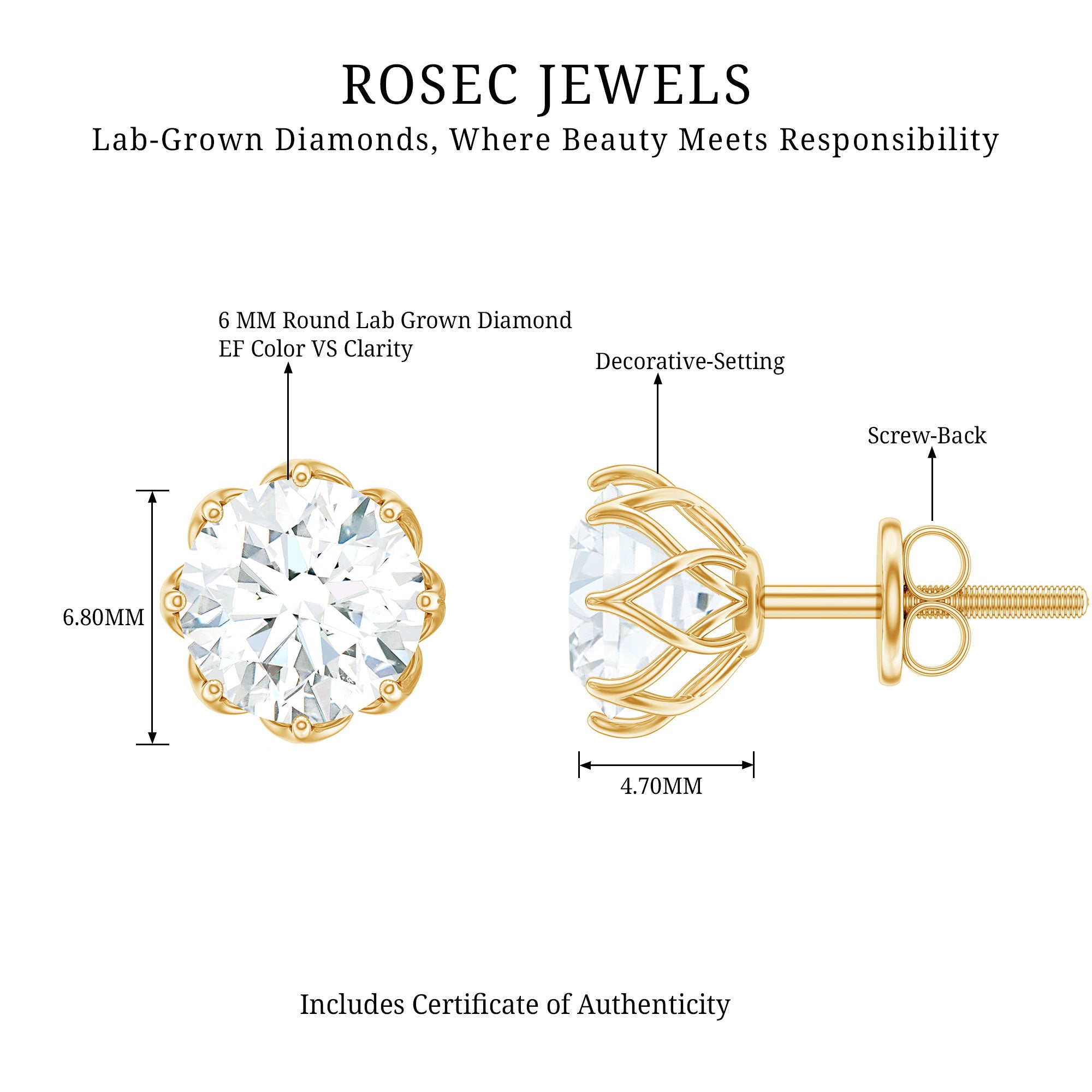 Rosec Jewels offers a diverse collection of lab grown diamond stud earrings featuring EF-VS quality lab grown diamonds in different carat sizes. These classic earrings are designed to enhance your everyday or dressy attires for a touch of extra edge and sparkle to your looks.