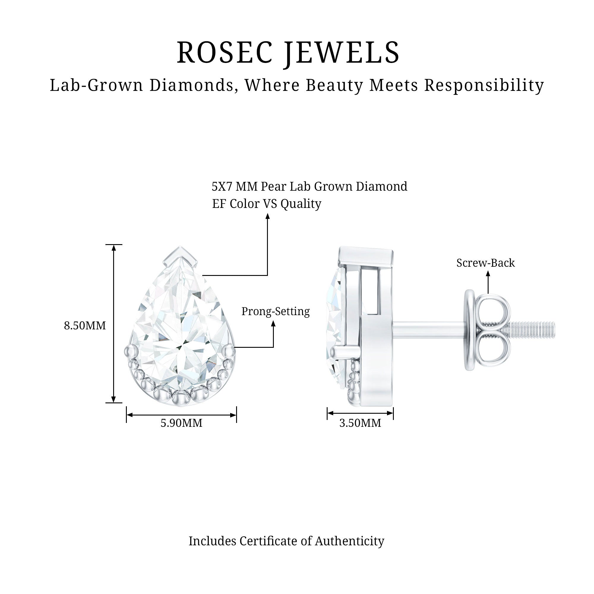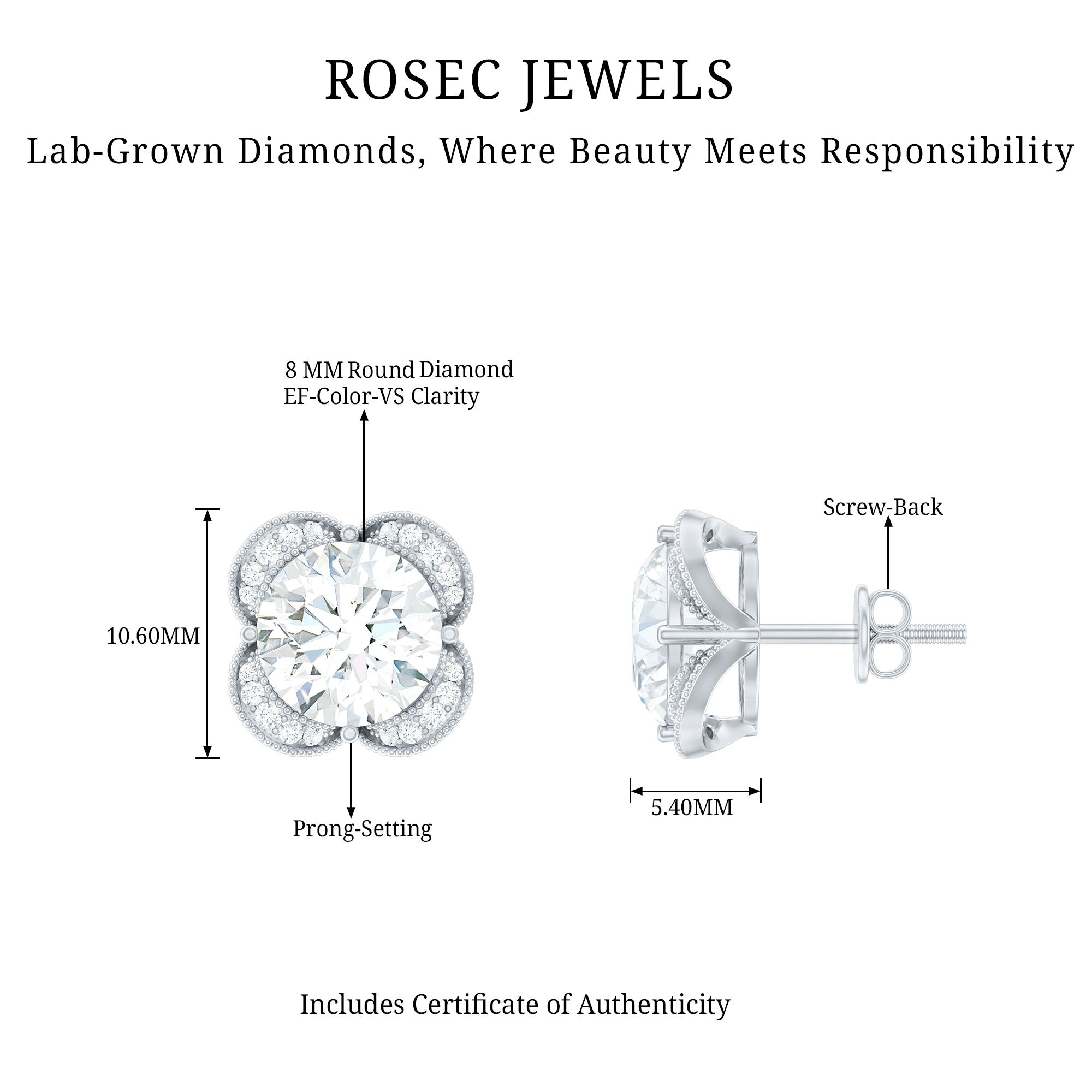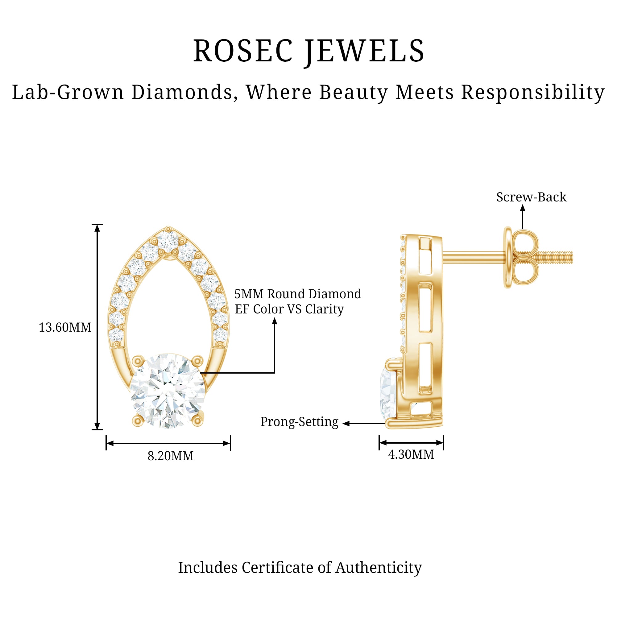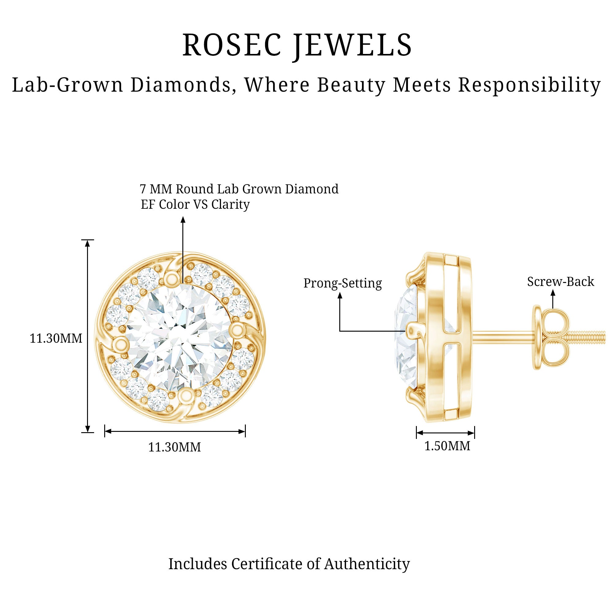 Rosec Jewels offers a diverse collection of lab grown diamond stud earrings featuring EF-VS quality lab grown diamonds in different carat sizes. These classic earrings are designed to enhance your everyday or dressy attires for a touch of extra edge and sparkle to your looks.
