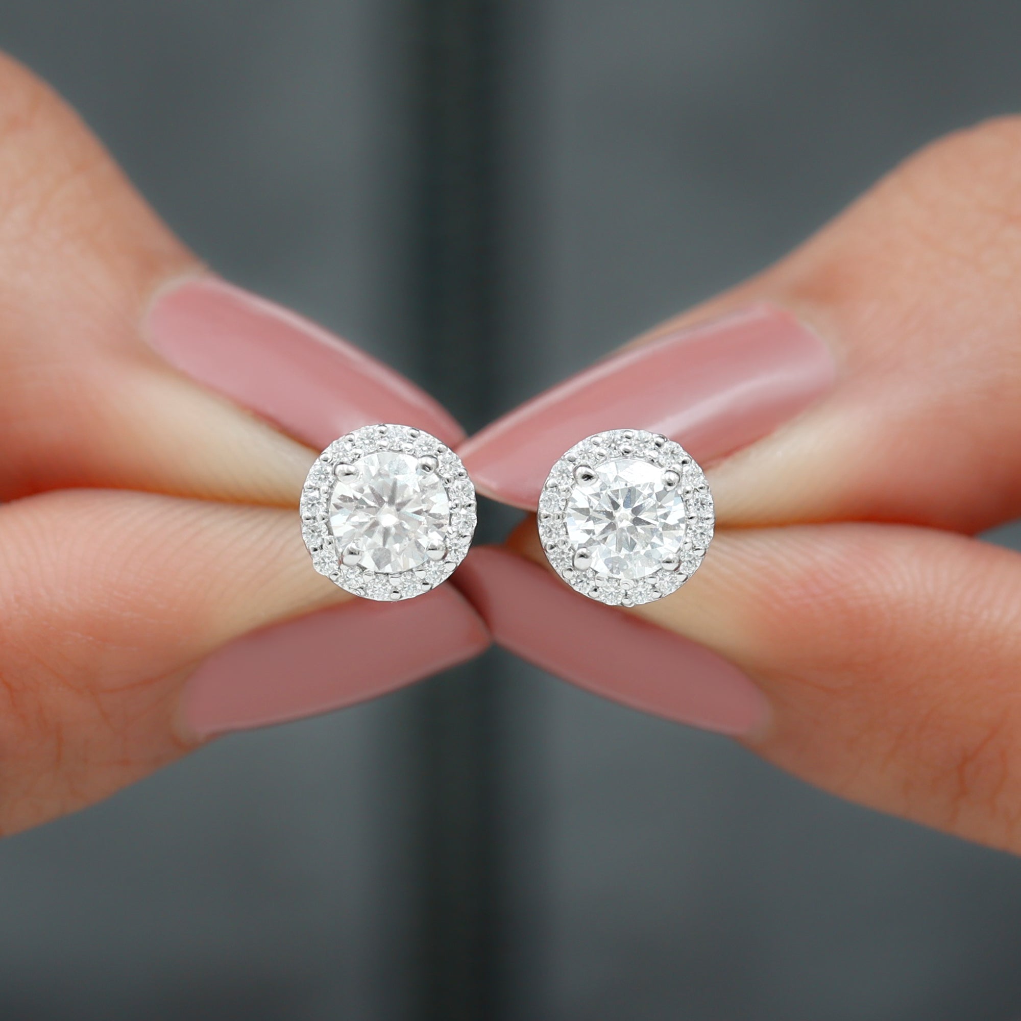 Crafted with precious hallmarked metal like gold and silver, these lab created diamond studs, when styled with a statement matching necklace can add a special charm to your overall appearance.
