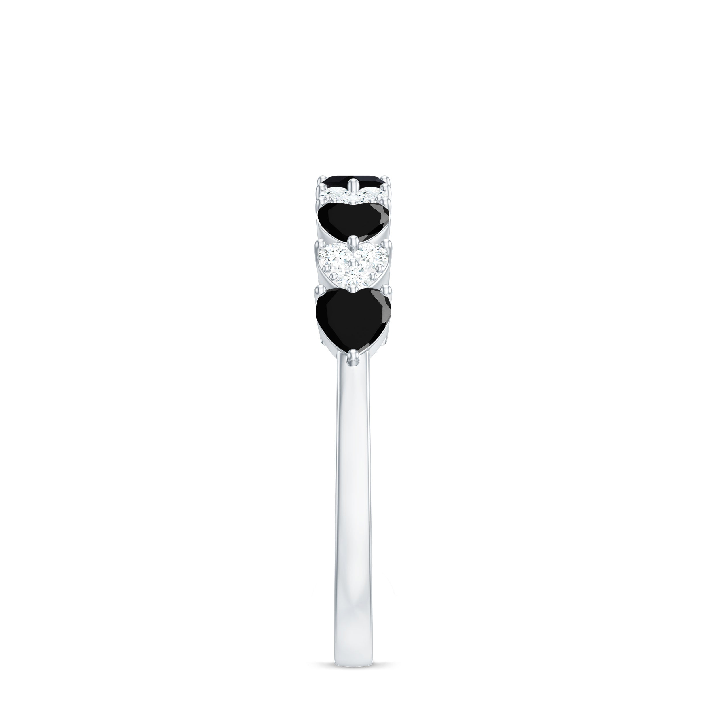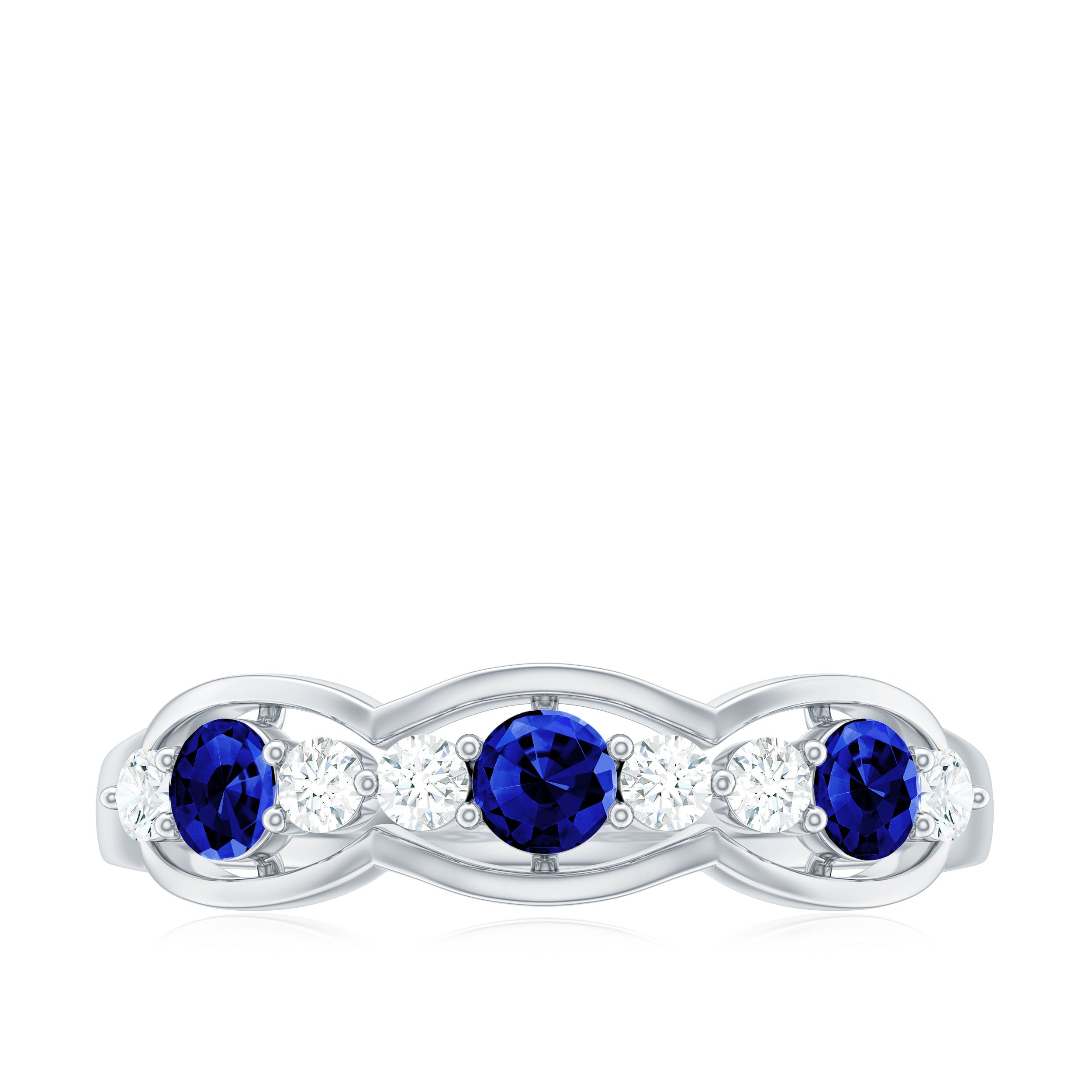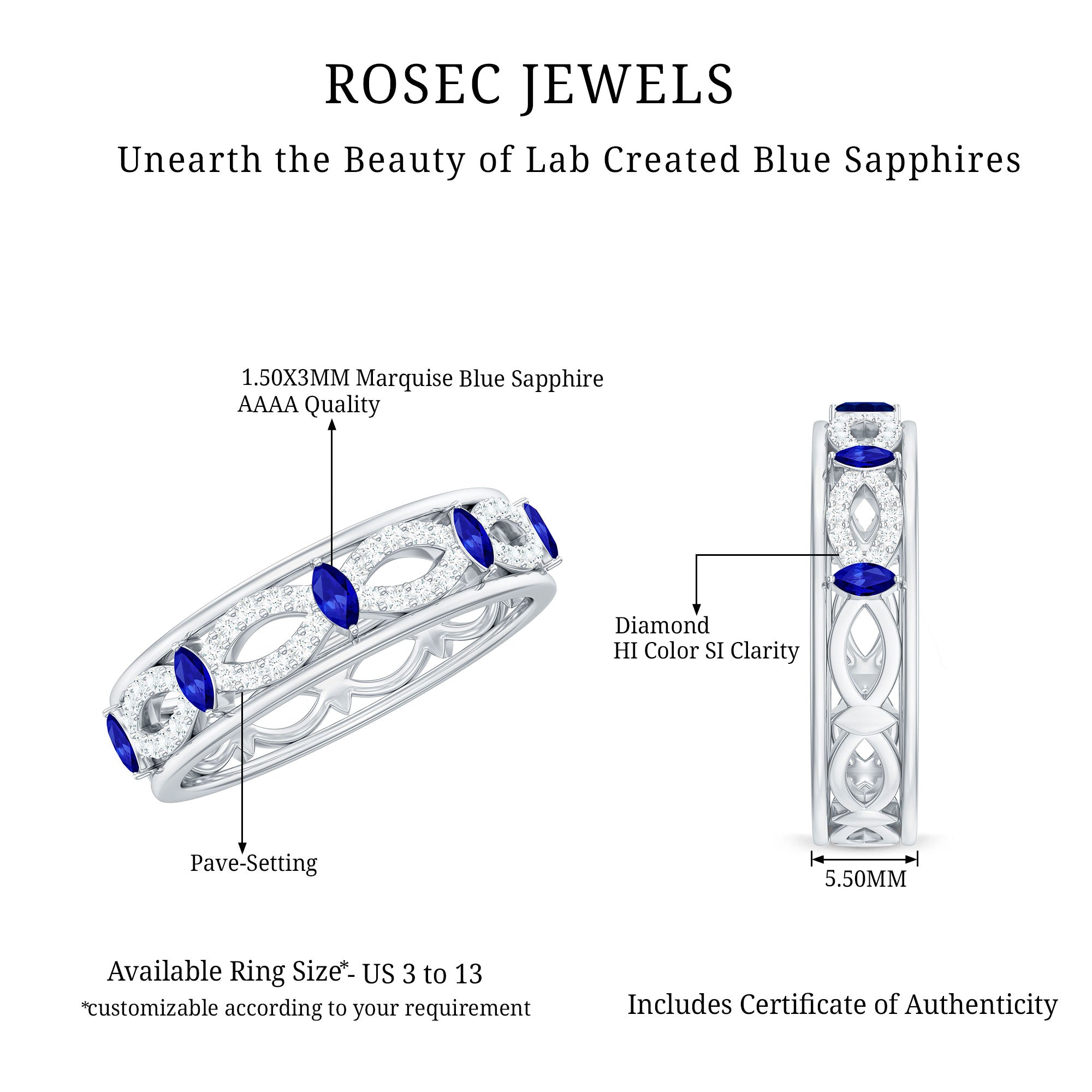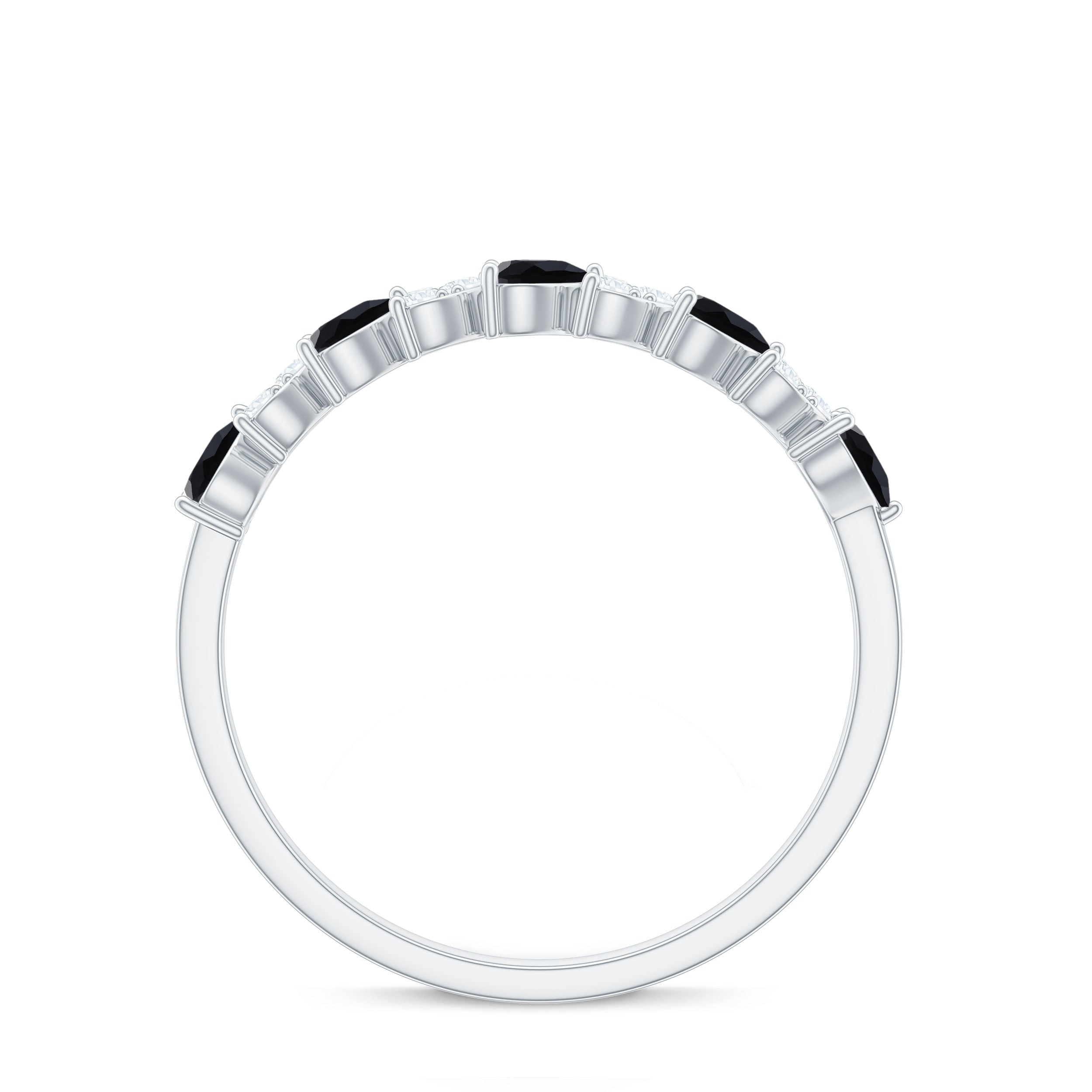 Half Eternity Rings: Entire top of the band adorned with laboratory created gemstones for a graceful sparkle.
