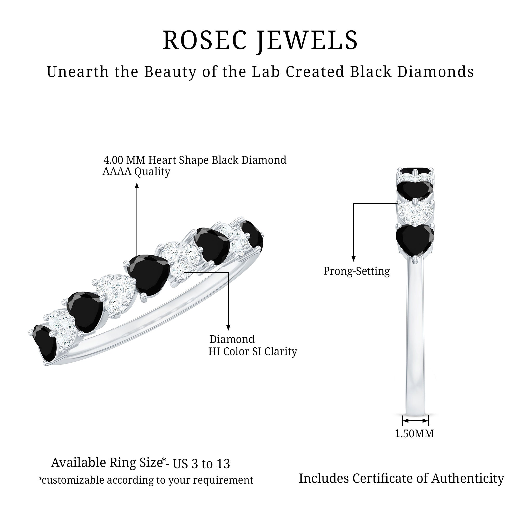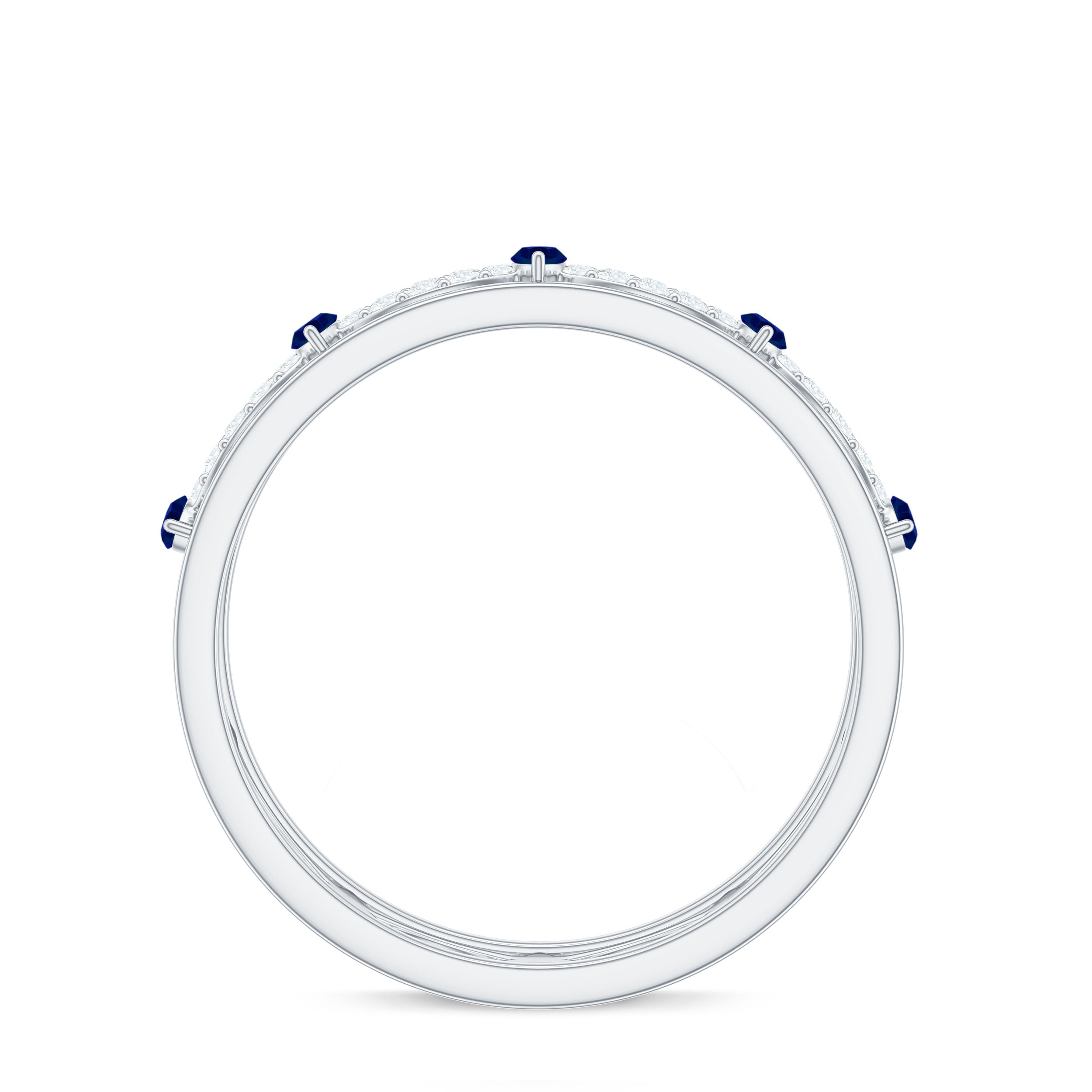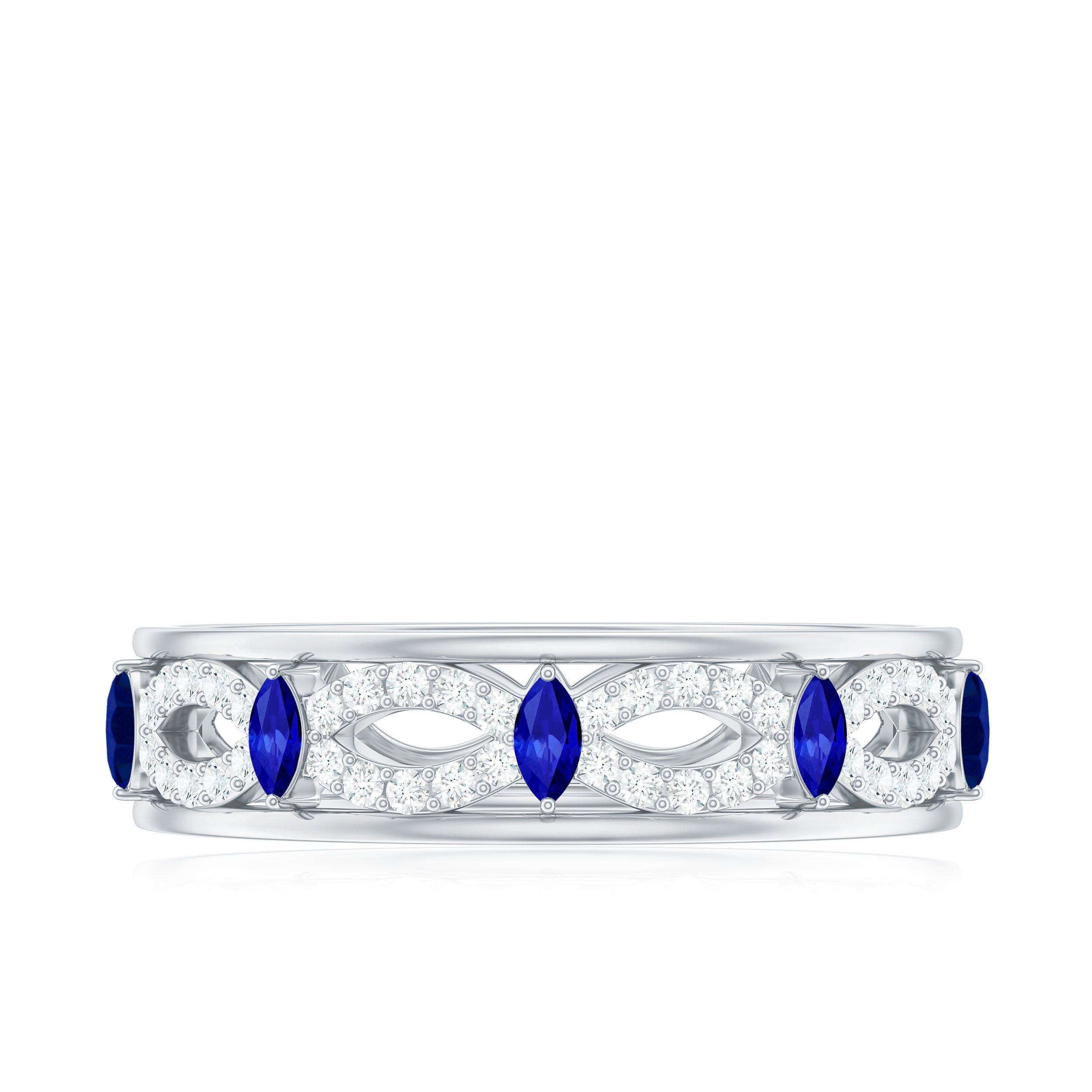 Half Eternity Rings: Entire top of the band adorned with laboratory created gemstones for a graceful sparkle.