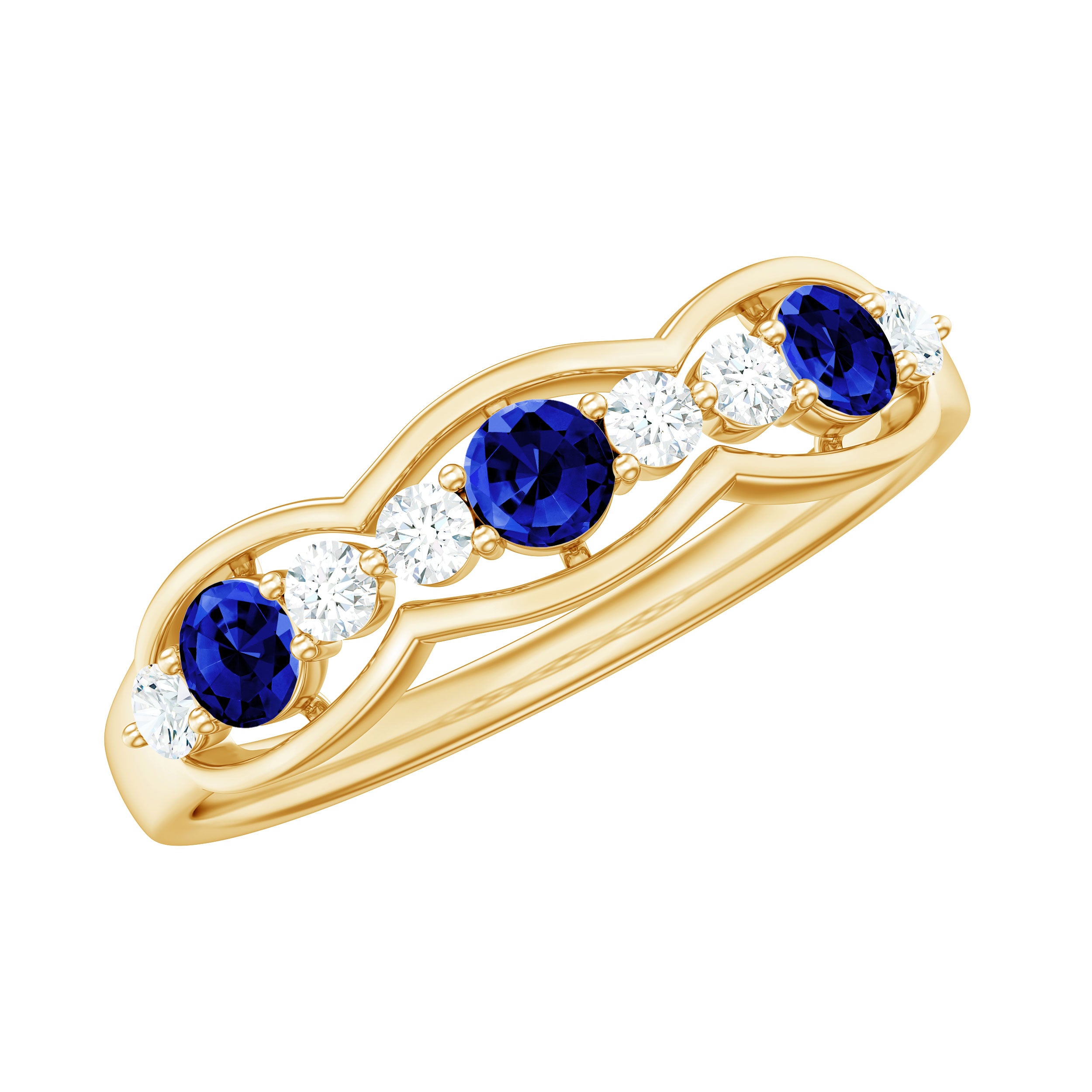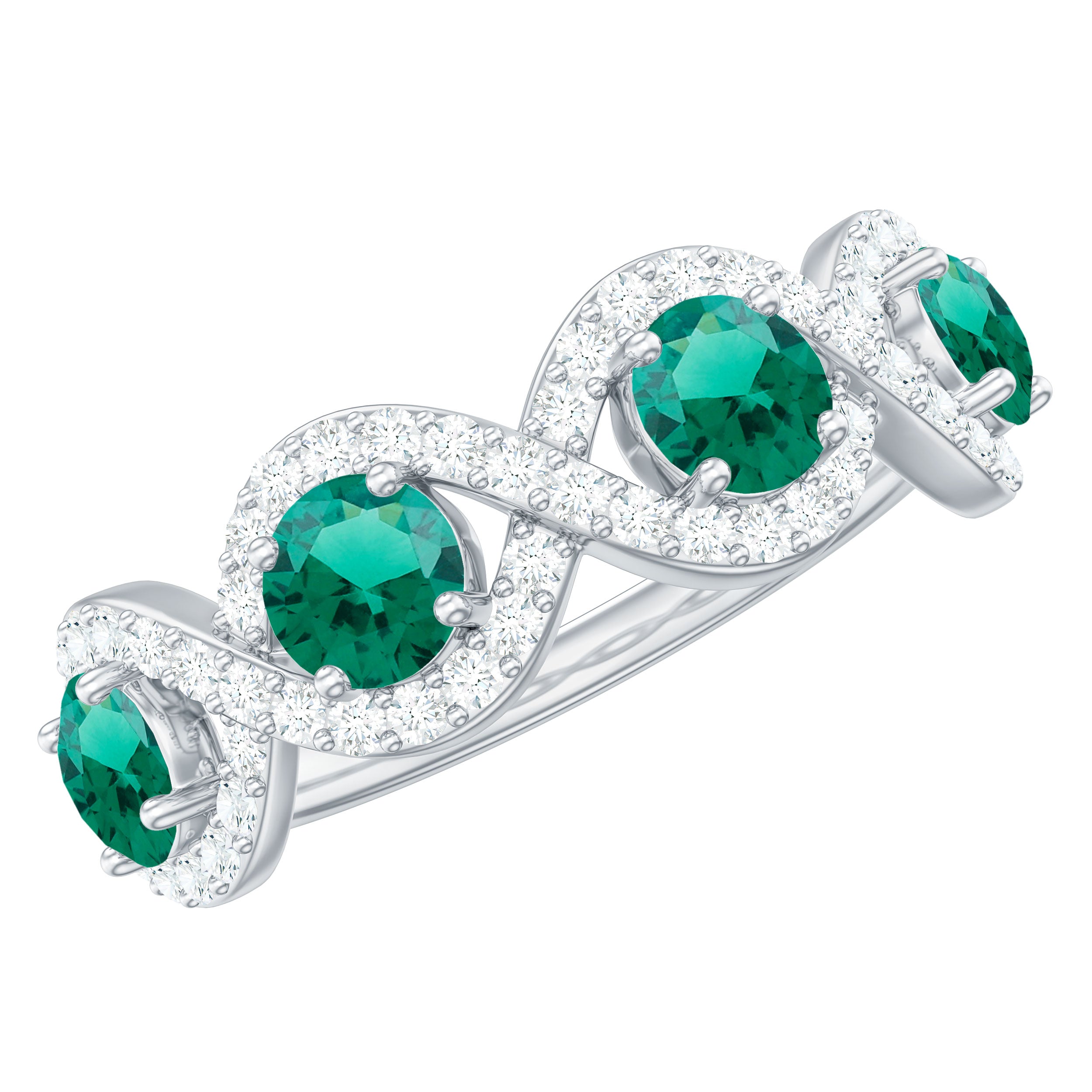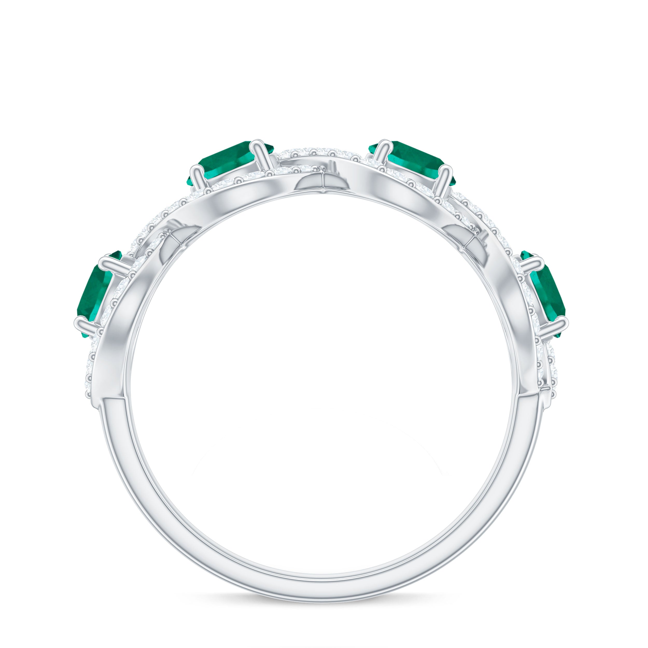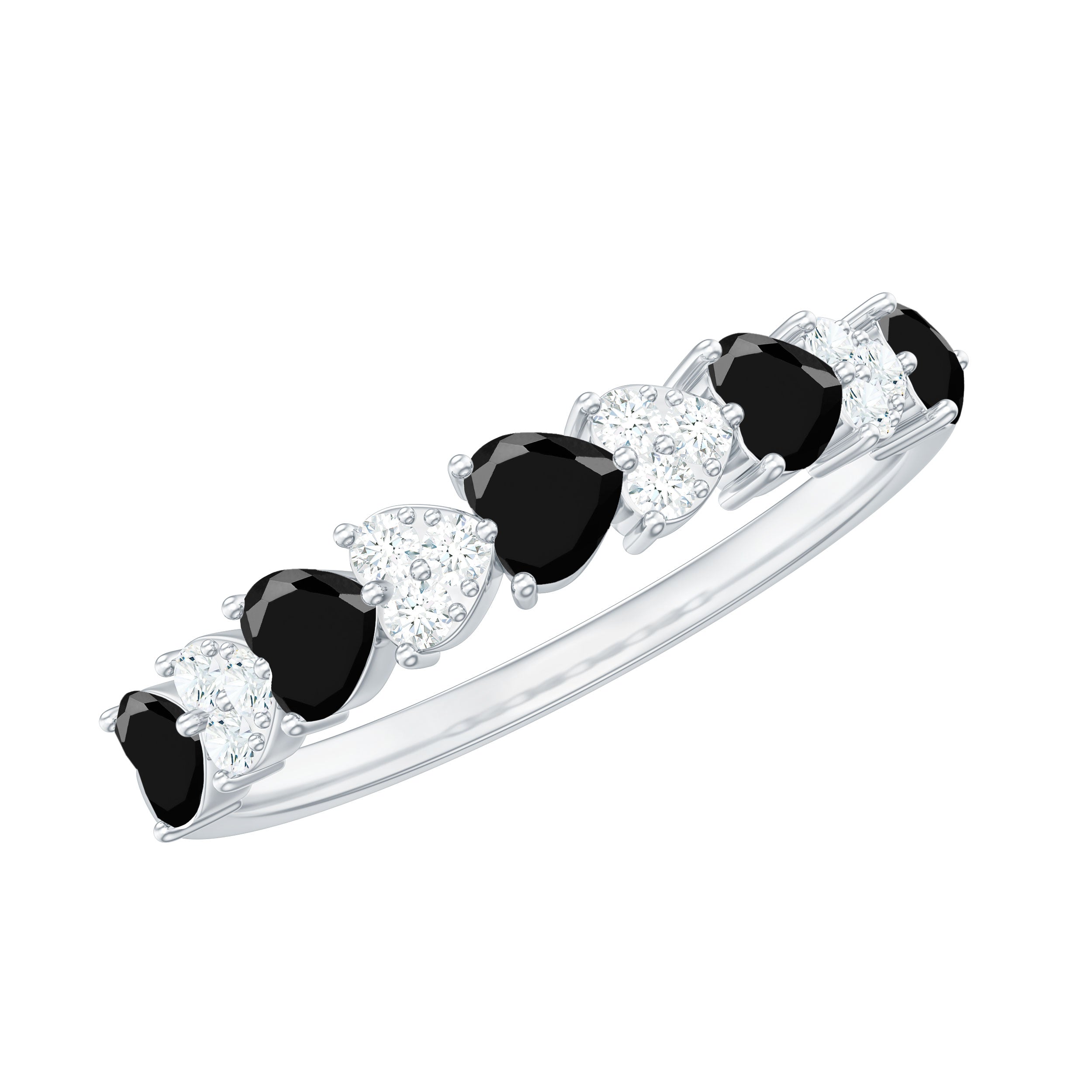 Half Eternity Rings: Entire top of the band adorned with laboratory created gemstones for a graceful sparkle.